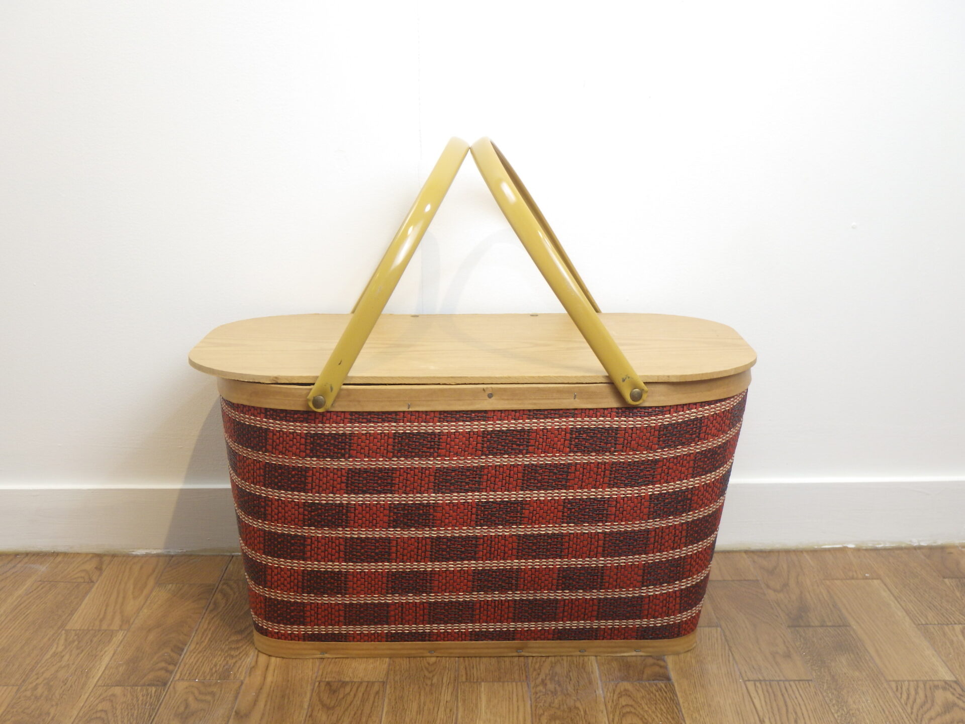 Vintage Picnic Basket Block Check ビンテージ ピクニックバスケット C