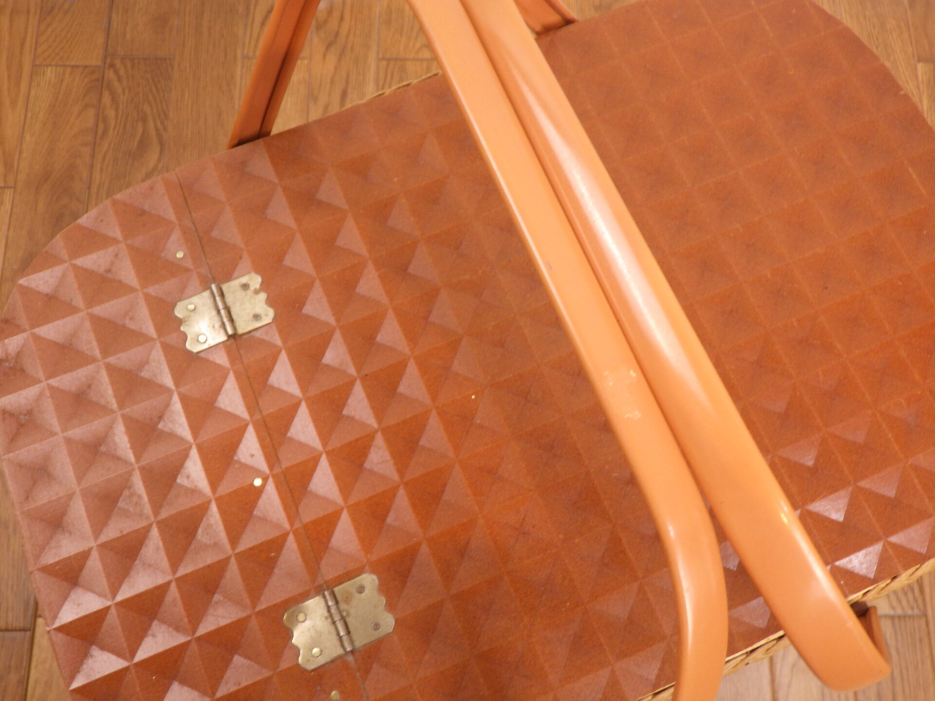 | アメリカで買い付けました。 ビンテージのピクニックバスケットです。 天板がテーブル代わりにもなる優れモノで、キャンプなどのアウトドアに持ち出す方も増えています。 しっかりした作りなので、たくさん荷物を詰め込んでも大丈夫です。 また、ソーイングセットなどを入れてご自宅で収納BOXとしてご使用いただいても良さそうです。 こちらは定番のカラー、デザインですが、様々なテイストの空間に合わせられるのでおすすめしています。 |