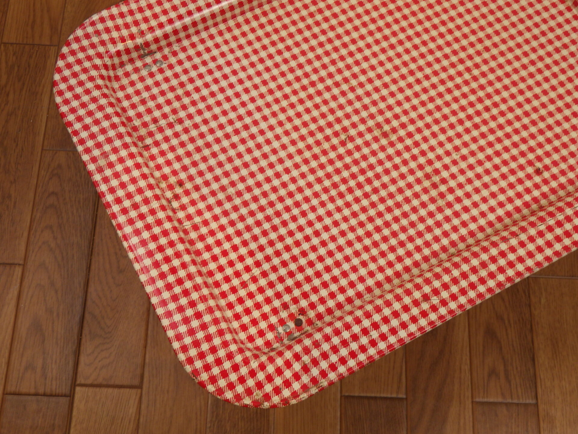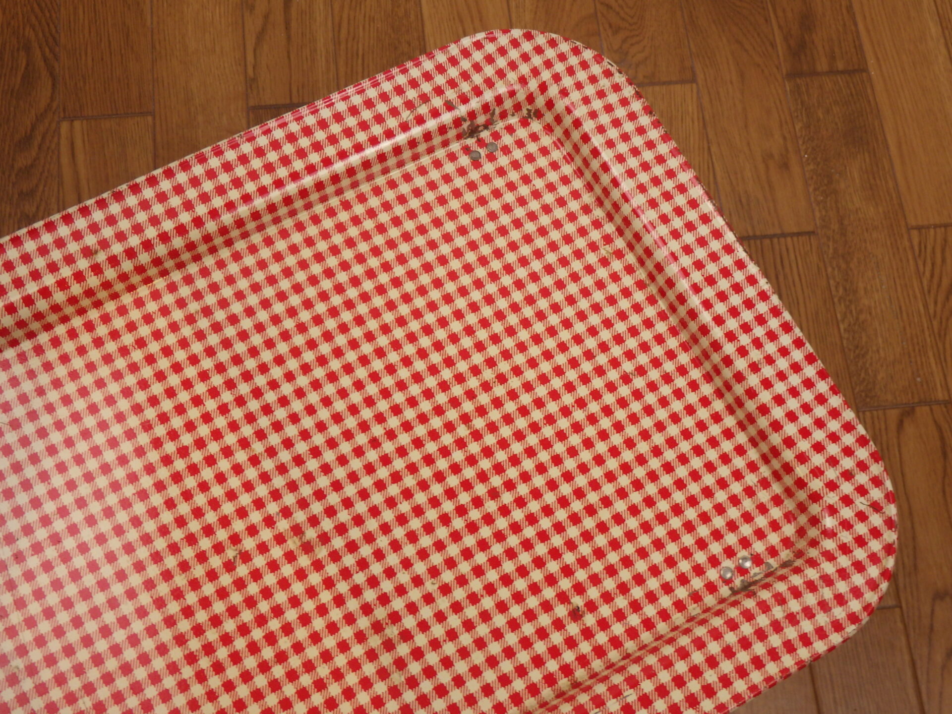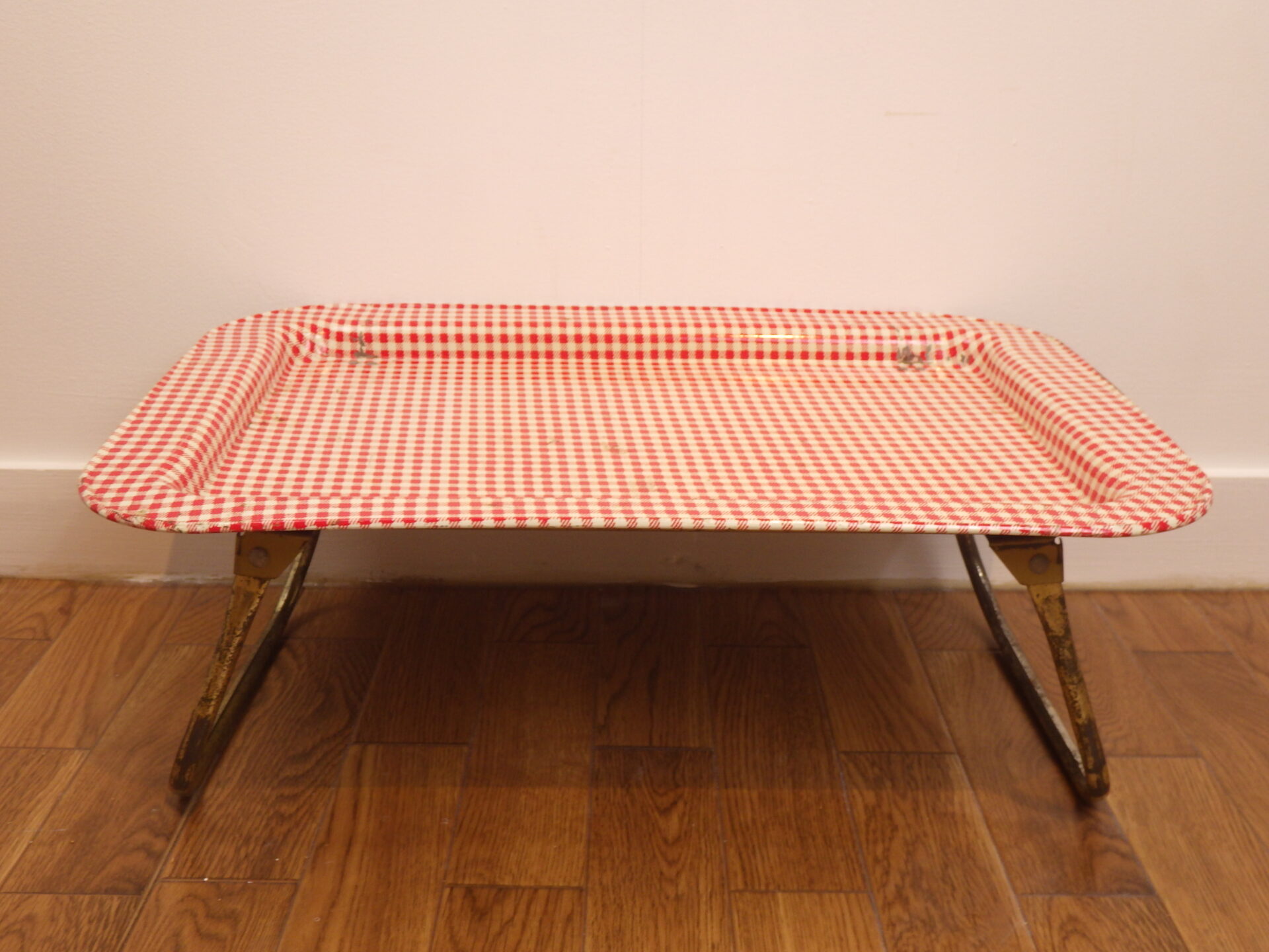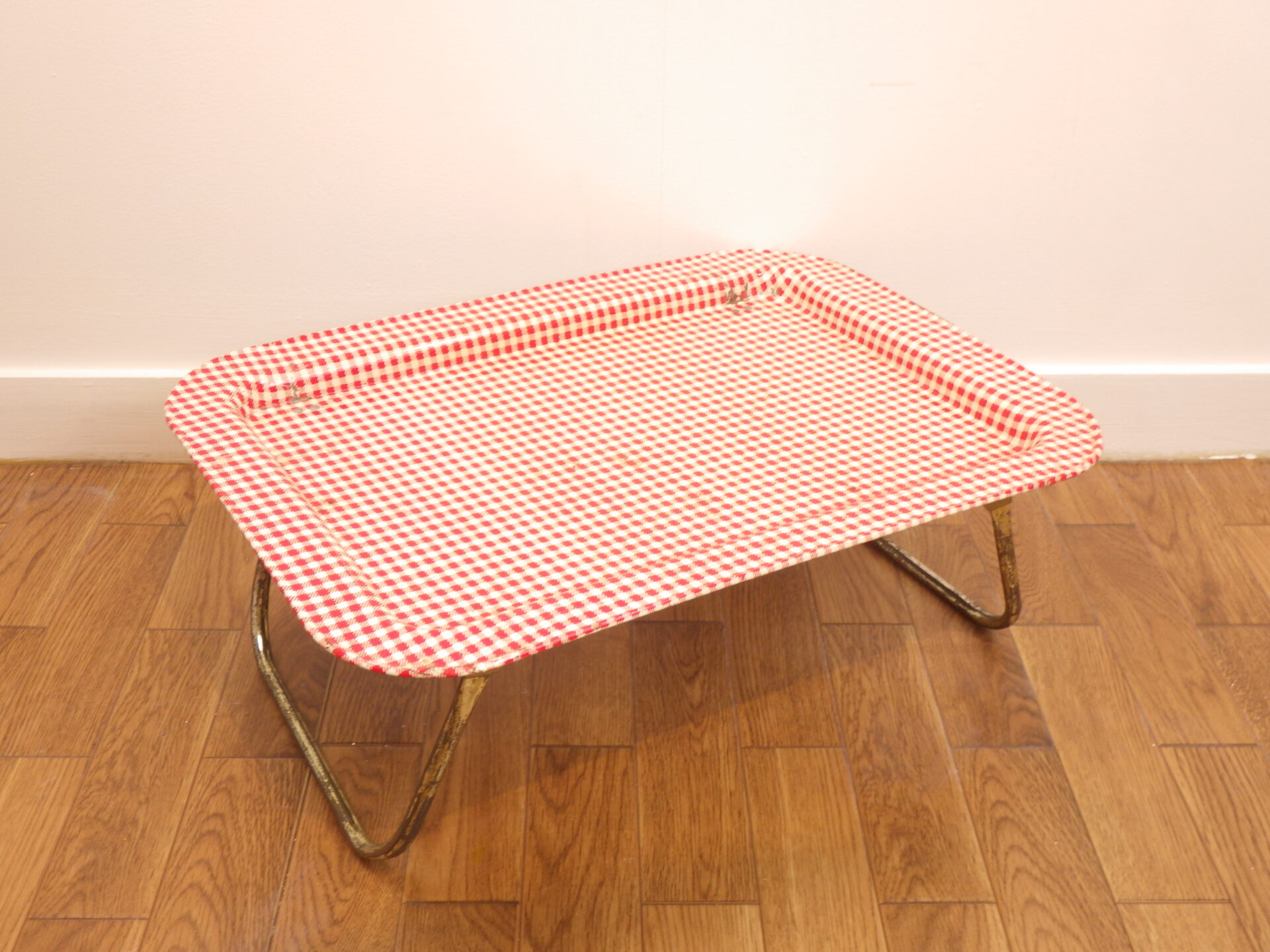 | アメリカで買い付けました。 赤のギンガムチェックが可愛いビンテージのフォールディングトレイです。 トレイの脚がフォールディング出来るので、用途に合わせて持ち運べる便利なトレイです。 軽くてコンパクトなので、キャンプなどのアウトドアの際にサイドテーブルにしたり、ちょっとした台として使用するのにもおススメです。 お子様のおやつタイムやおままごとにもピッタリのサイズ感ですよ。 |