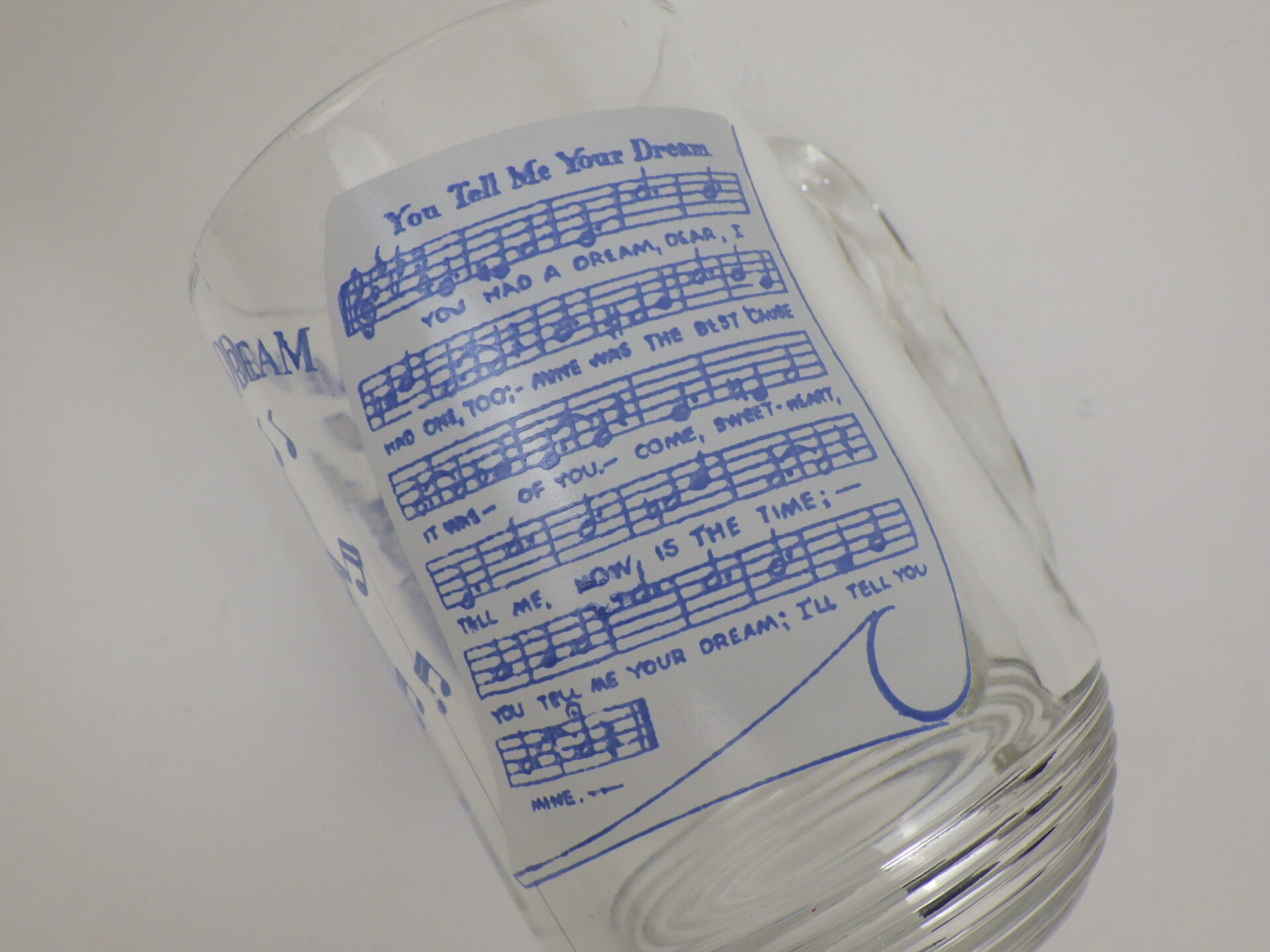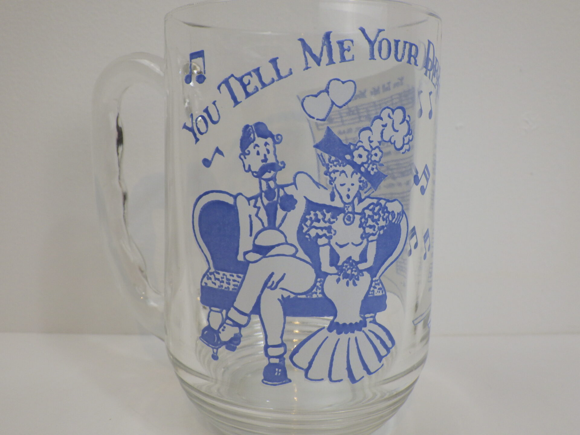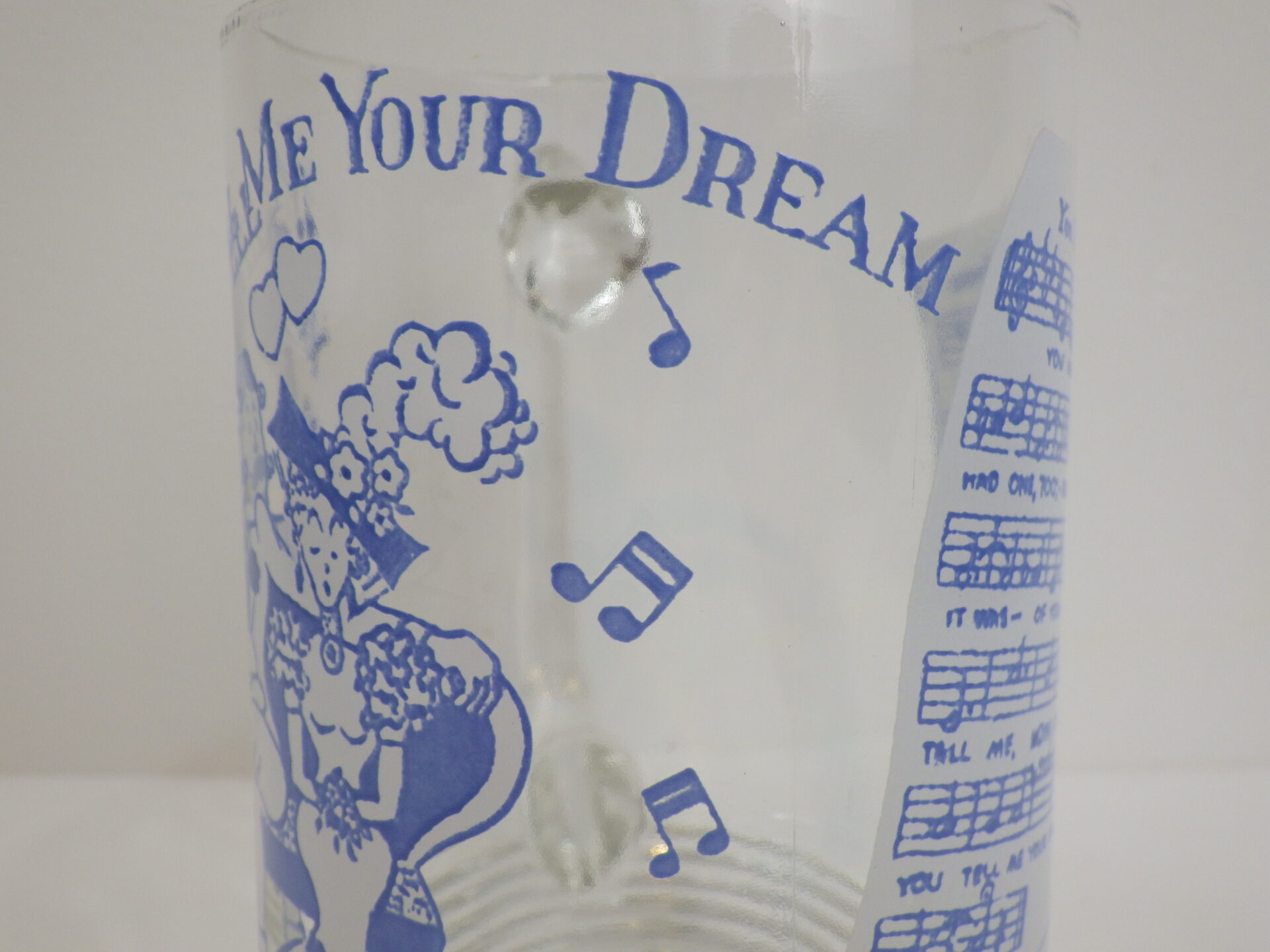 | アメリカで買い付けました。 ソファに座って愛を語り合う男女がプリントされた可愛いビアジョッキです。 プリントにリンクした「You Tell Me Your Dream」という歌の楽譜もプリントされています。 容量もたっぷりなので、ビールだけでなく暑い時期は氷をたっぷりいれてジュースやアルコールなど飲むのにも良さそうですね。 |