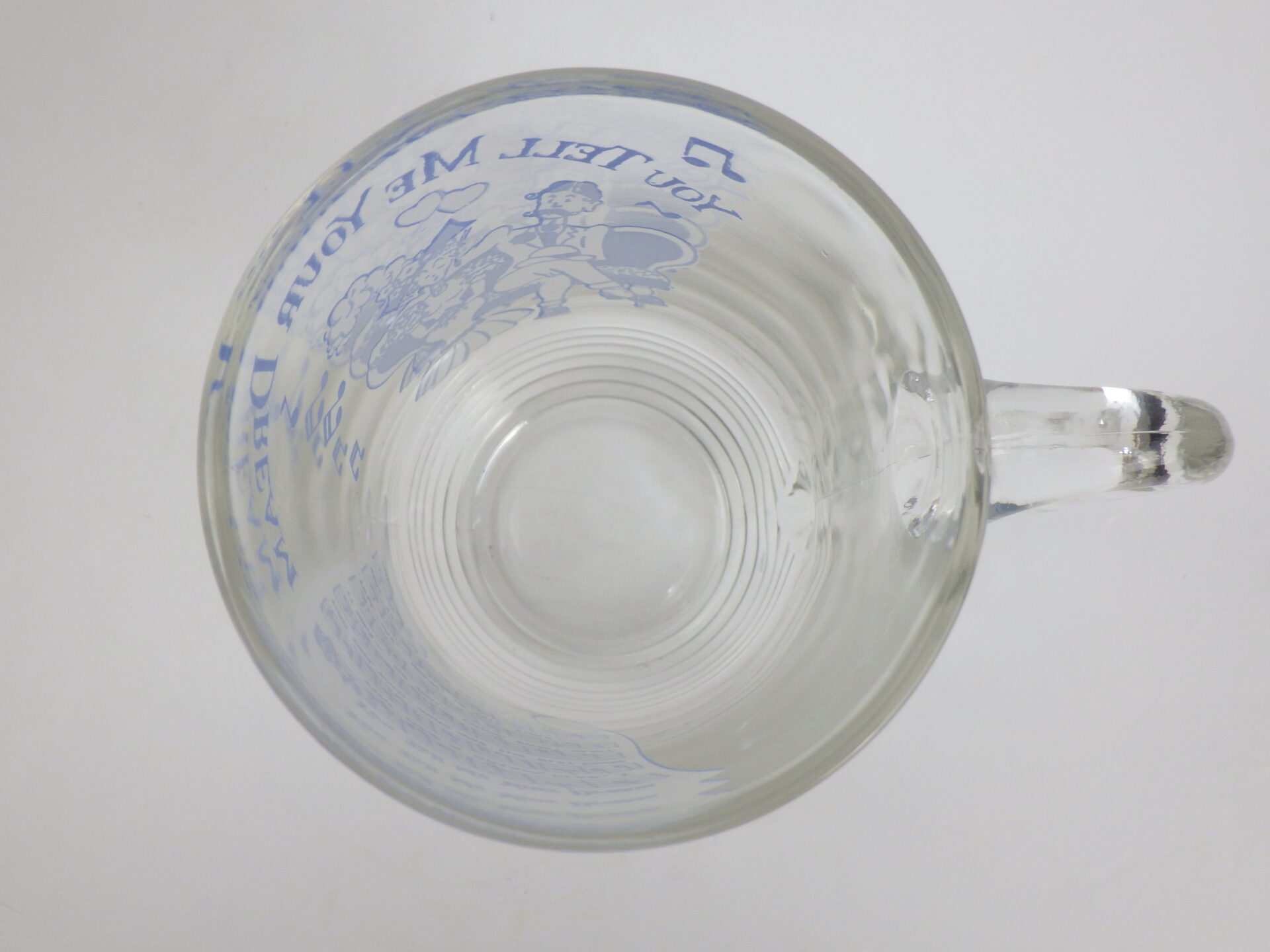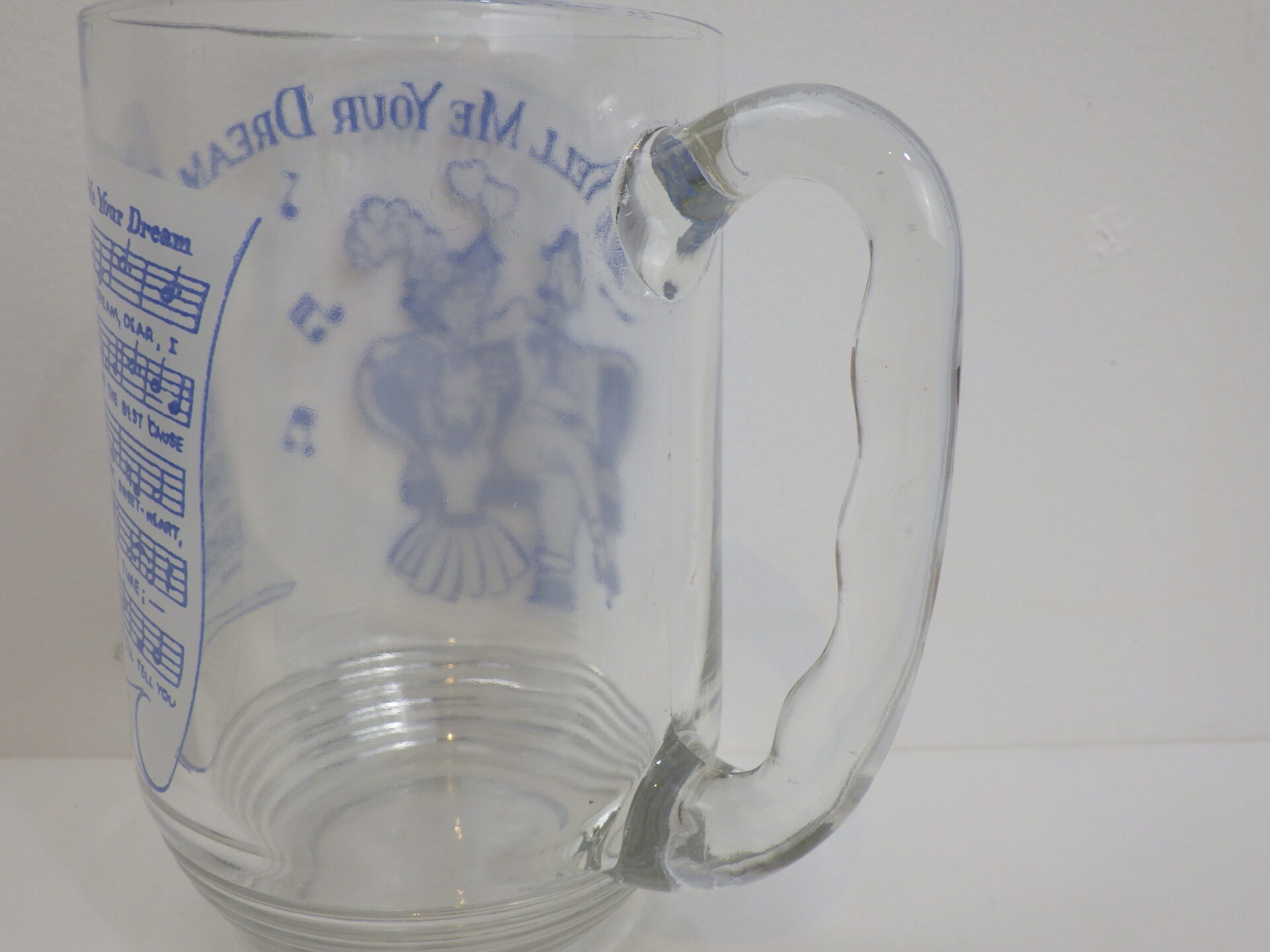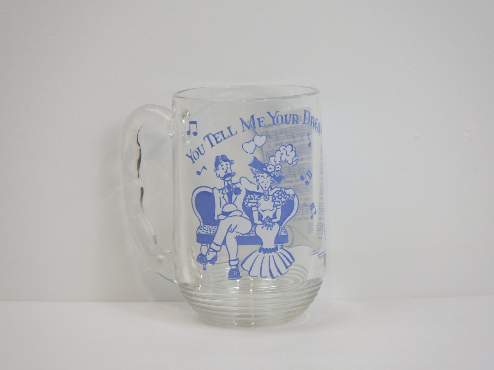 | アメリカで買い付けました。 ソファに座って愛を語り合う男女がプリントされた可愛いビアジョッキです。 プリントにリンクした「You Tell Me Your Dream」という歌の楽譜もプリントされています。 容量もたっぷりなので、ビールだけでなく暑い時期は氷をたっぷりいれてジュースやアルコールなど飲むのにも良さそうですね。 |