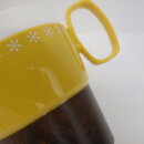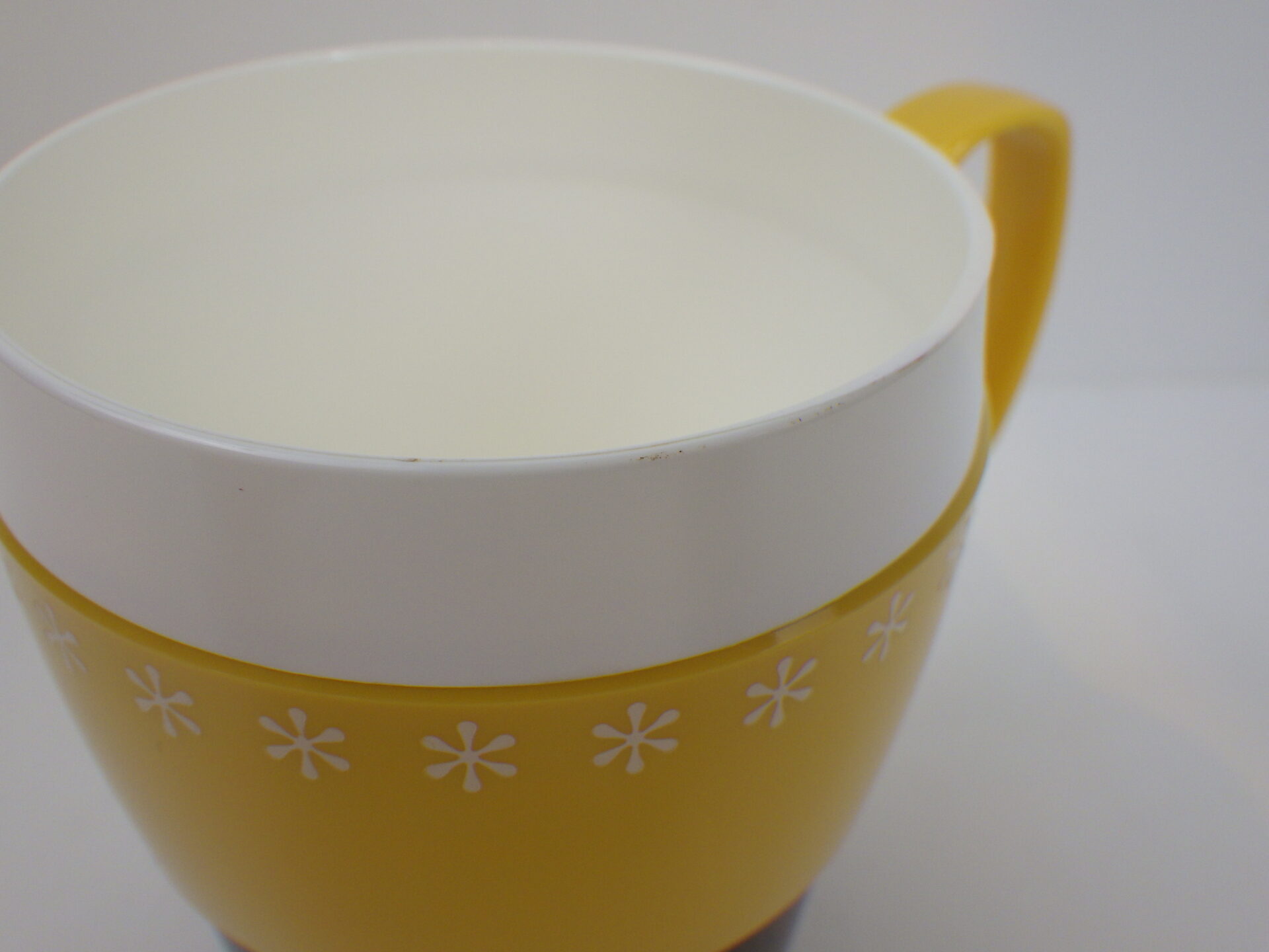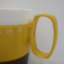 | アメリカで買い付けました。 可愛らしいプラスチック製のマグカップです。 ハーベストゴールドにスノーフレークのプリントが可愛いですね。 軽くて使い勝手も良いため、自宅使いだけでなくキャンプやピクニックなどアウトドアの際にも気軽に持ち出せます。 また、スタッキングも出来るので、コンパクトに収納出来て便利です。 |