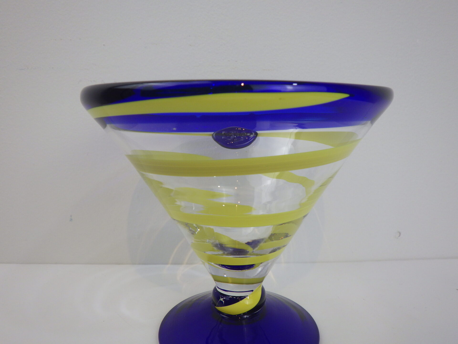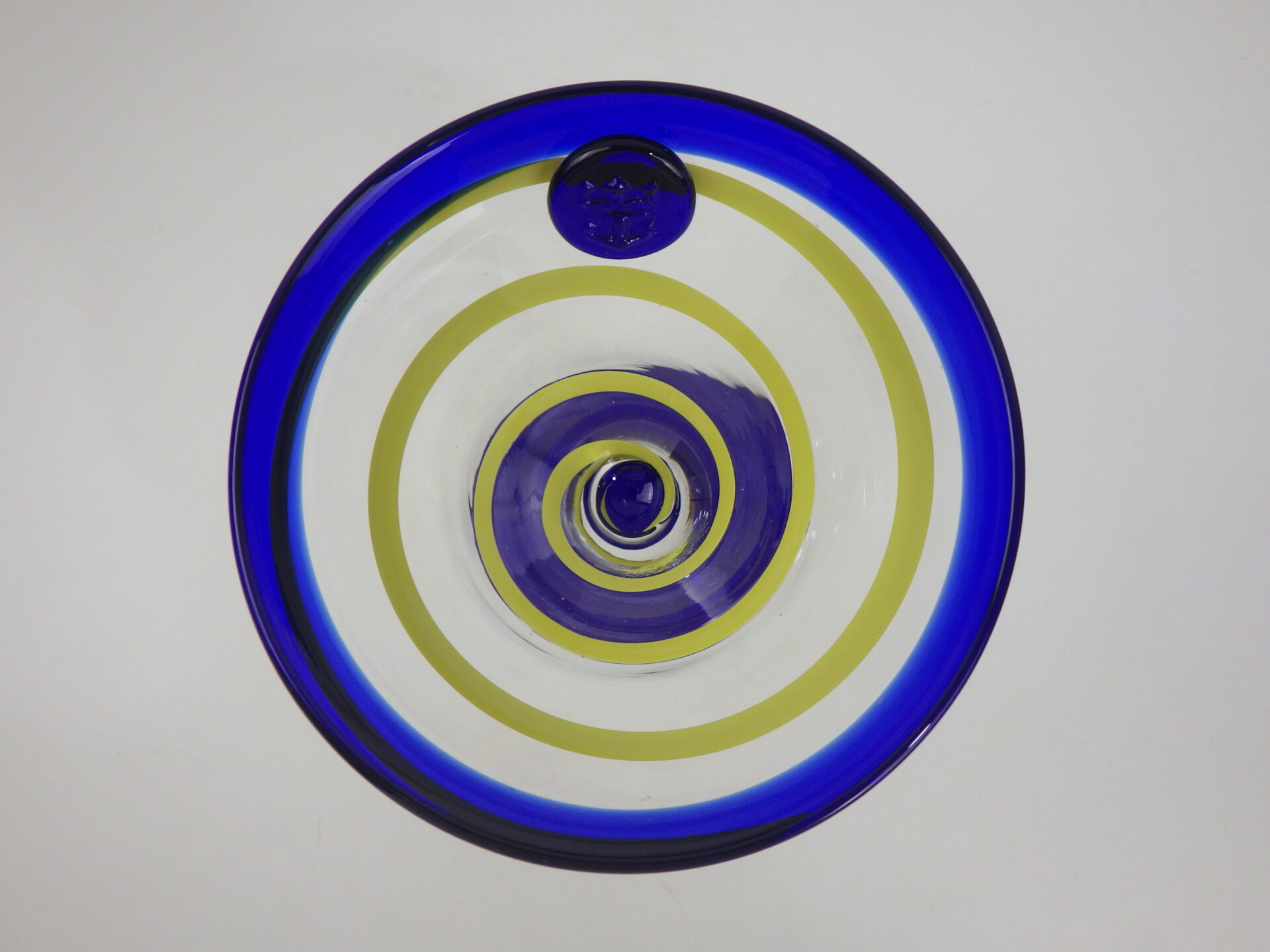 | アメリカで買い付けました。 1742年設立、ヨーロッパで現存するガラス工場の中で最も長い歴史をもつKOSTA BODAのビンテージグラスです。 スウェーデン王室御用達アイテムを数多く製造していますが、こちらはロイヤルカリビアンクルーズの為に製造されたアイテムのようです。 目の覚めるようなイエローとブルーの美しいコントラストに、シーリングスタンプのようなロイヤルカリビアン社のロゴがアクセントになっており、飾っておくだけでも楽しめるアイテムですね。 もちろんマティーニなどのカクテルをお楽しみいただく他、アイスやシャーベットなどのデザート類を盛り付けてご使用いただくのにも良さそうです。 ステムレスで安定感もばっちりなので、安心してお使いいただけますよ。 カクテルタイムを楽しくゆったりと過ごしたい方におすすめのアイテムです。 |