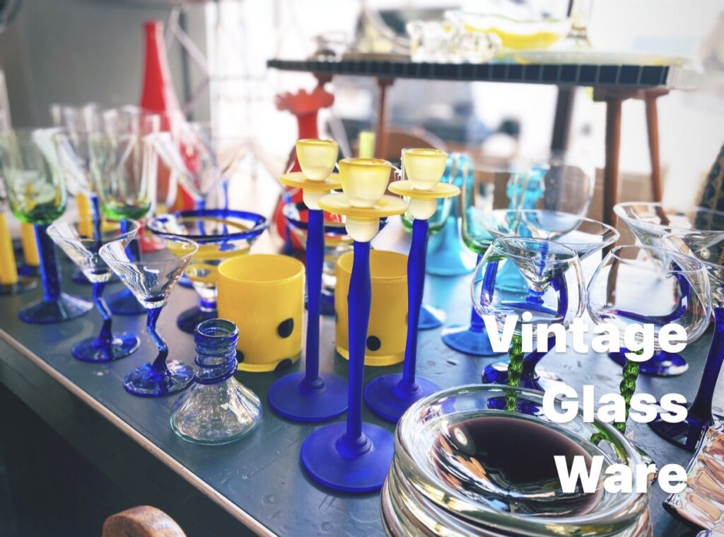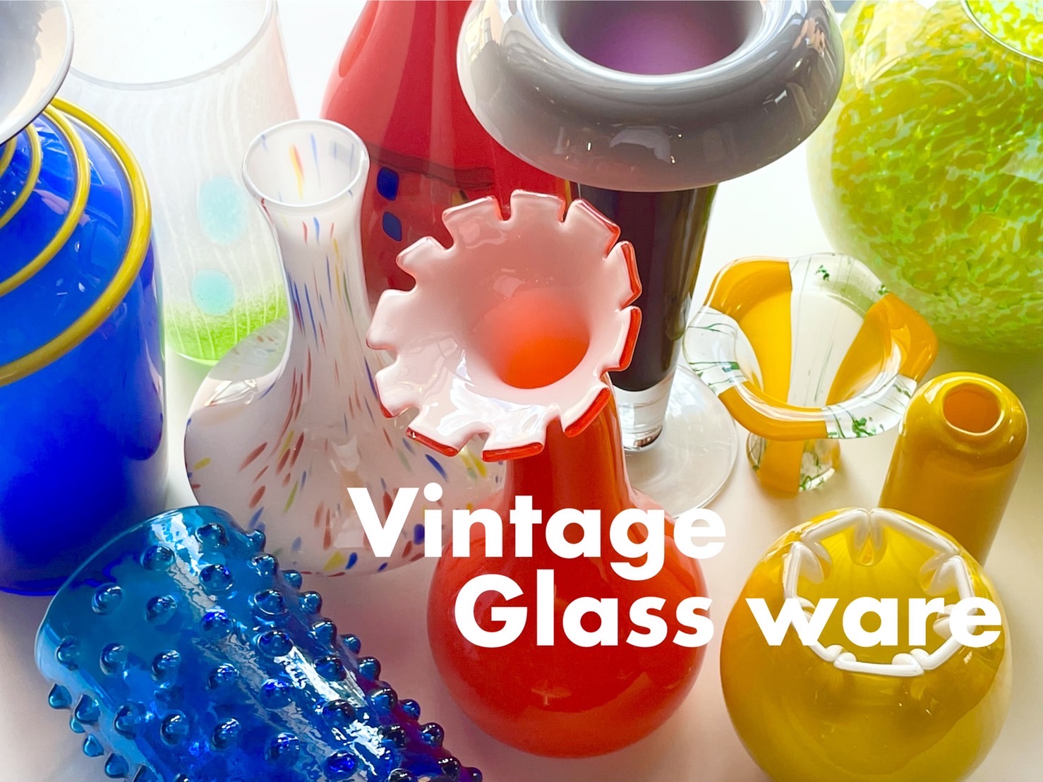 先日アメリカ買い付けのコンテナが入荷し、新たにビンテージガラス製品が沢山追加されました。