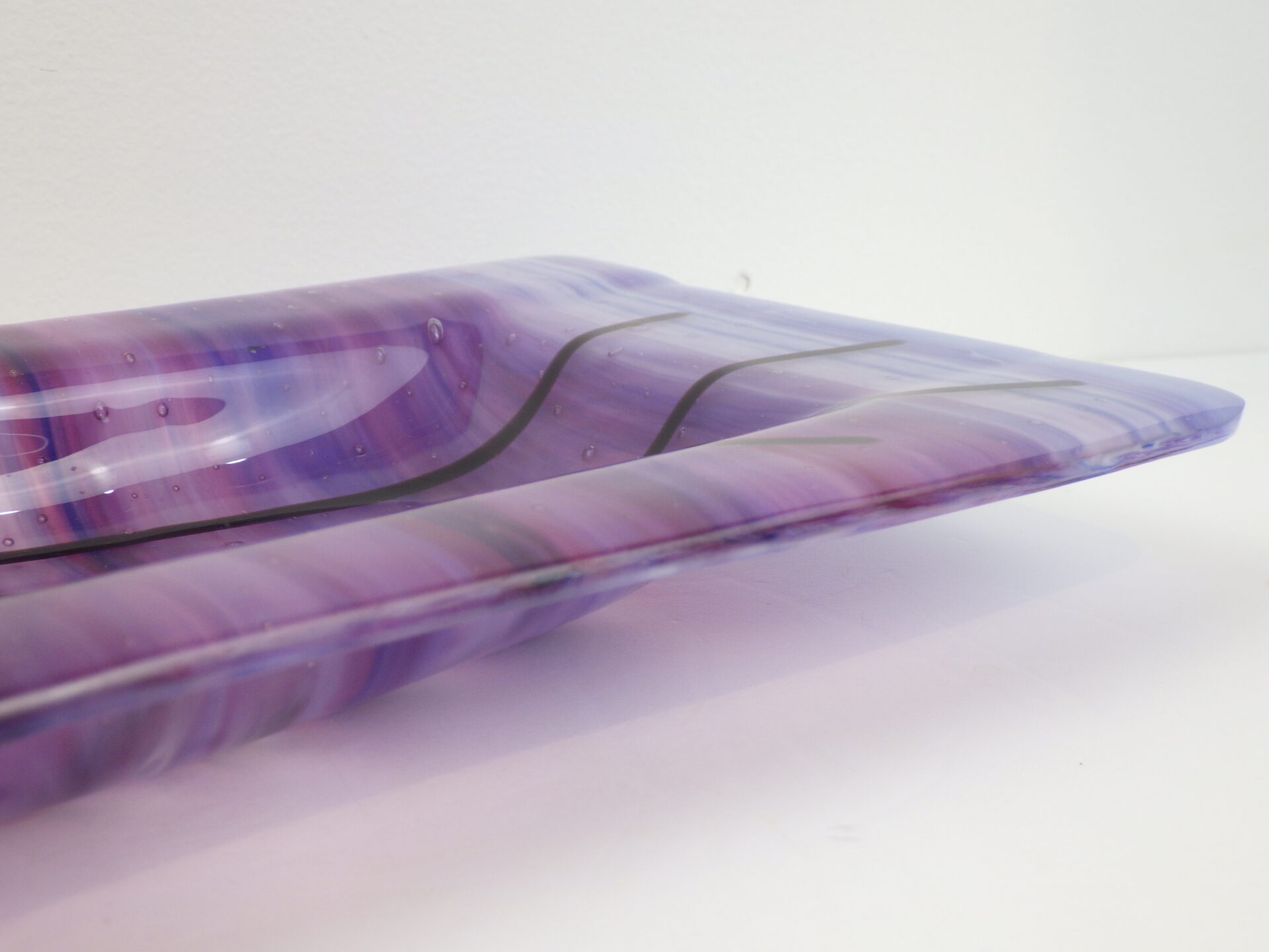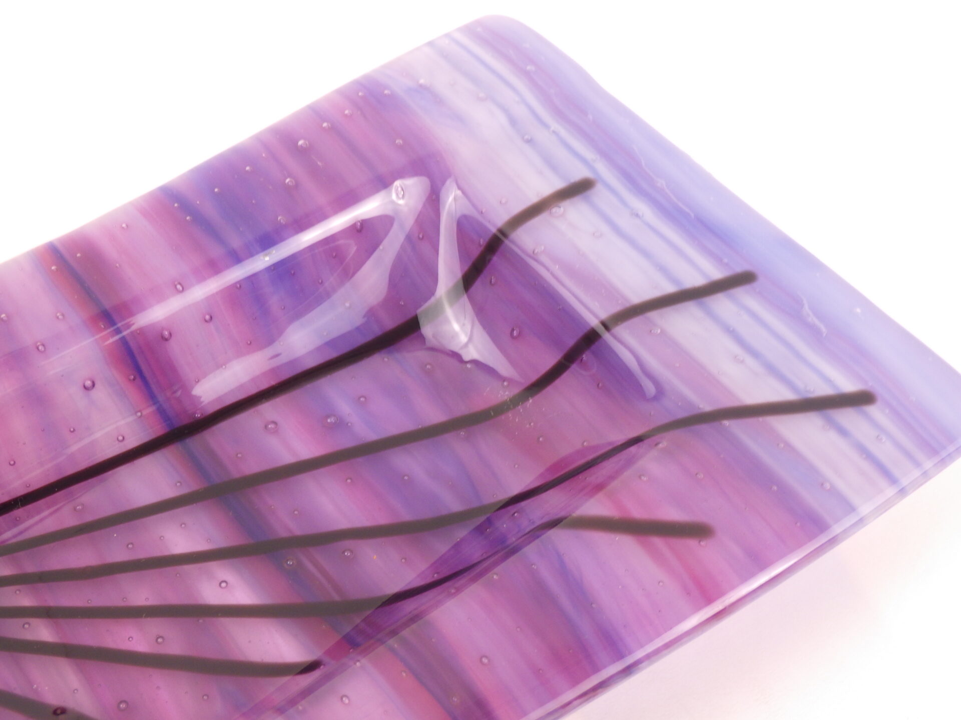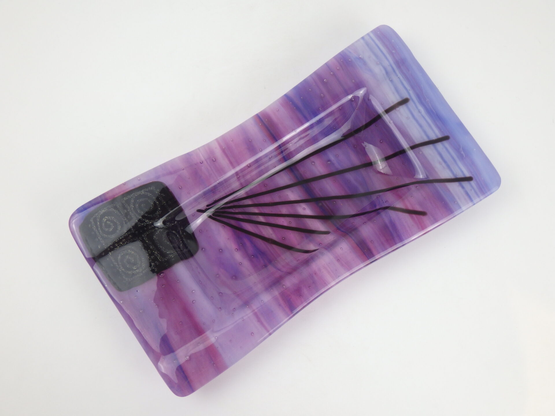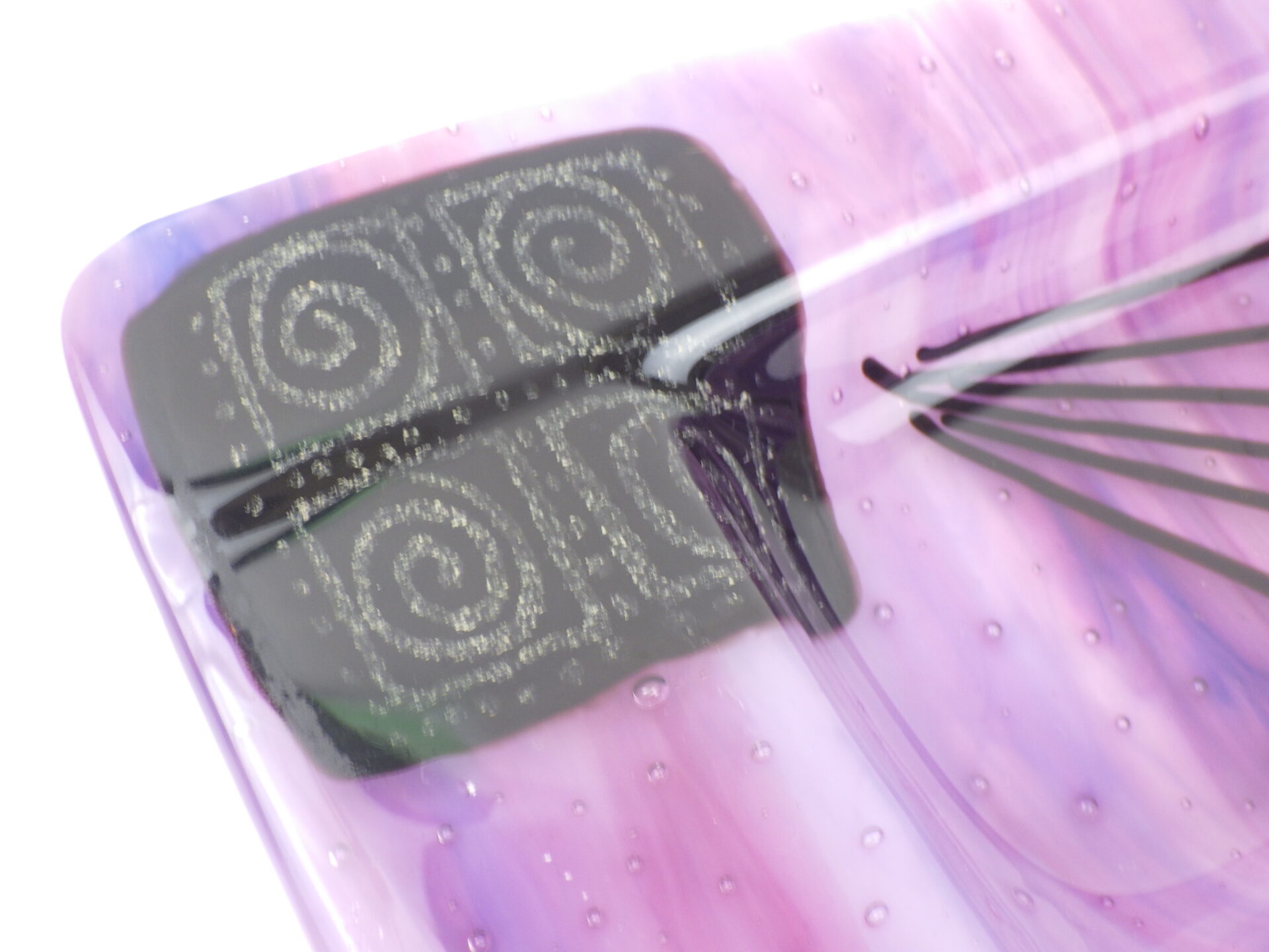 | アメリカで買い付けました。 ビンテージのガラストレイです。 深海を漂うクラゲがモチーフになっているようです。 トーンの異なるパープルに、大小さまざまな気泡が点在する様は大変美しく、そして幻想的な海の様子を連想させてくれます。 アクセサリートレイやキートレイとして、またはお香用の受け皿なんかにしてみても良さそうです。 ガーリーになり過ぎず、大人っぽい可愛らしさを演出してくれそうですね。 |