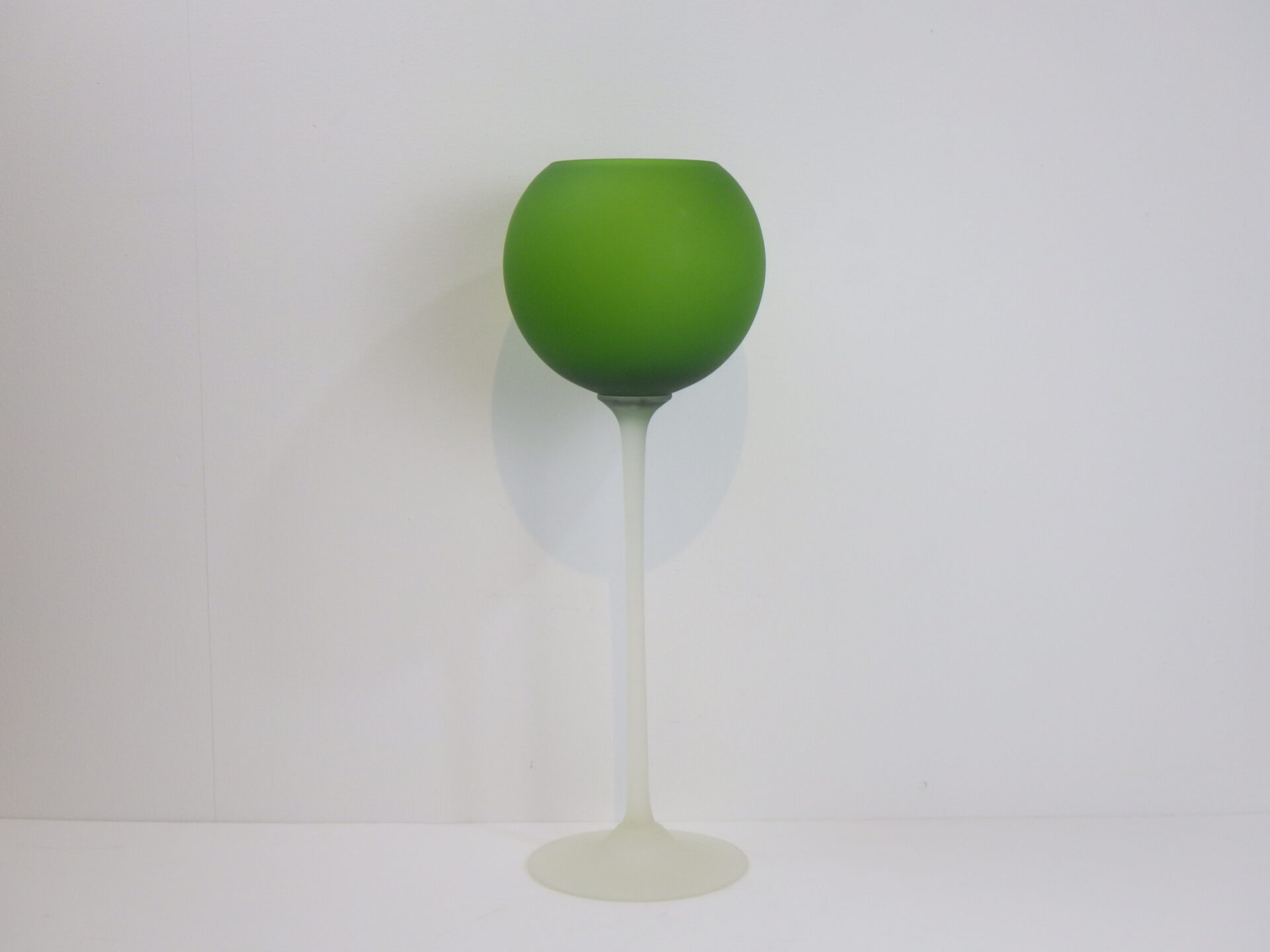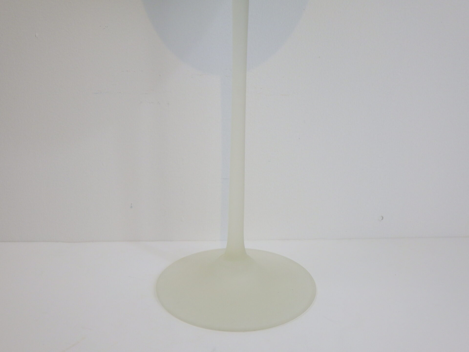 | アメリカで買い付けました。 イタリア、ムラノ島の伝統ガラスである、ベネチアンガラス、ムラノガラスの工房「Carlo Moretti(カルロモレッティ)」のワイングラス型フラワーベースです。 全体がフロスト加工されており、独特の風合いを醸し出しています。 モダンオブジェ・インテリアとして存在感がありますね。 |