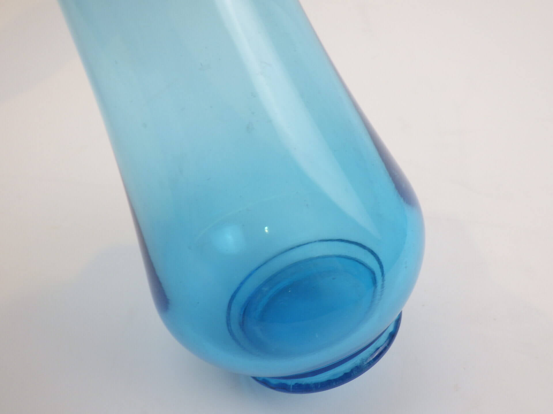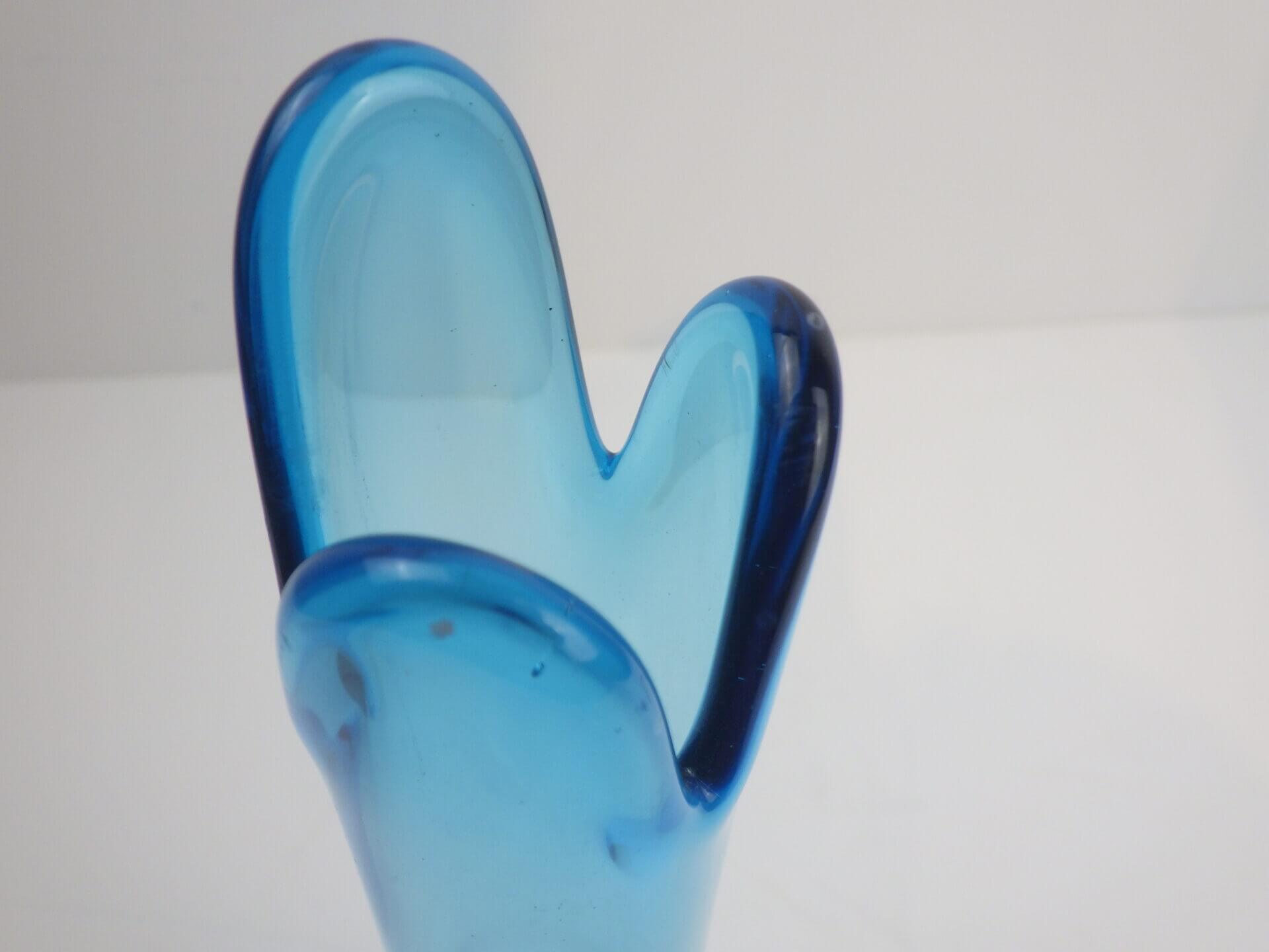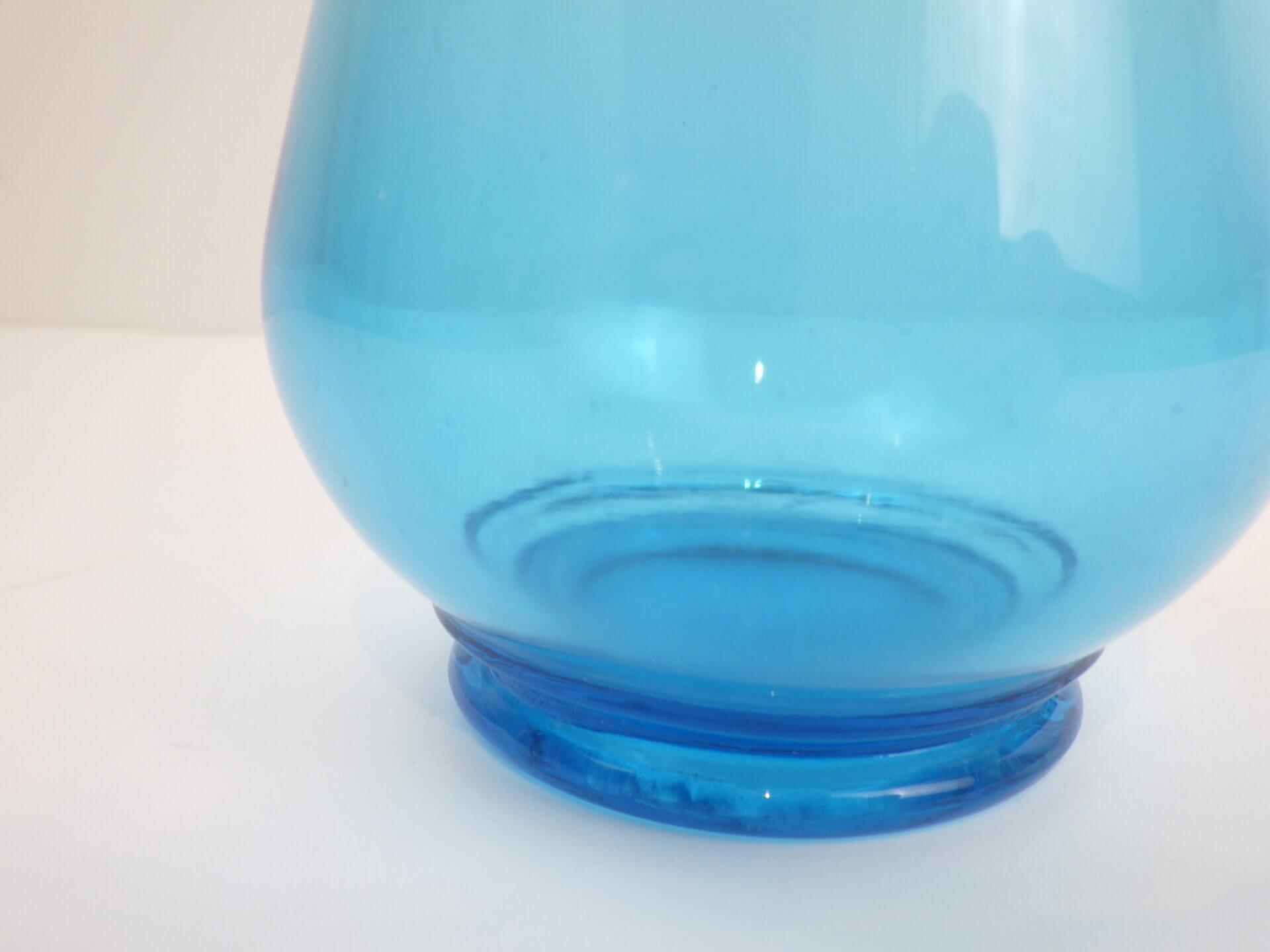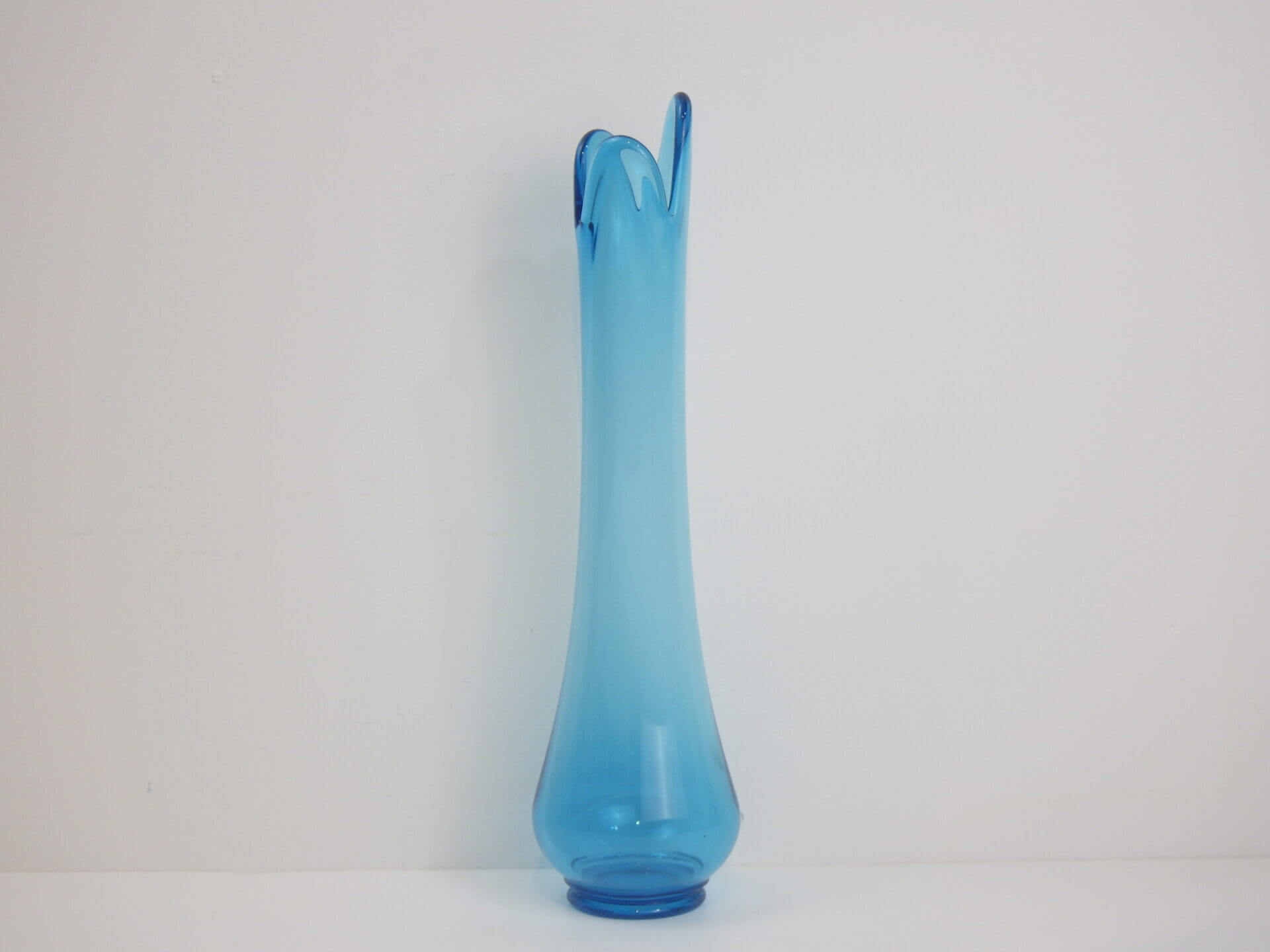 | アメリカで買い付けました。 爽やかなカラーリングのフラワーベースです。 透明度の高いブルーが、インテリアのアクセントとして良い活躍を見せてくれそう。 先端が花びらのようになっているのもポイントです。 |