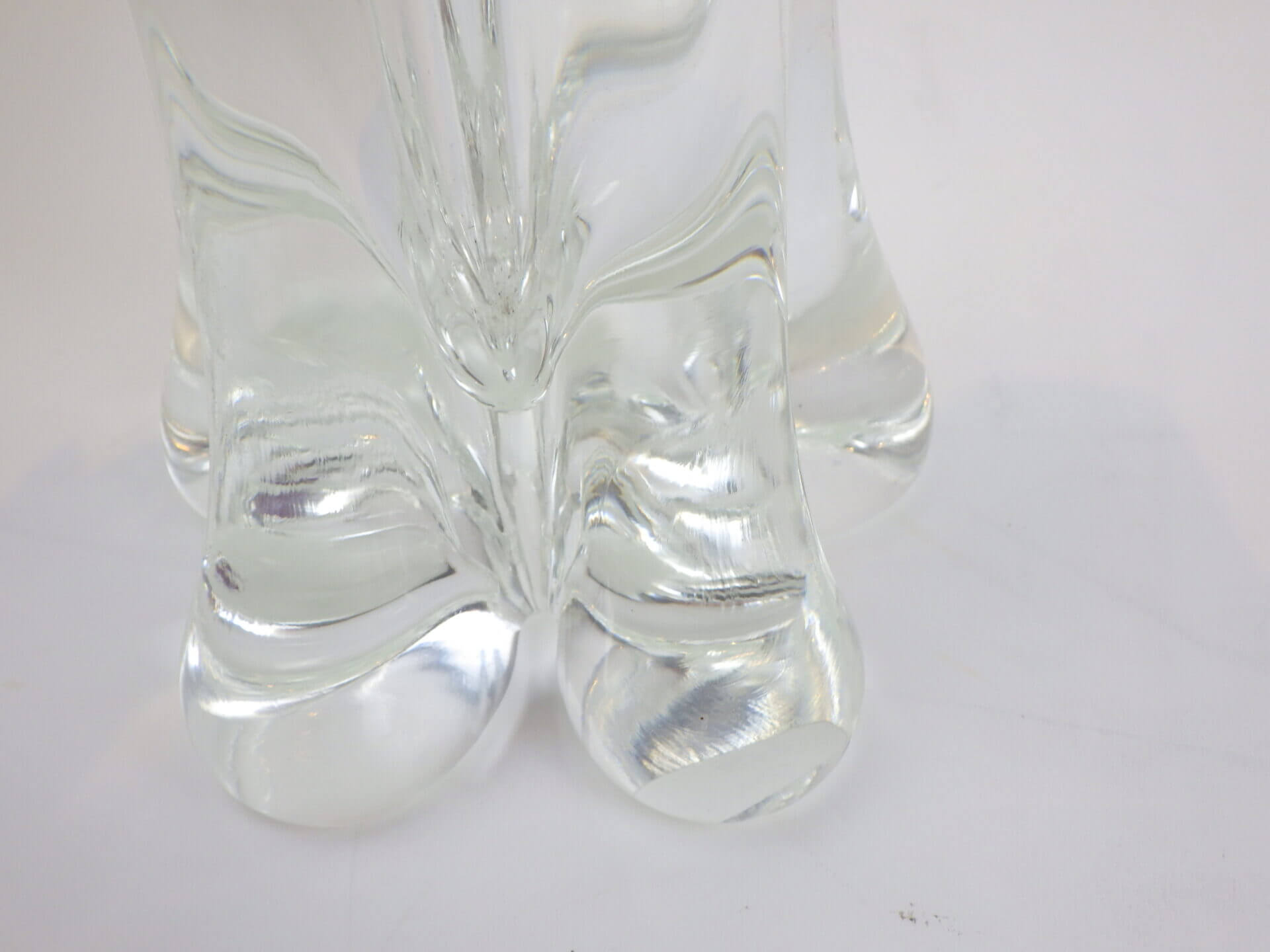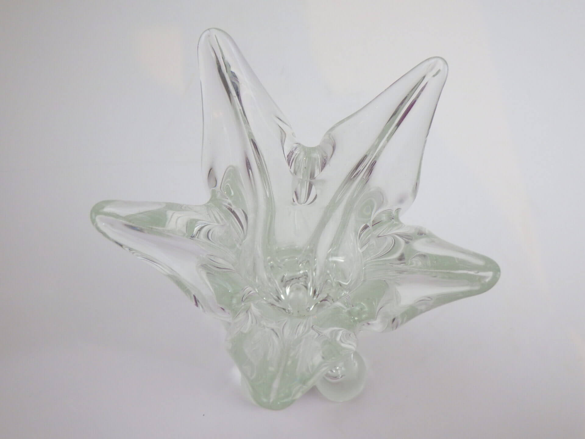 | アメリカで買い付けました。 ビンテージのフラワーベースです。 上から見るとまるで花開いた(または星)ような形状をしています。 土台は木の根のようにどっしりとしており、豪華な印象を与えてくれます。 クリアガラスなのでインテリアとして、または店舗什器として、様々な空間にマッチするのでおすすめしています。 |