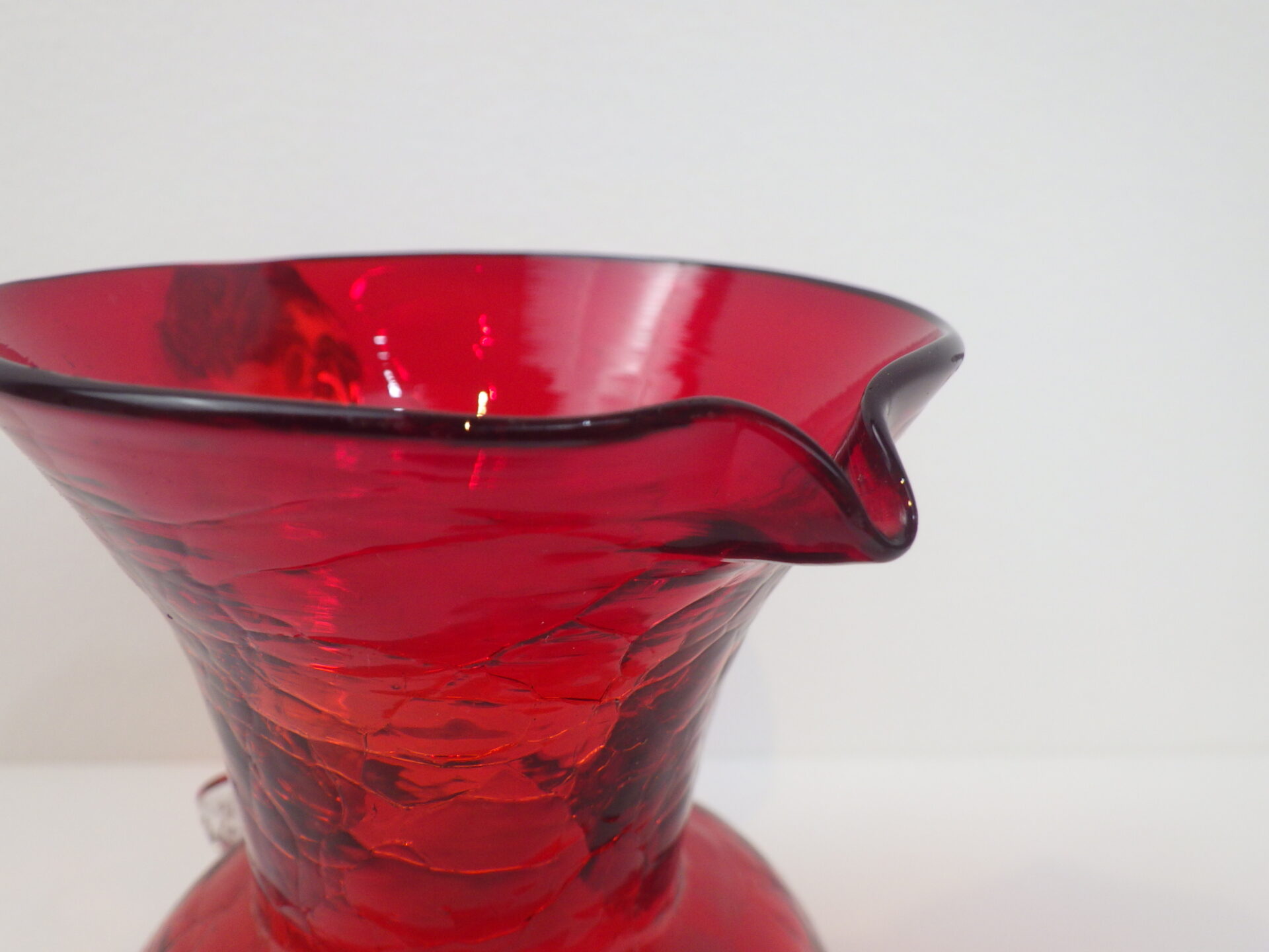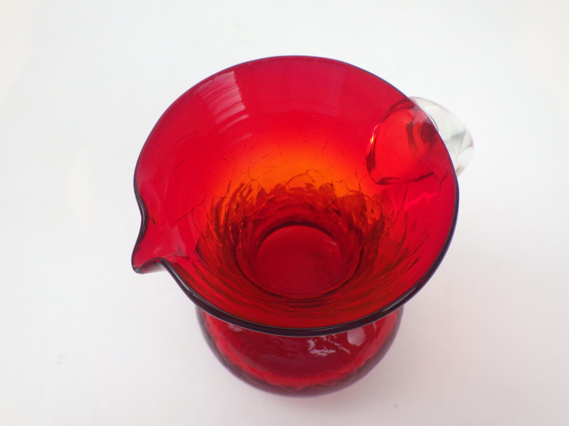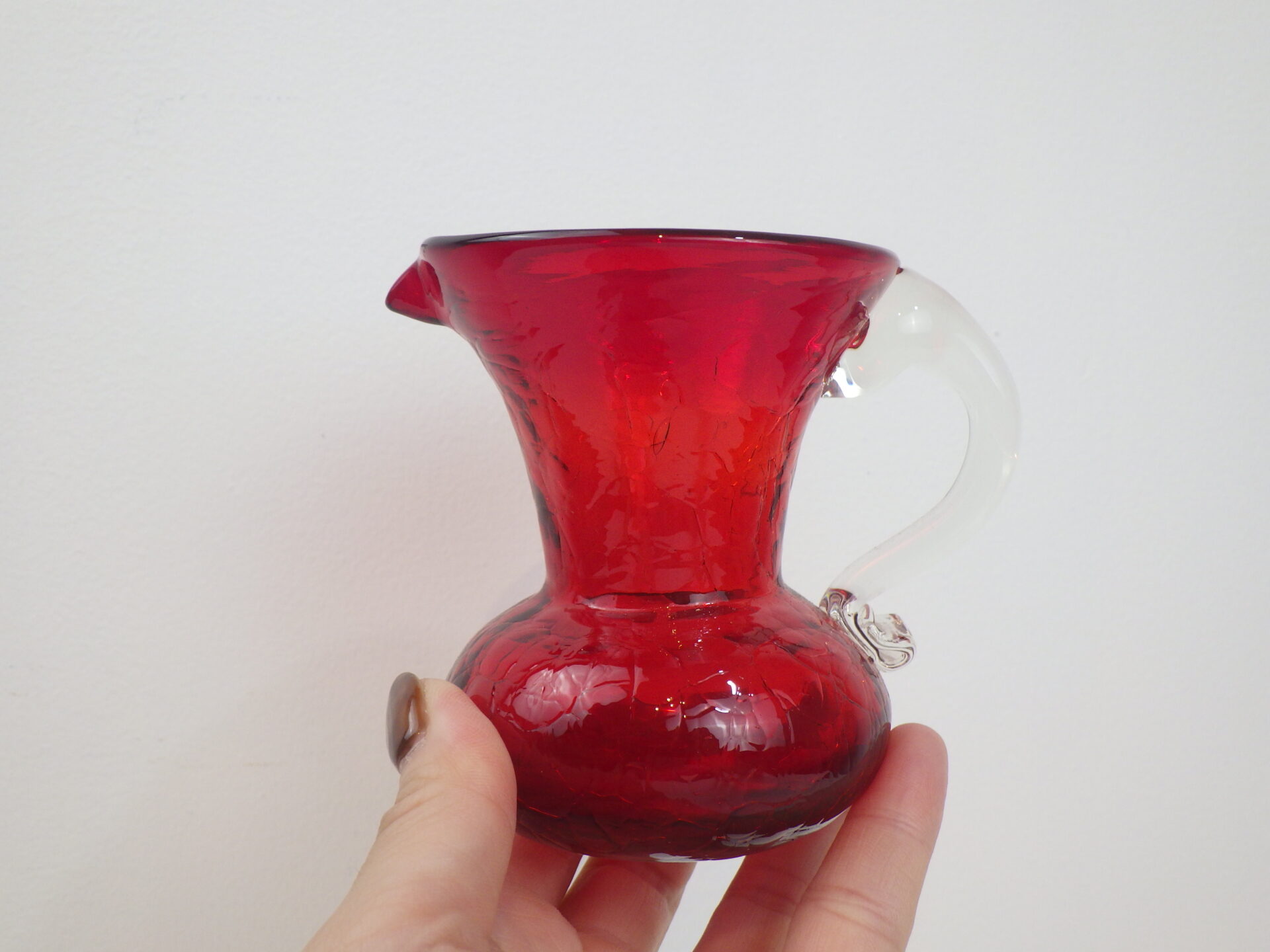 - Vintage Hand Blown Crackle Glass Pitcher Creamer/Vase(H8.5cm)ビンテージ ガラス ピッチャー クリーマー フラワーベース 花瓶 レッド G