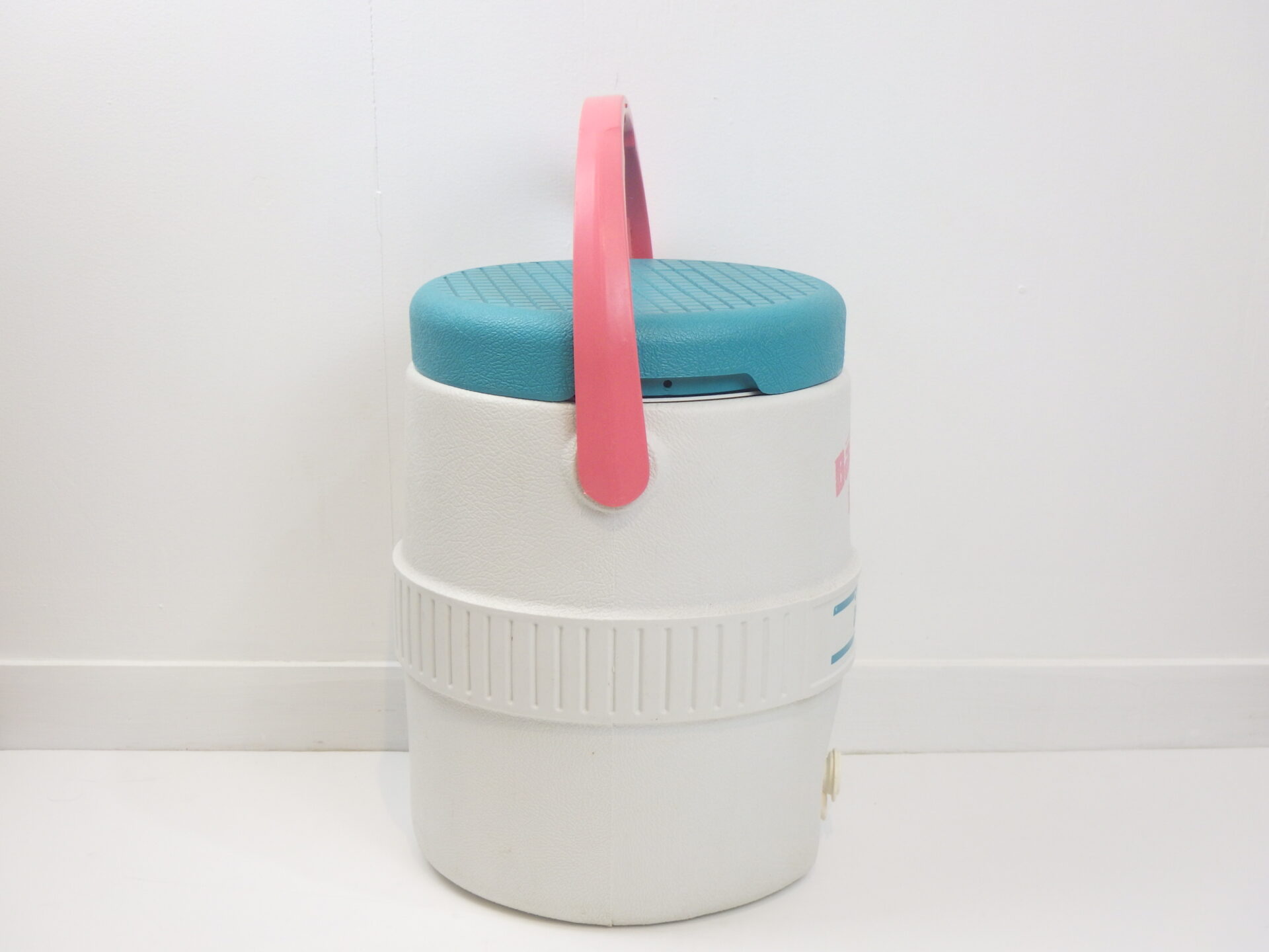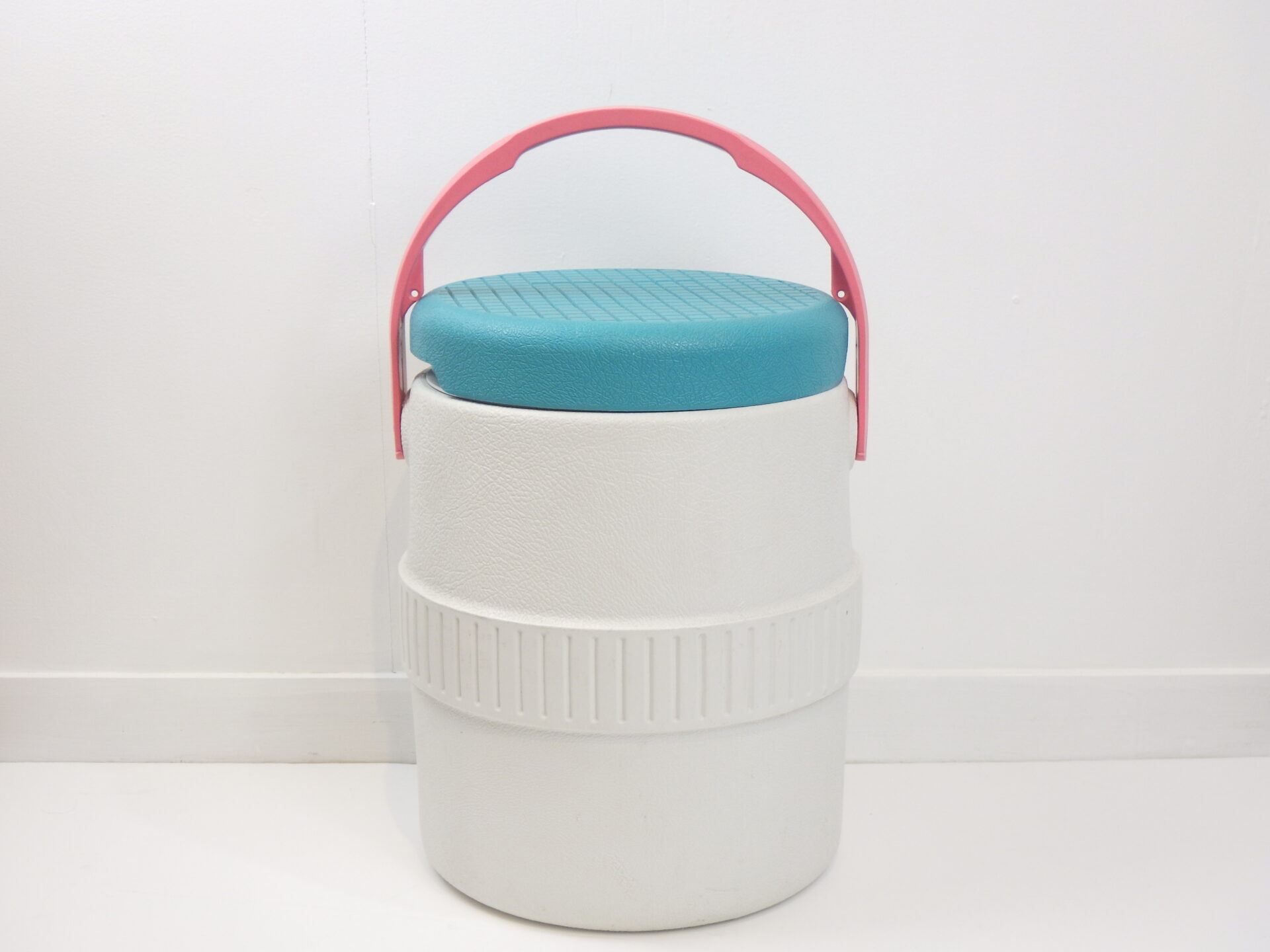 | アメリカで買い付けした90年代のビンテージイグルーのジャグです。 iglooは全米でNo.1シェアを誇るクーラーボックスメーカーです。 こちらは近年復刻版も販売されているデザインの90年代の当時物となります。 グリーン、ピンク、ホワイトの色使いが斬新で可愛いですね。 また、蓋がフラットになっているため、スツール代わりに座ることが出来ます。 蓋が大きいので飲み物を入れやすいだけでなく、コンテナ替わりに物を入れることも可能。 可愛いだけでは終わらない、使い勝手も良いアイテムです。 |