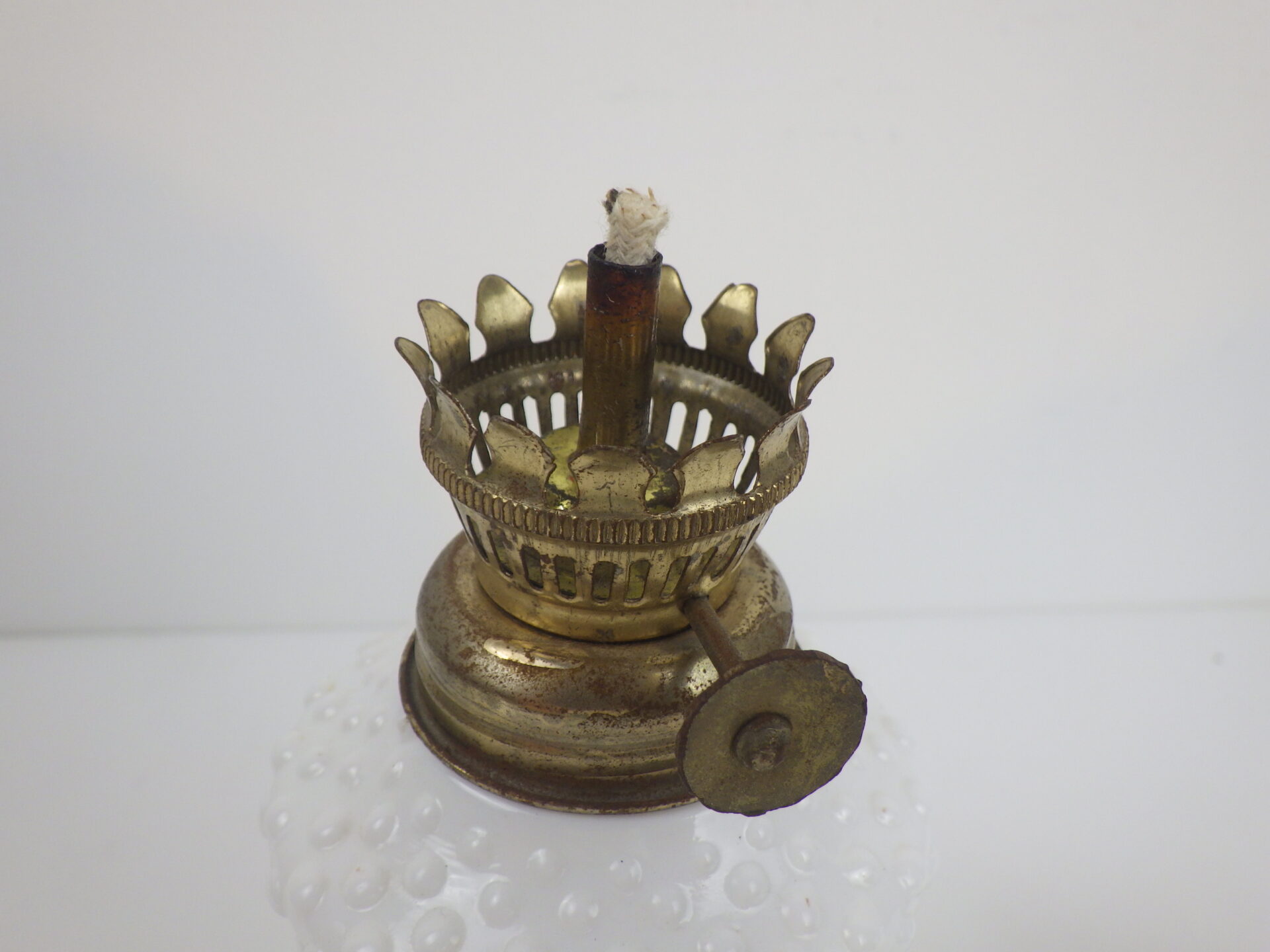 | アメリカで買い付けました。ビンテージのオイルランプです。 ほやは白いすりガラスのような加工になっており、灯りをともすとほんのり優しいオレンジ色に光ります。 燃料は、ランプ用オイル(パラフィンオイル)または灯油になります。 アウトドアの際にテーブルランプとして実際に使用できる他、リビングや寝室、店舗ディスプレイにおすすめです。 また、災害時にも役立つアイテムとして近年では注目されています。 |