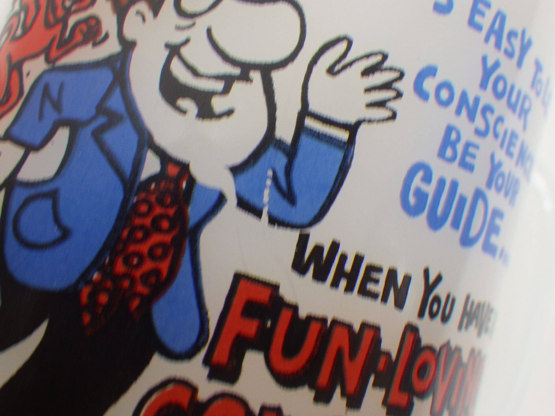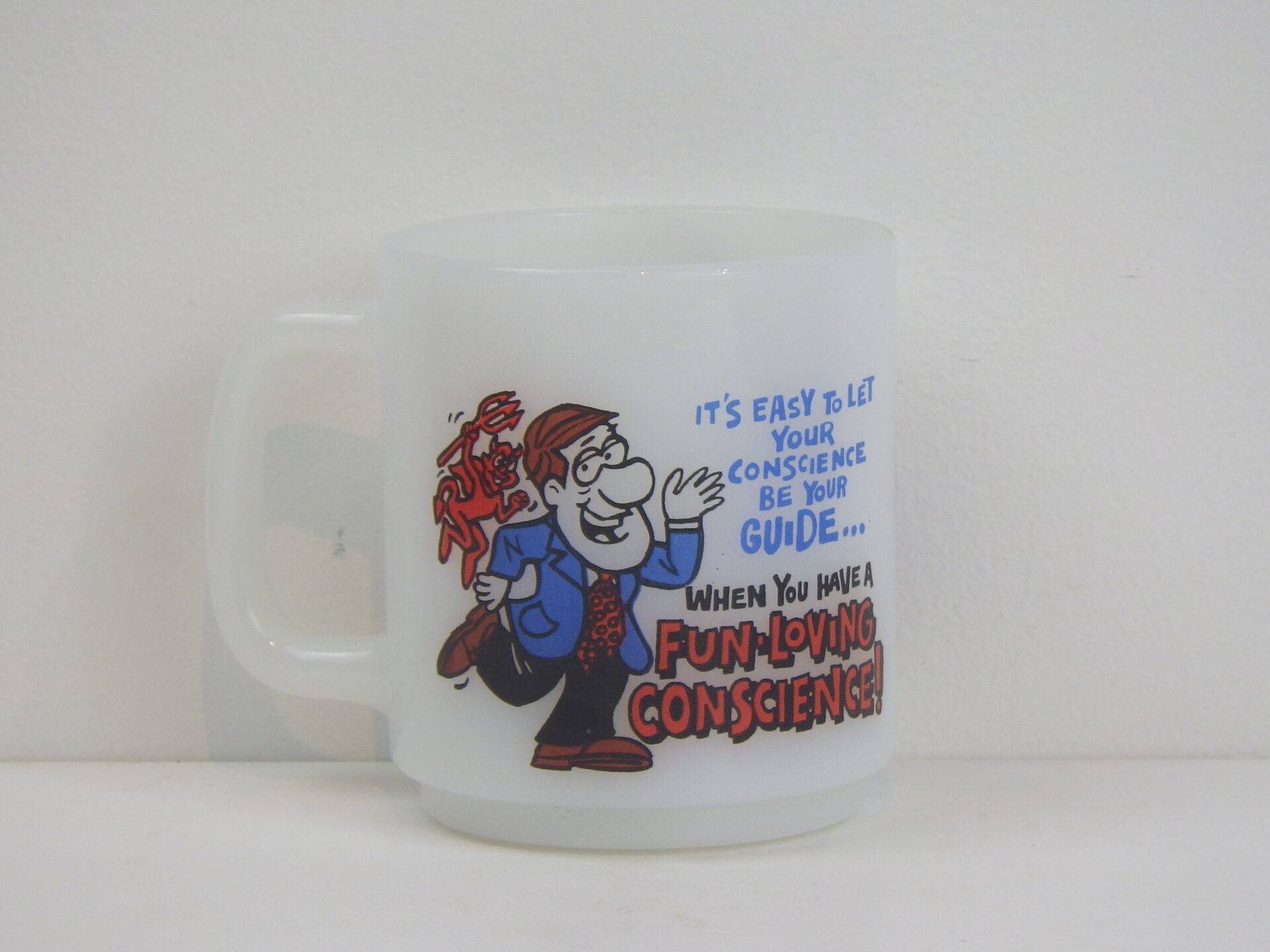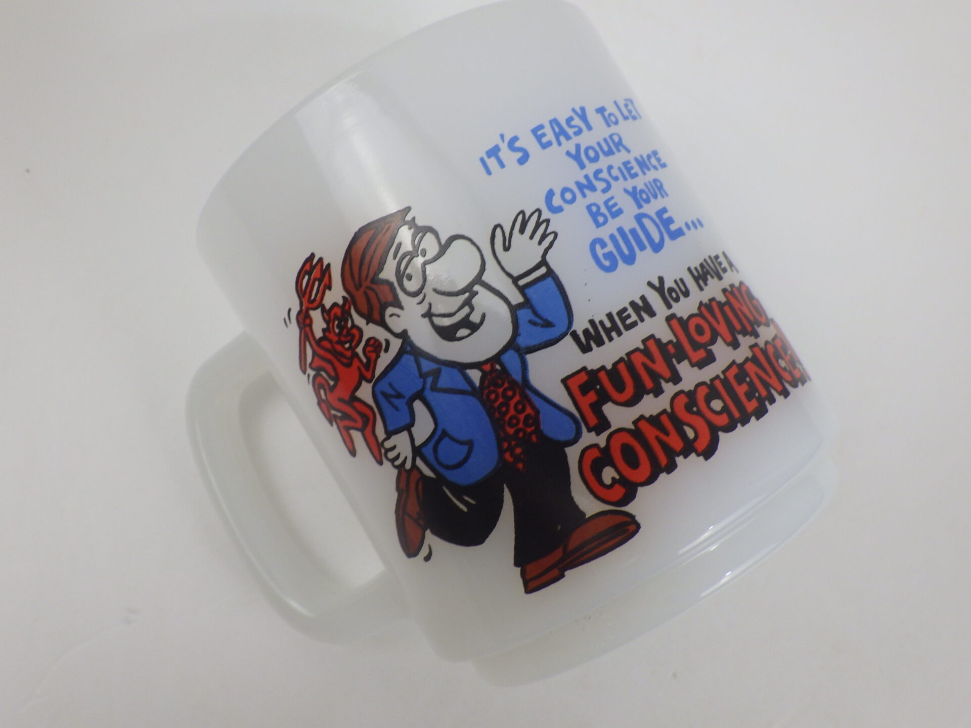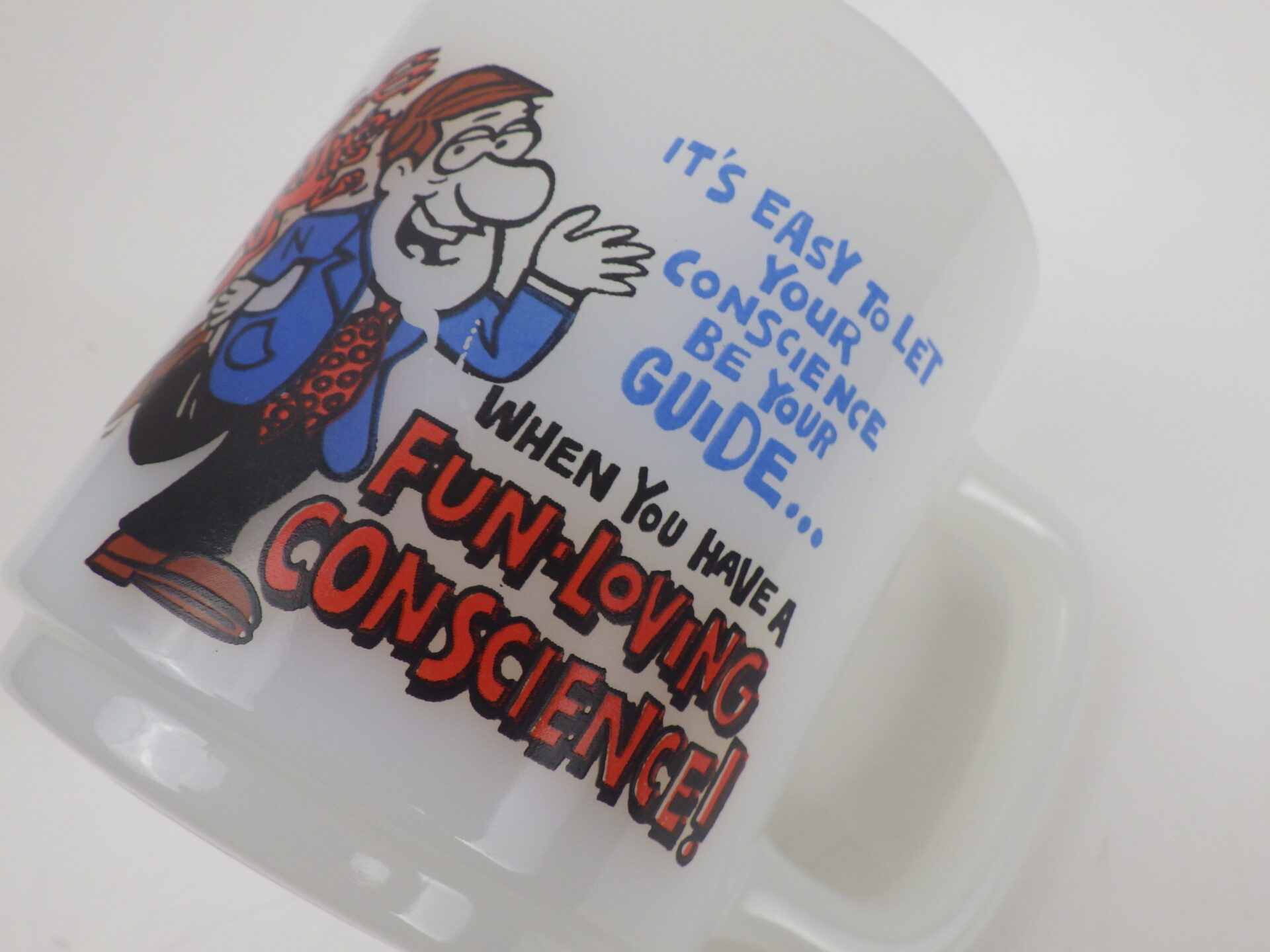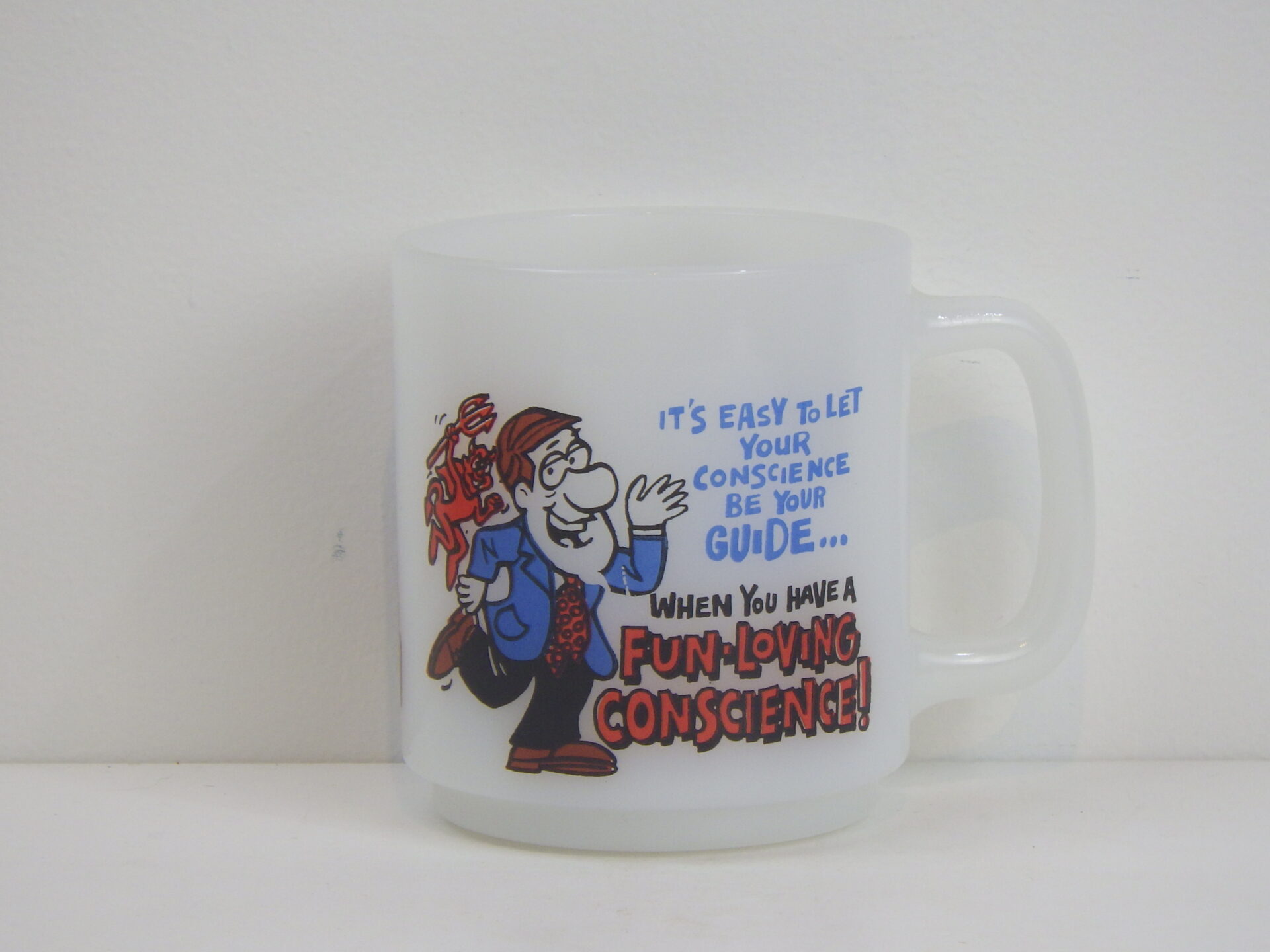 | アメリカで買い付けました。 悪魔が背後で何か囁いていますね。 容量約280mlと大き目で、コーヒーなどたっぷり飲みたい方にもおすすめですよ。 |