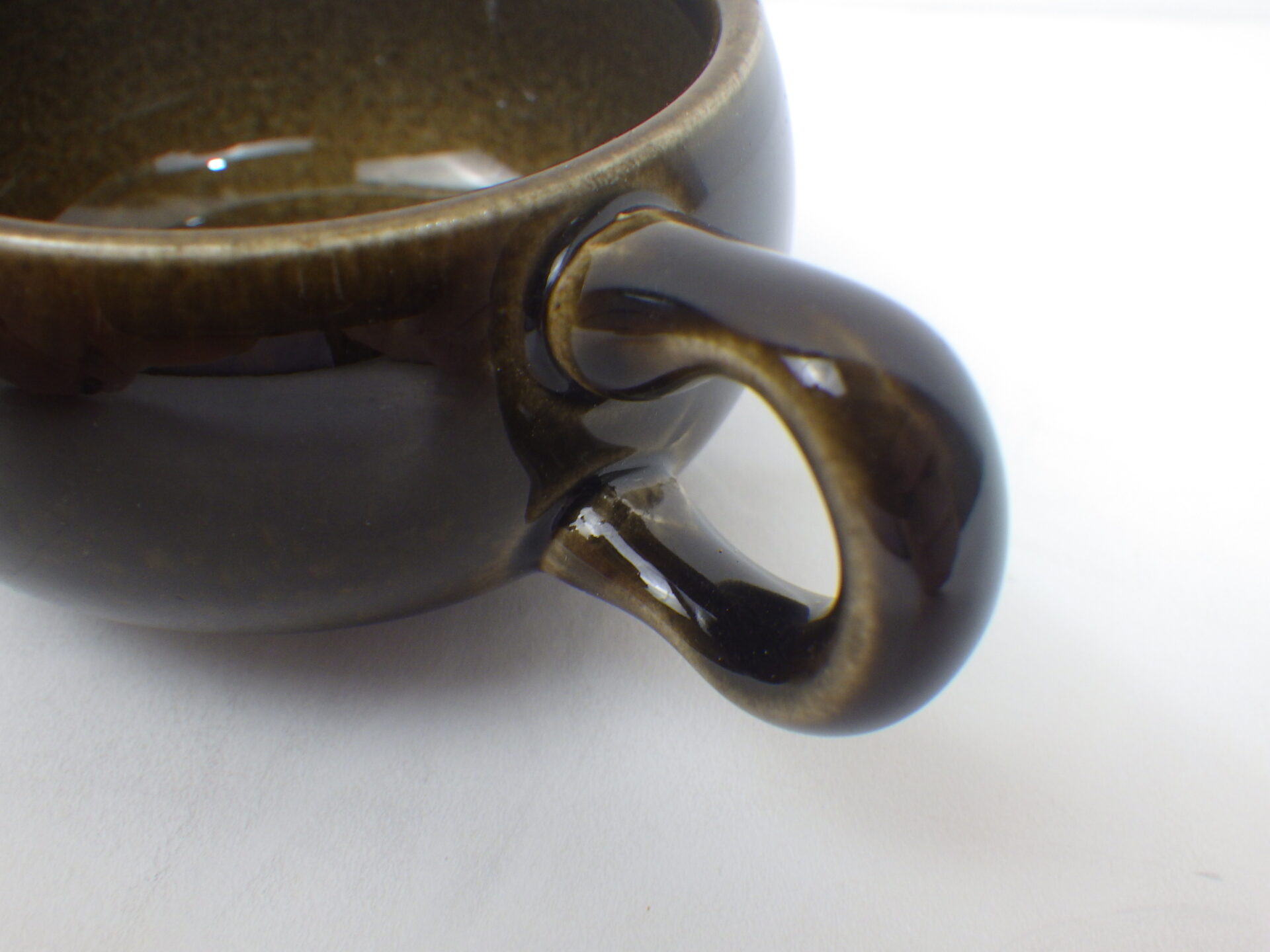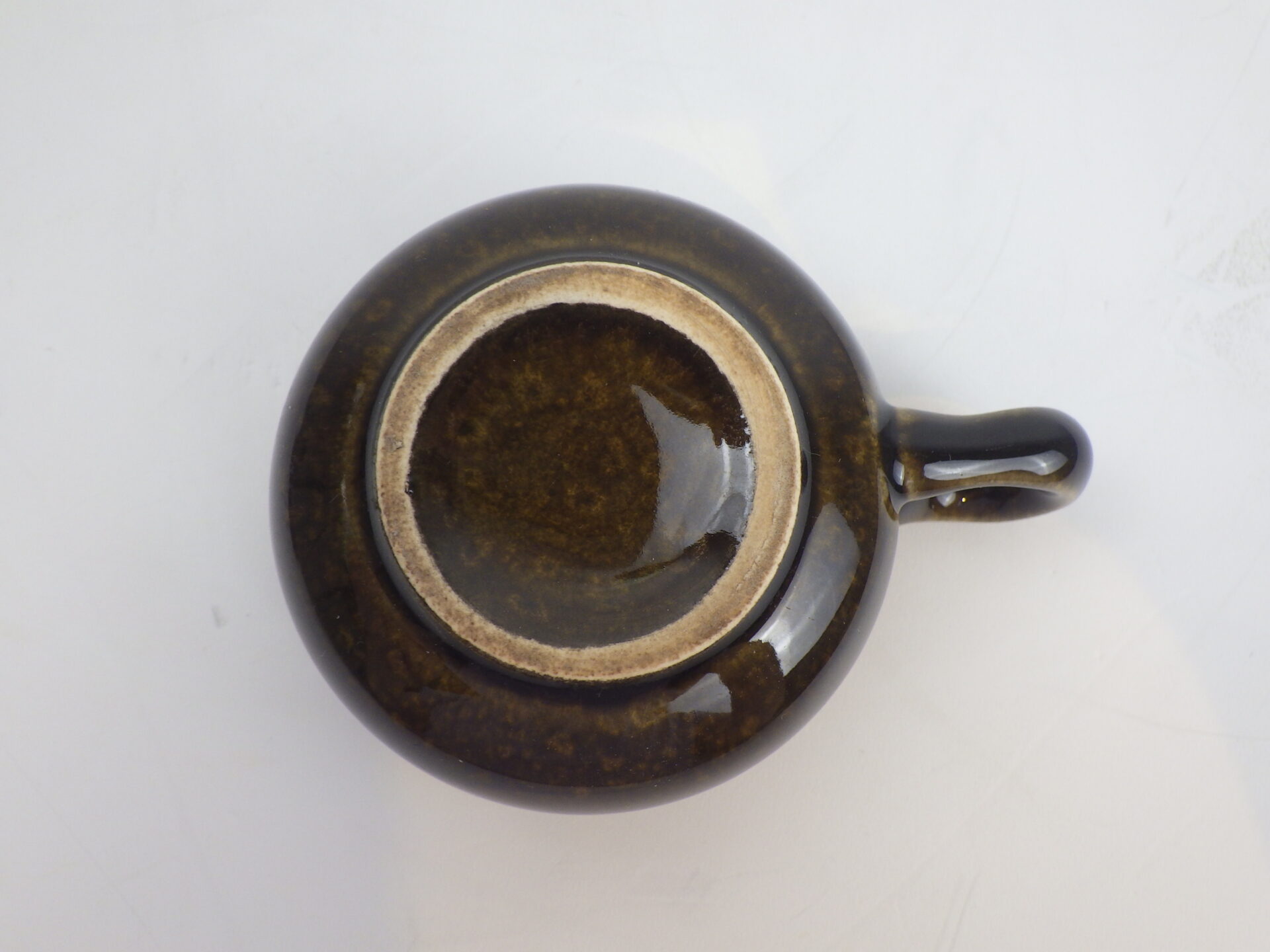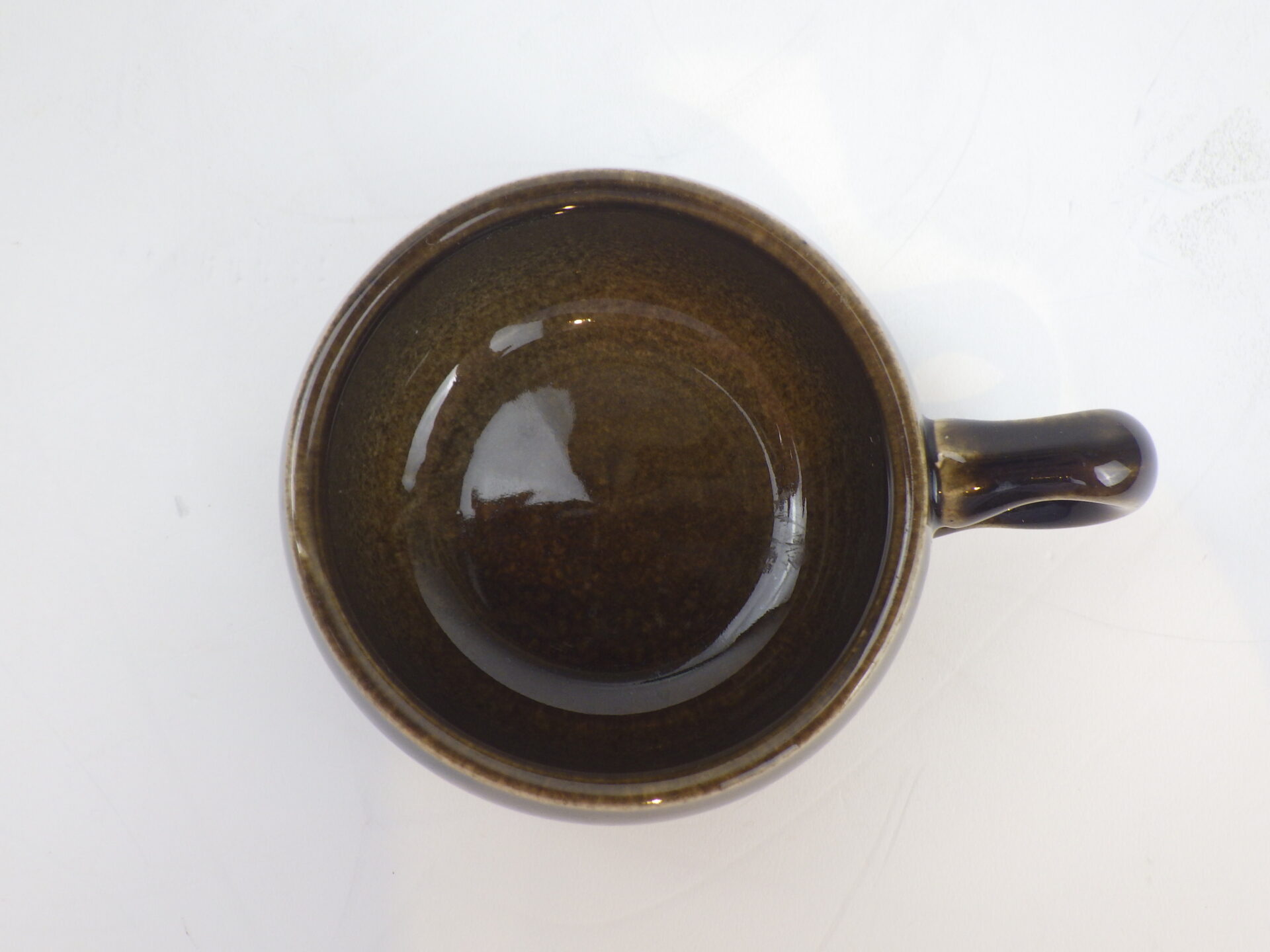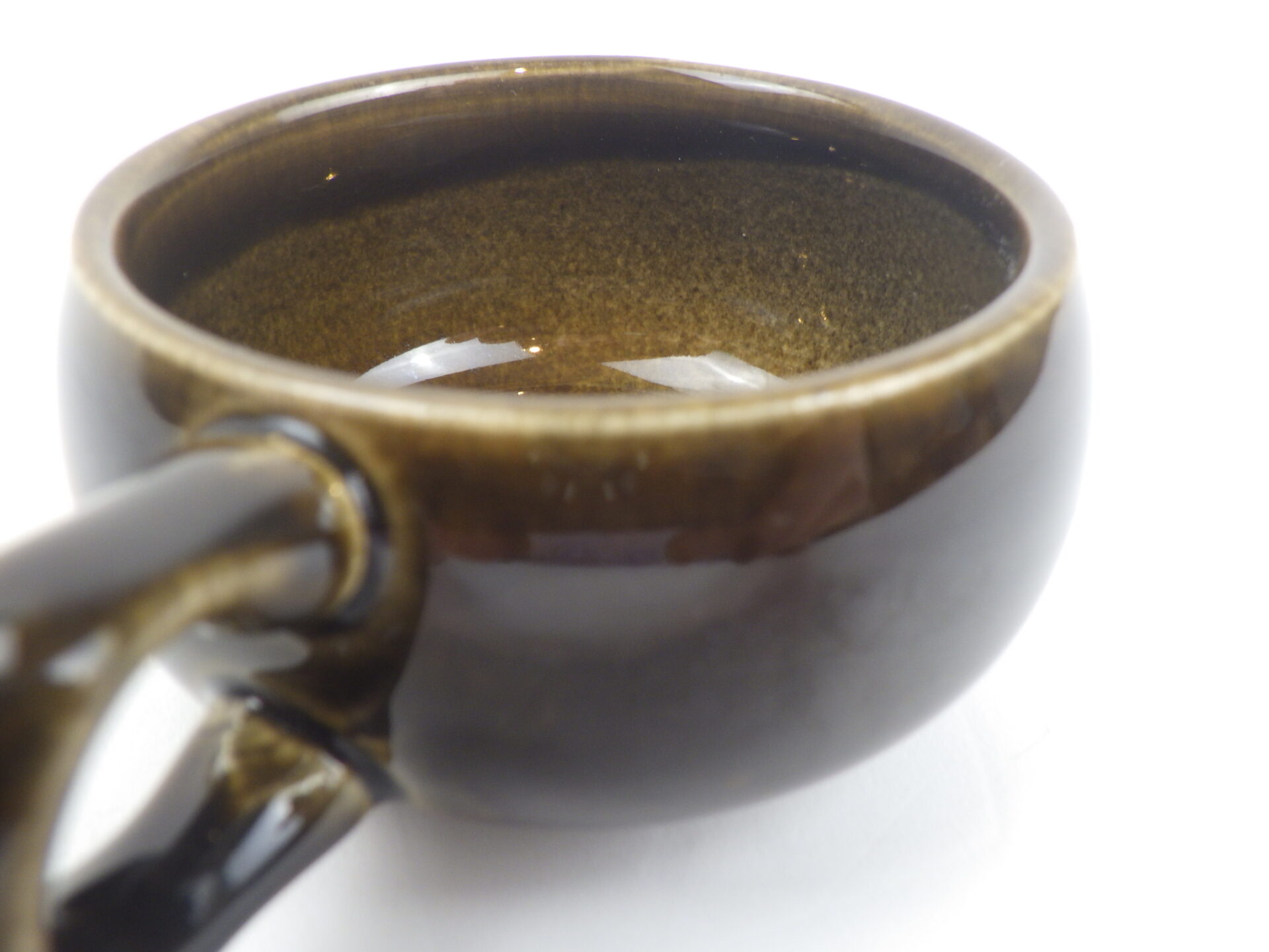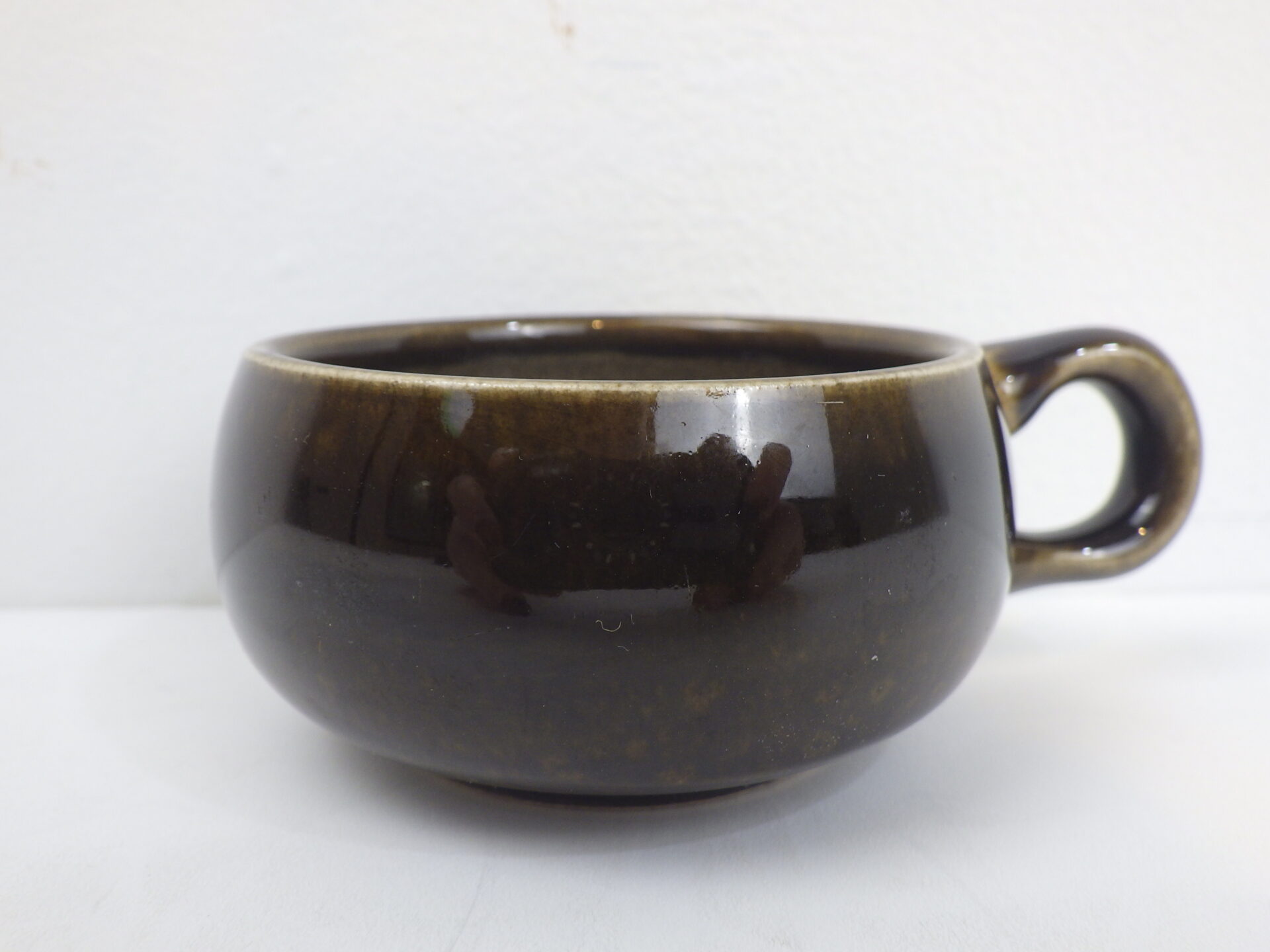 | アメリカを代表する工業デザイナー「ラッセル・ライト」デザインによる、1939年から1959年に製造されたSteubenville(スチューベンヴィル)社製のアメリカンモダンシリーズです。 ラッセル・ライトは、それまでの時代の主流であった華美な装飾を廃し、機能的でシンプル、それでいてデザイン的で安価な食器を生み出し、当時のアメリカにおける食器の価値観を大きく変えました。 こちらは、当時アメリカンコーヒーが全盛の時代に作られたデミタスカップなので、数が少なく貴重なアイテムです。 エスプレッソ好きな方にはもちろんのこと、たまらなく可愛らしいサイズ感となっておりますので、食器棚に飾るだけでも楽しめそうです。 |
