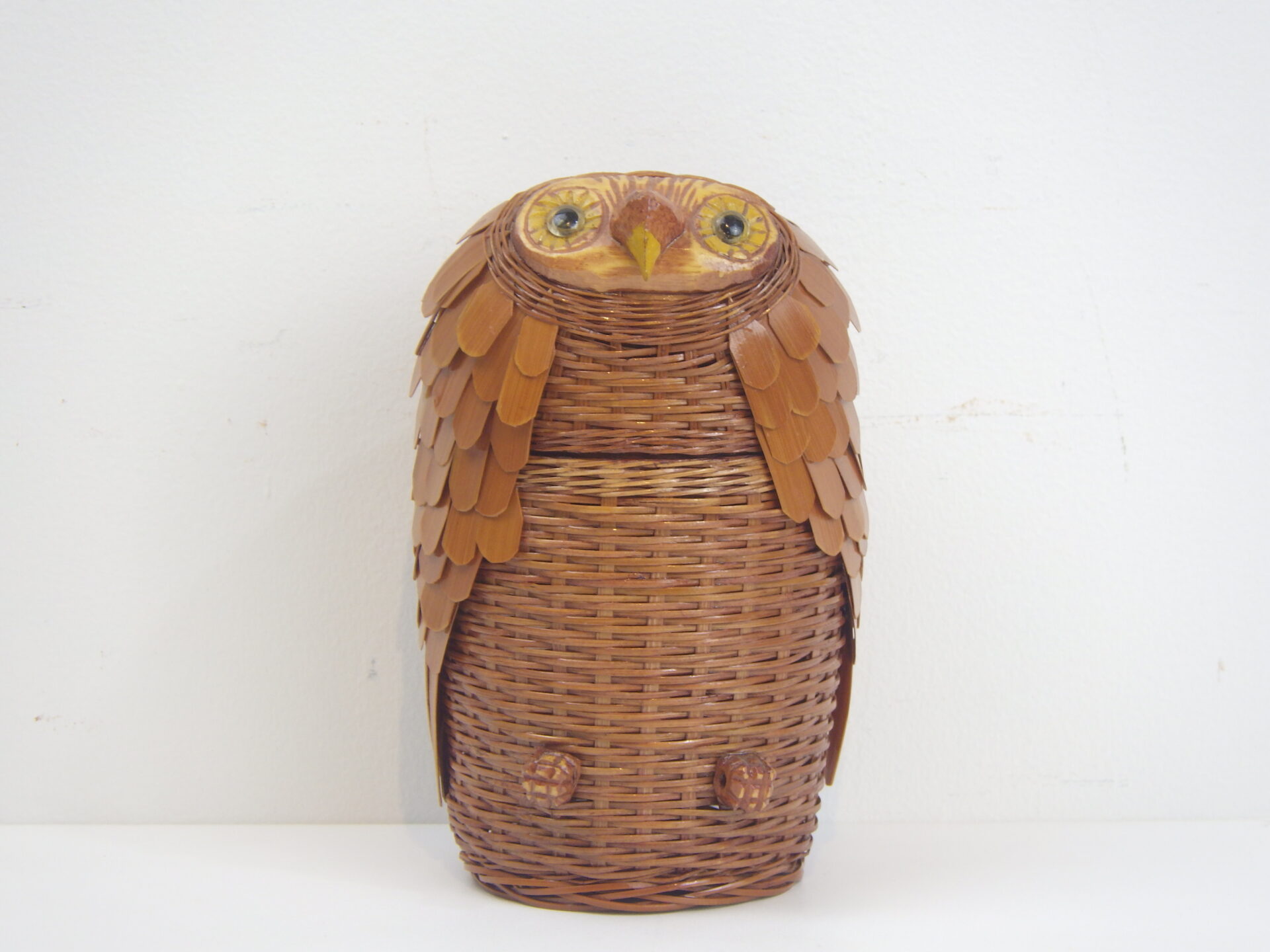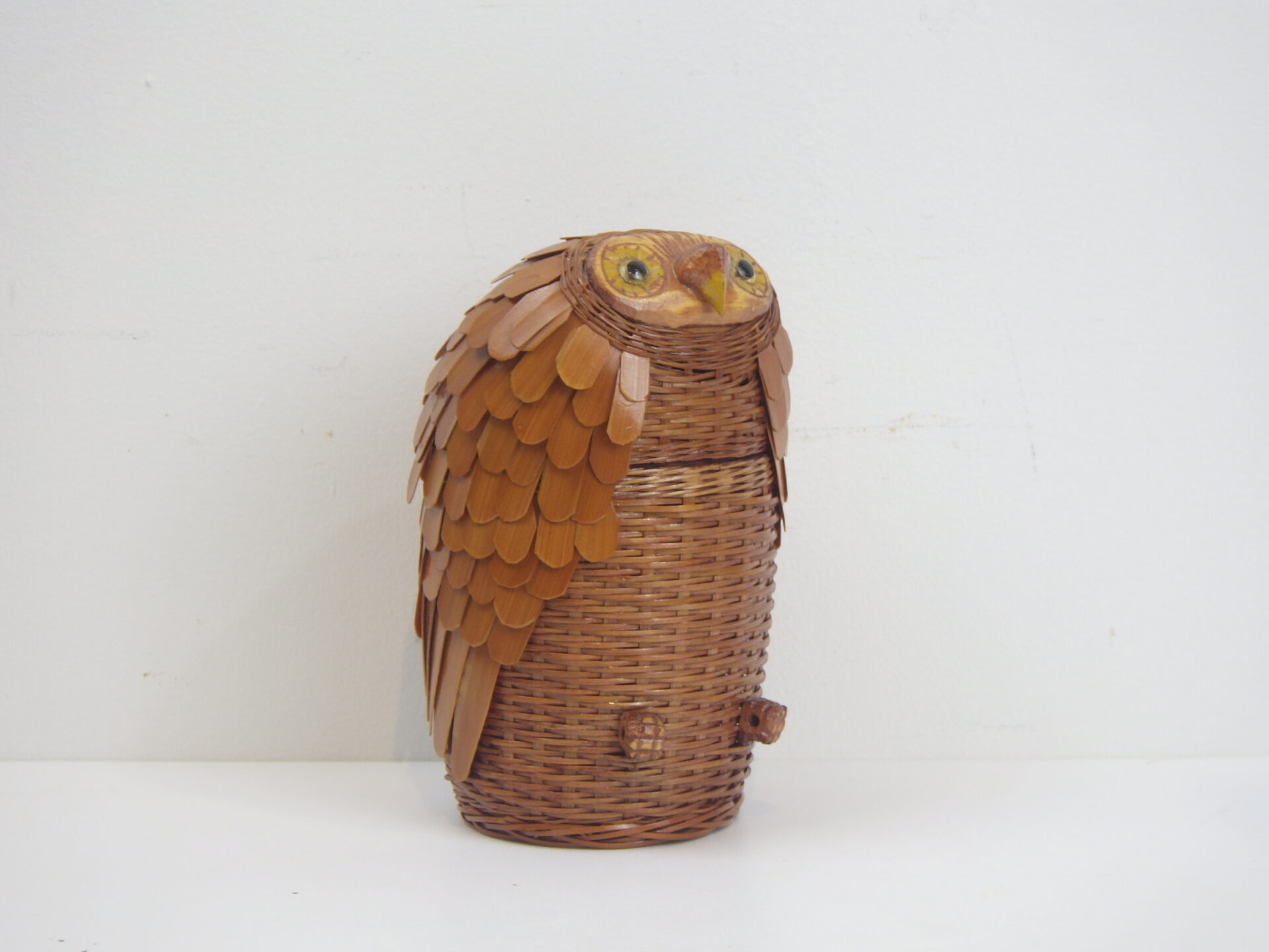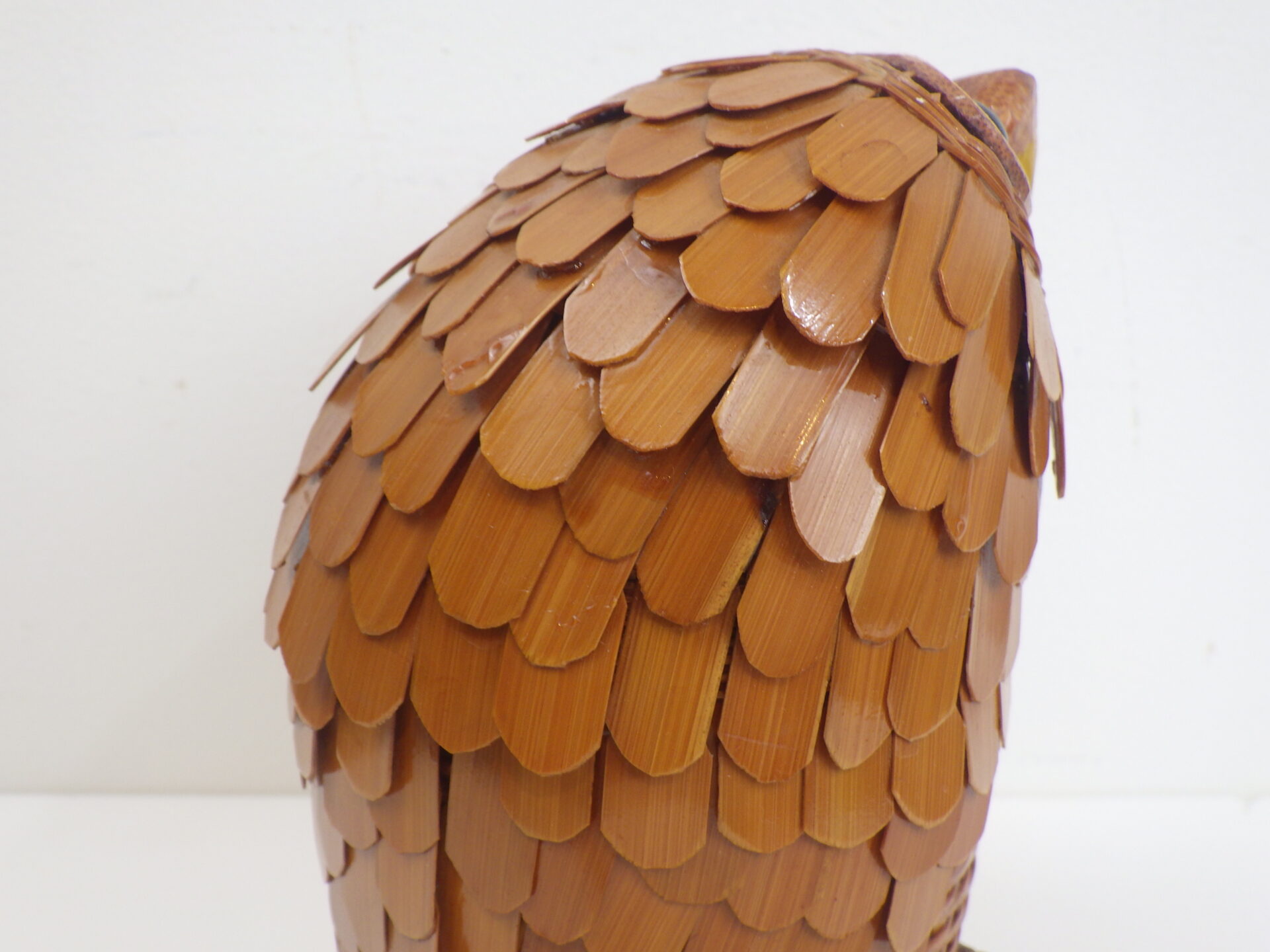 | アメリカで買い付けました。 竹のような素材で作られたフクロウのオブジェです。 かごのように細かく編まれたボディに、一枚一枚重ねて張り合わせられた翼から、丁寧な手仕事で作り上げられたことが伝わるアイテムです。 素朴な表情とちょこんとついた脚が可愛らしいですね。 |