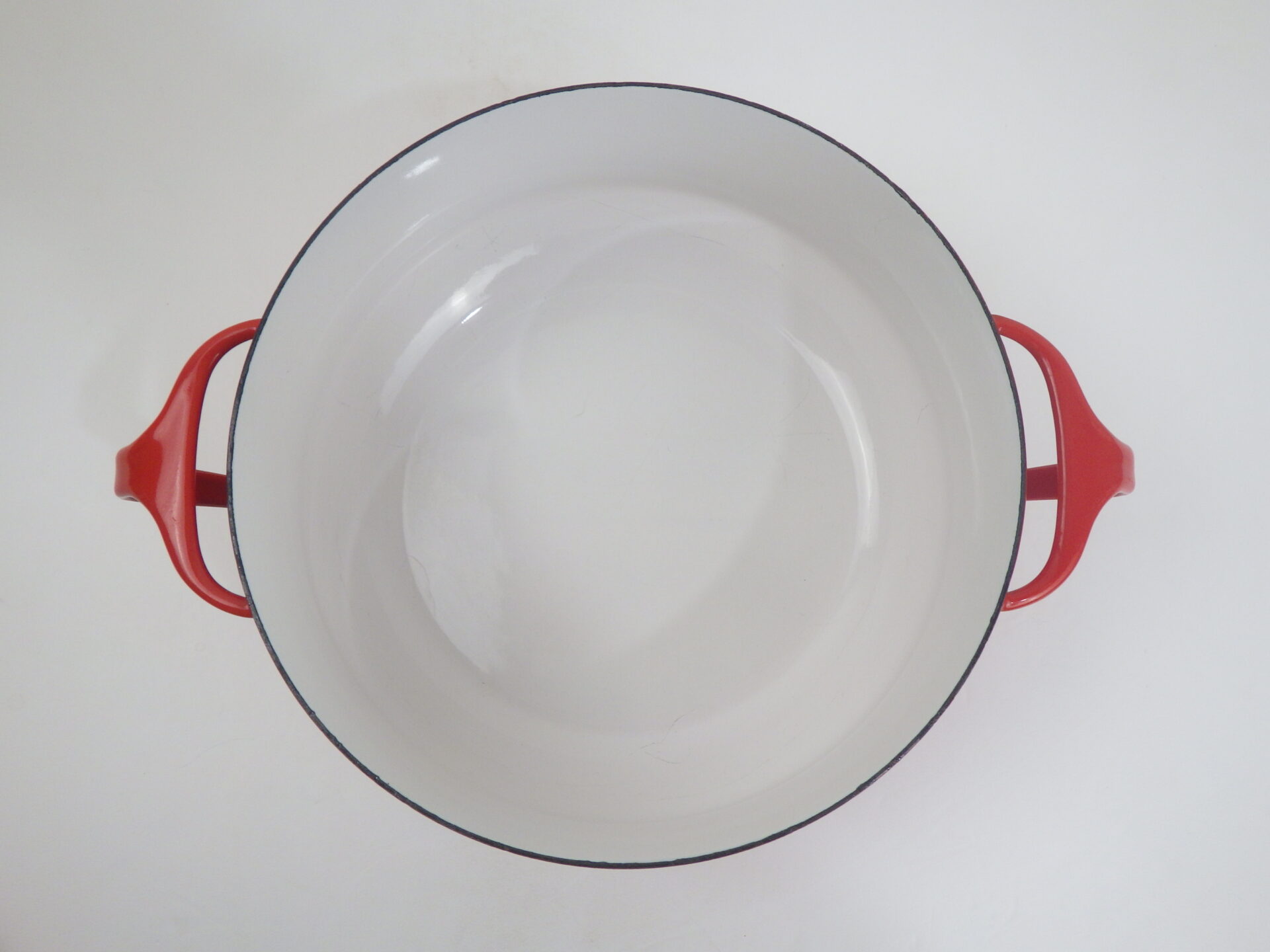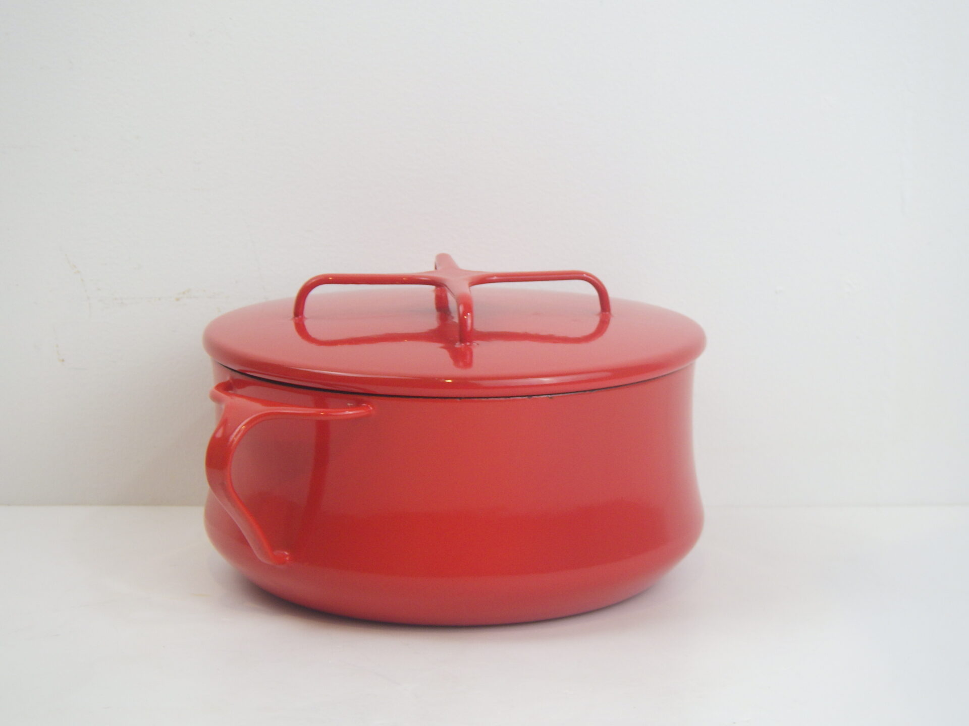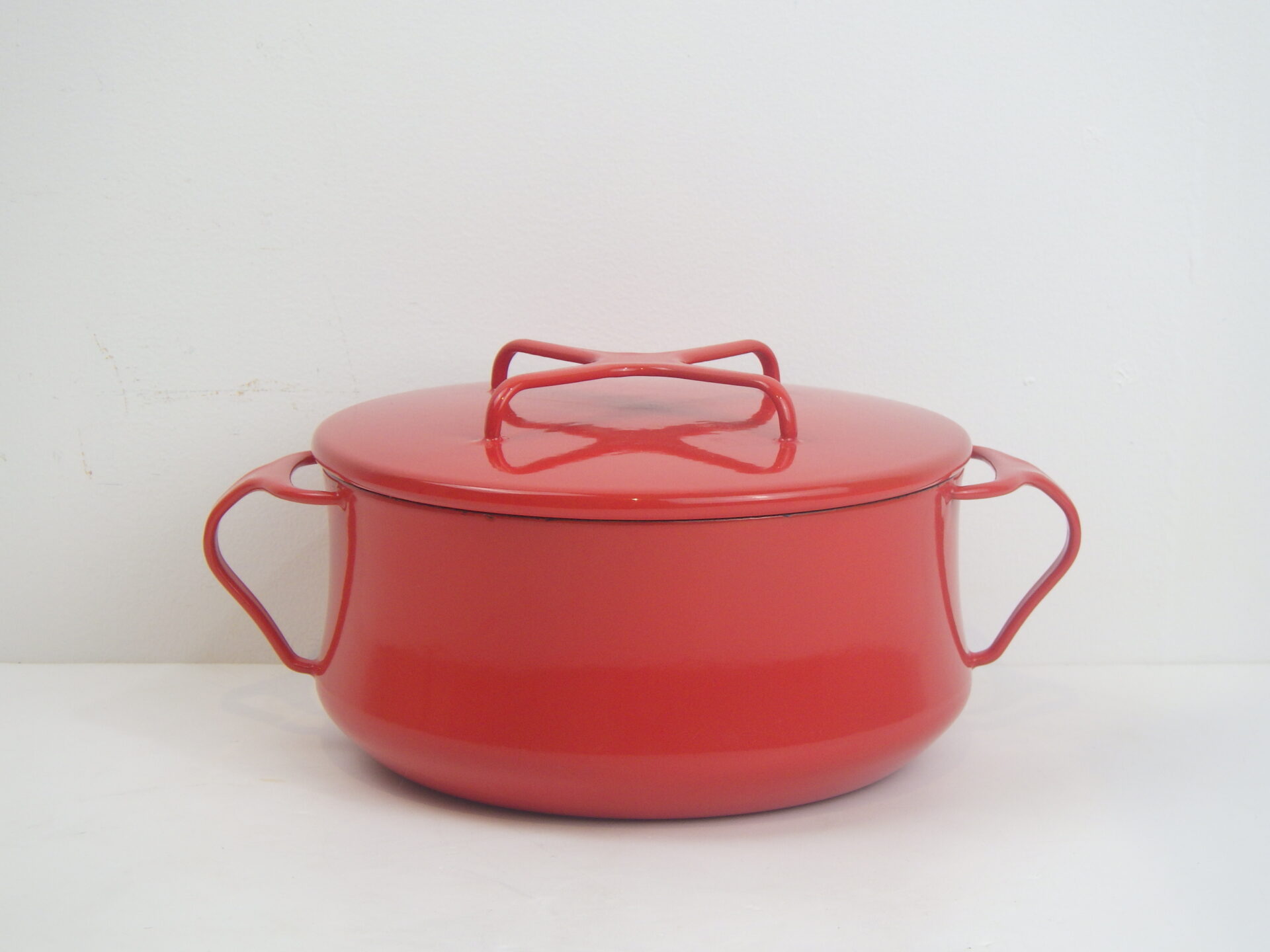 | イエン・H・クイストゴー(Jens H Quistgaard)がデザインを手掛けたDANSKの両手鍋です。 フランス製になります。 DANSKは熱伝導率が良く、調理もしやすいですよ。 キッチンに置いておくだけでアクセントになるデザインは、他にはない魅力ですね。 また、蓋は鍋敷きになるので、使い勝手も抜群です。 キャンプなどに持ち出すのにもおすすめしています。 |