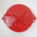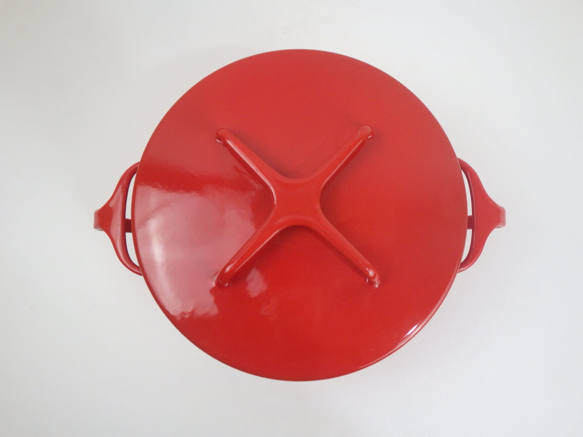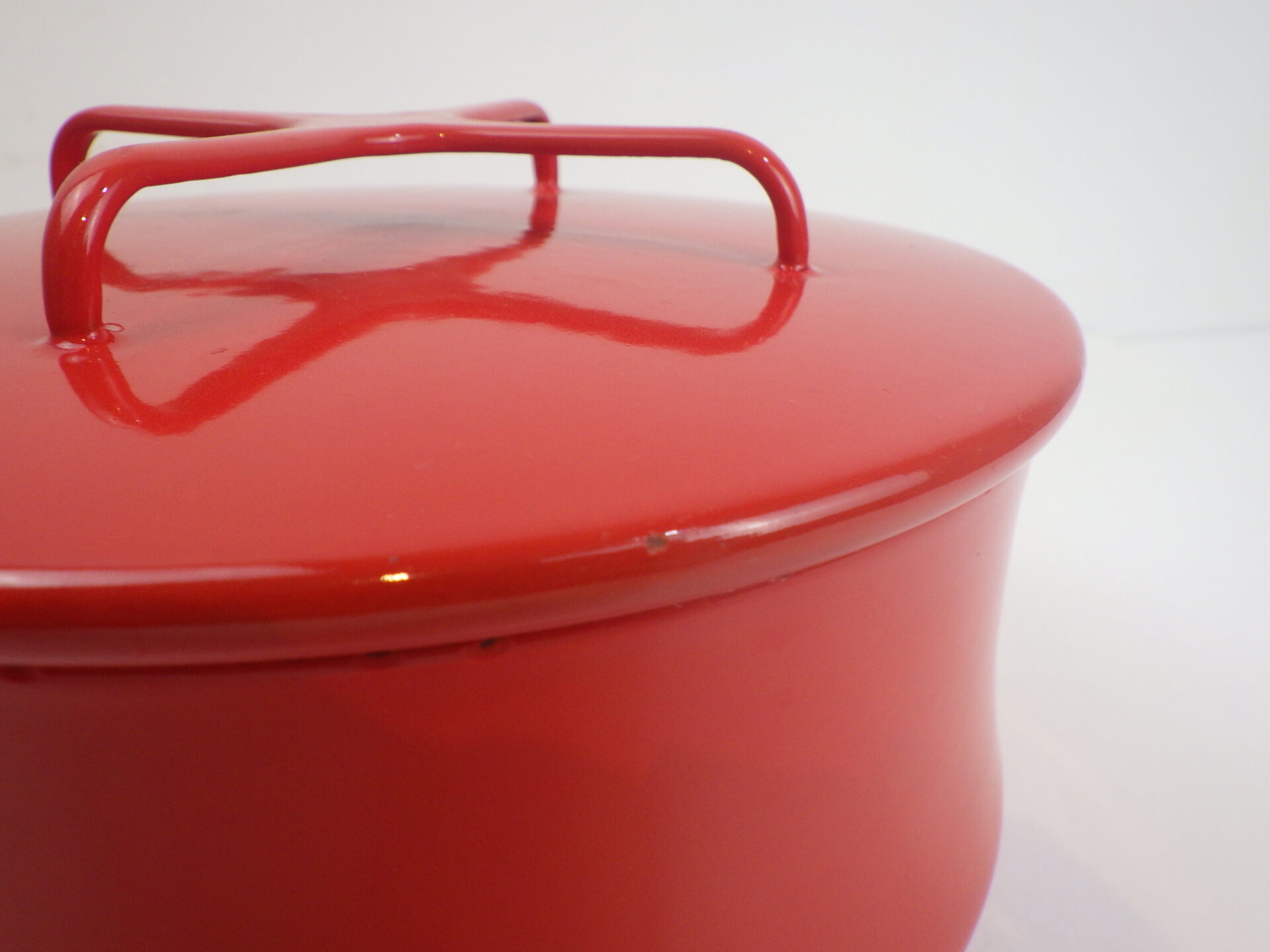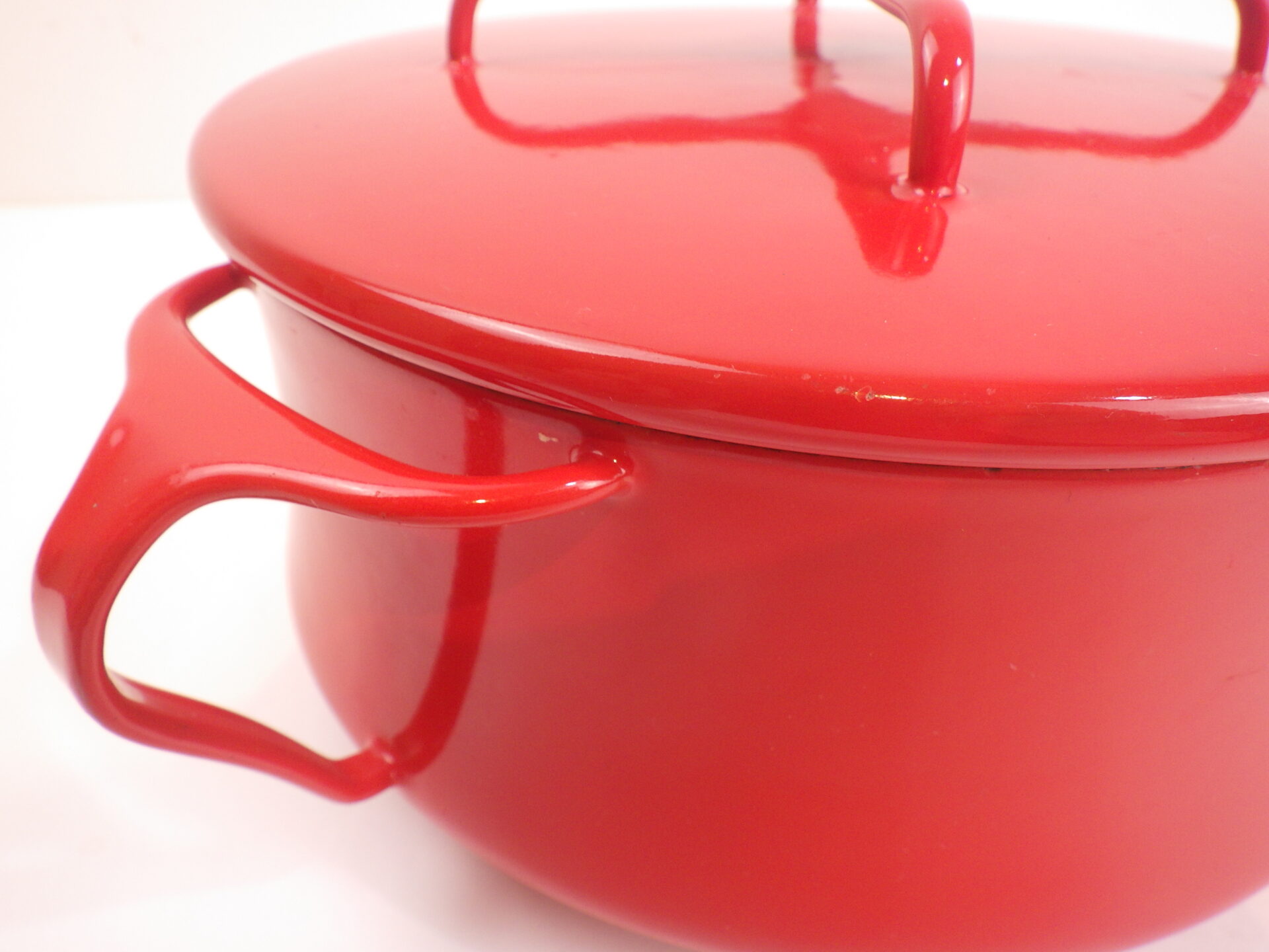 | イエン・H・クイストゴー(Jens H Quistgaard)がデザインを手掛けたDANSKの両手鍋です。 フランス製になります。 DANSKは熱伝導率が良く、調理もしやすいですよ。 キッチンに置いておくだけでアクセントになるデザインは、他にはない魅力ですね。 また、蓋は鍋敷きになるので、使い勝手も抜群です。 キャンプなどに持ち出すのにもおすすめしています。 |