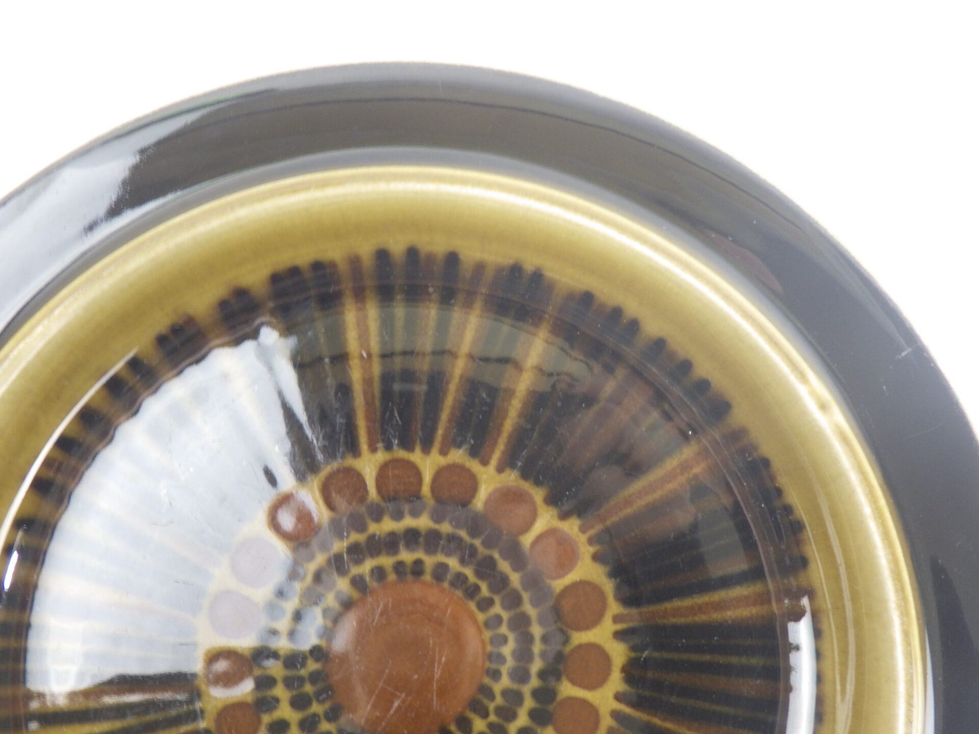 | アメリカで買い付けました。 世界中にコレクターを持つフィンランドの陶器メーカー「ARABIA」のKOSMOSシリーズのプレートです。 フォルムデザインはUlla Procopeが、デコレーションはGunvor Olin Gronqvistが担当しています。 ブラウンを基調とした落ち着いたデザインで、日本の食卓にも良く合います。 コスモスの花びらとして描かれている直線は一つひとつ手書きで描かれており、素朴で温かみを感じられるテイストに仕上げられていますね。 丈夫で実用的なので、是非普段使いしていただきたいアイテムです。 |