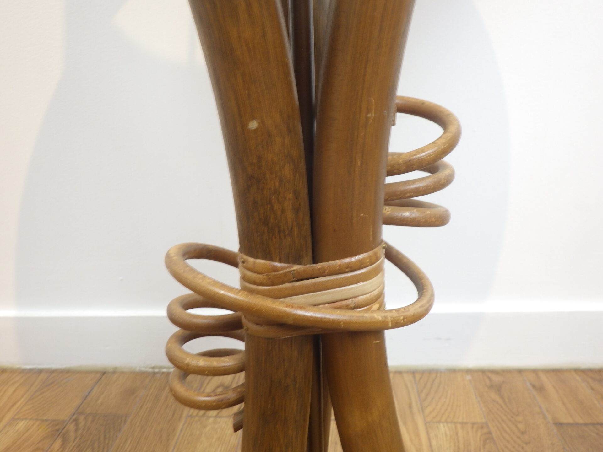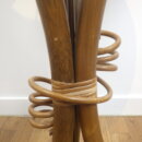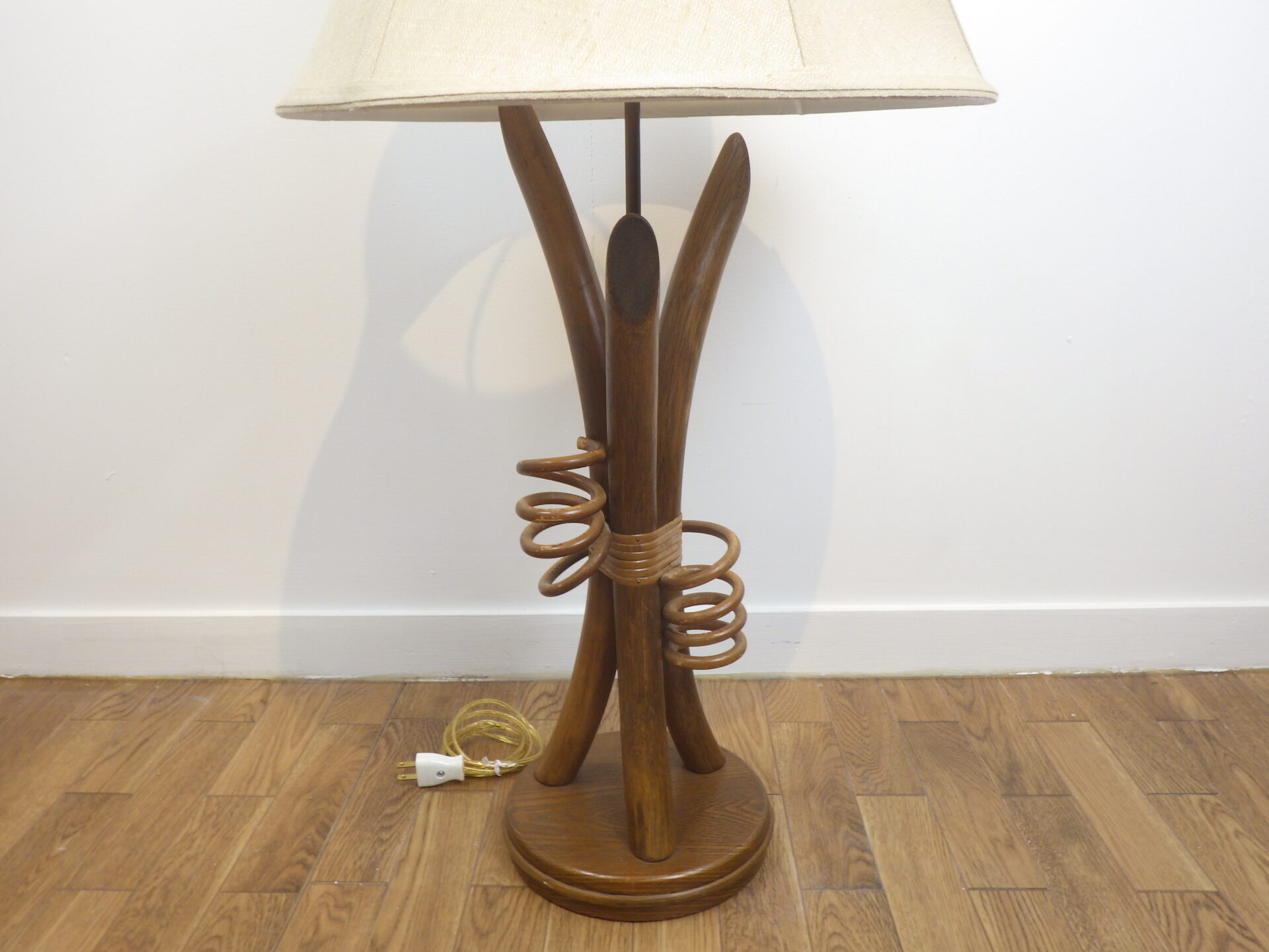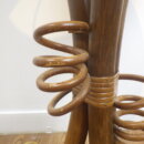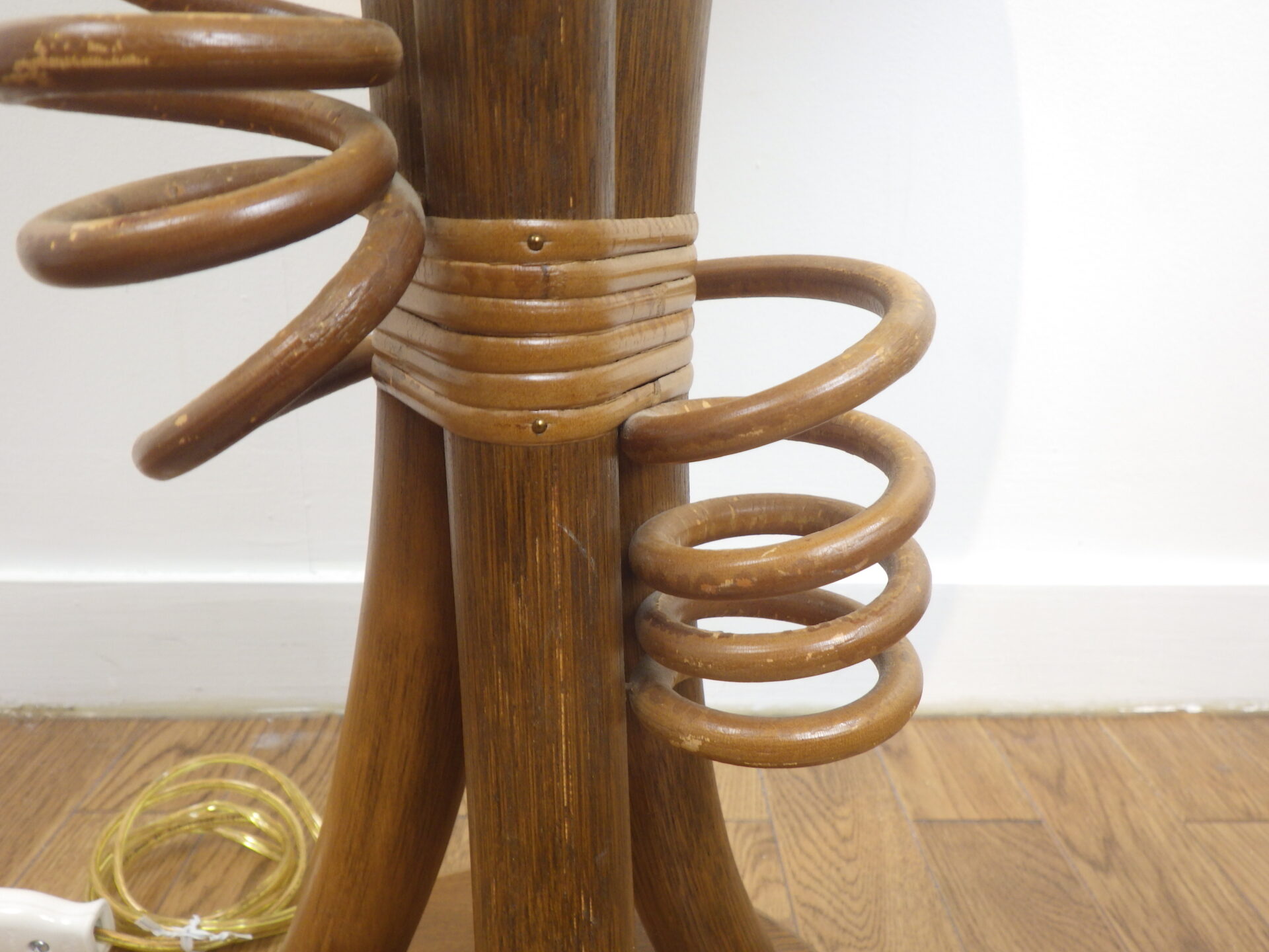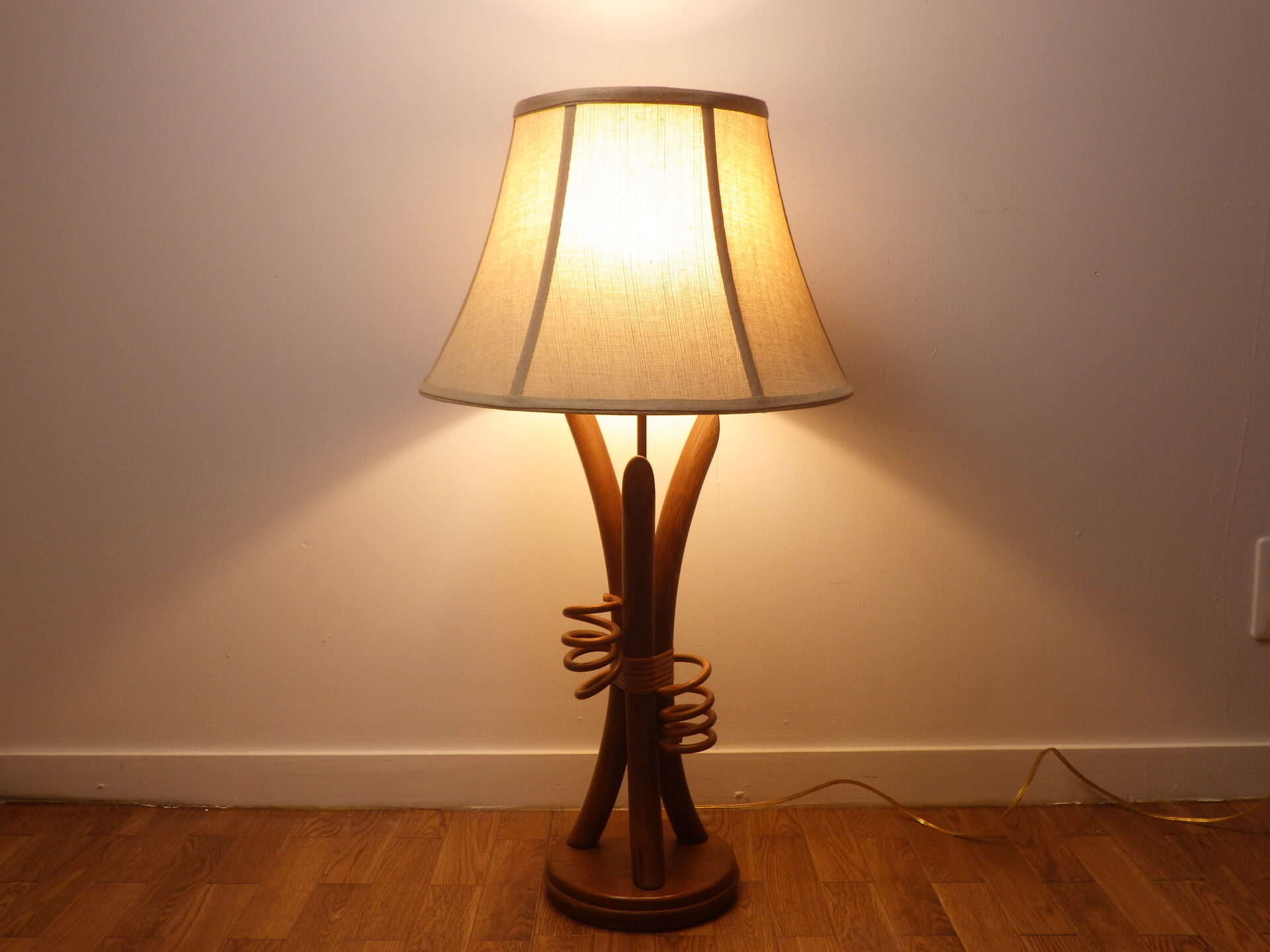 | アメリカで買い付けました。 ベースは長さの異なる三本の支柱に、竹がつるのようにぐるぐると巻き付いたようなデザインになっています。 特徴的なフォルムデザインとなっており、間接照明としての役割だけでなく、インテリアとして空間のアクセントになってくれるアイテムです。 ソケット部分のスイッチでON/OFFが切り替えられます。 (電球の口金サイズ:E26 LED対応) |