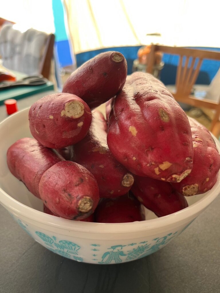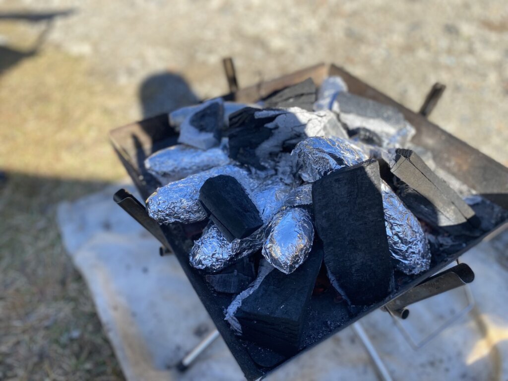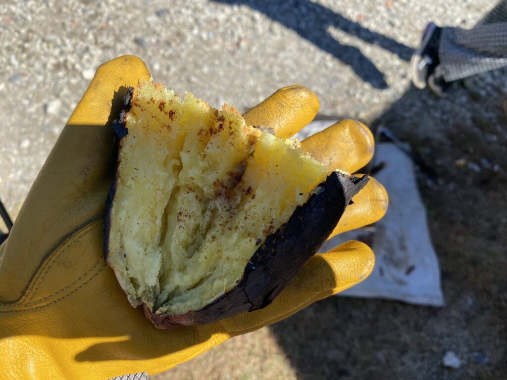 今回は焚き火で焼き芋もしました。