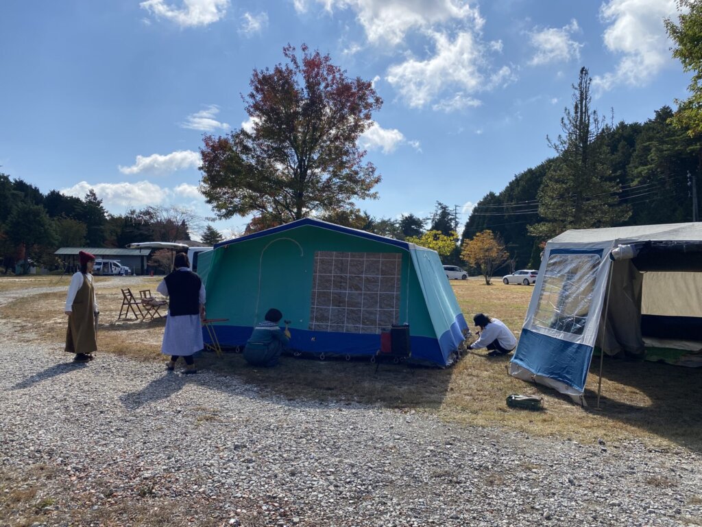 鉄骨テントも女子だけで頑張って建てましたよ~