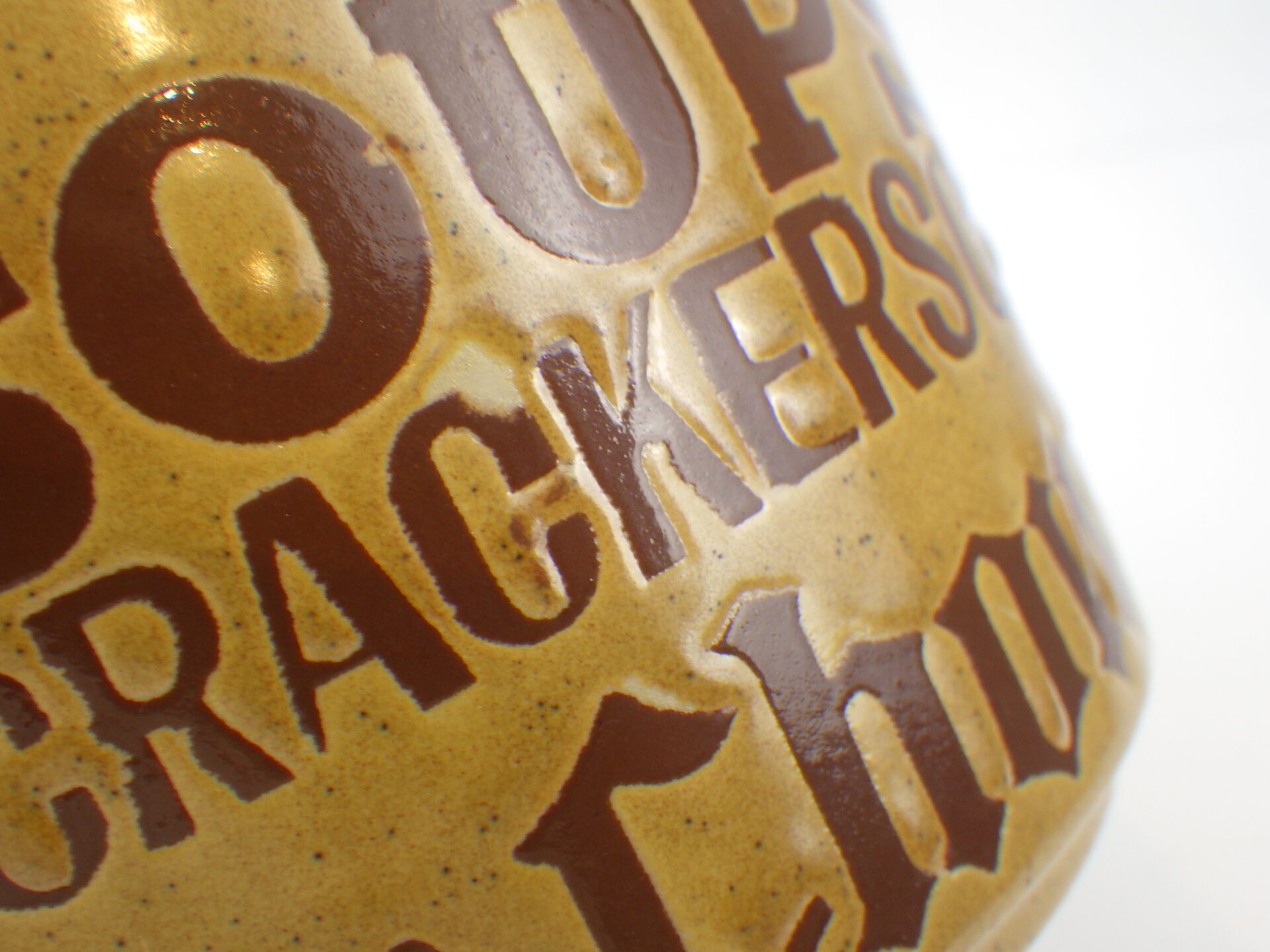 | アメリカで買い付けました。 「スープ&クラッカー」の文字が全面にデザインされた可愛いスープマグです。 大きめサイズなので、ポトフなどゴロゴロ具材が入ったスープやシチューなどにもお使いいただけます。 裏面にJAPANの刻印がありますが、当時アメリカ向けに輸入品として製造されていたようです。 |