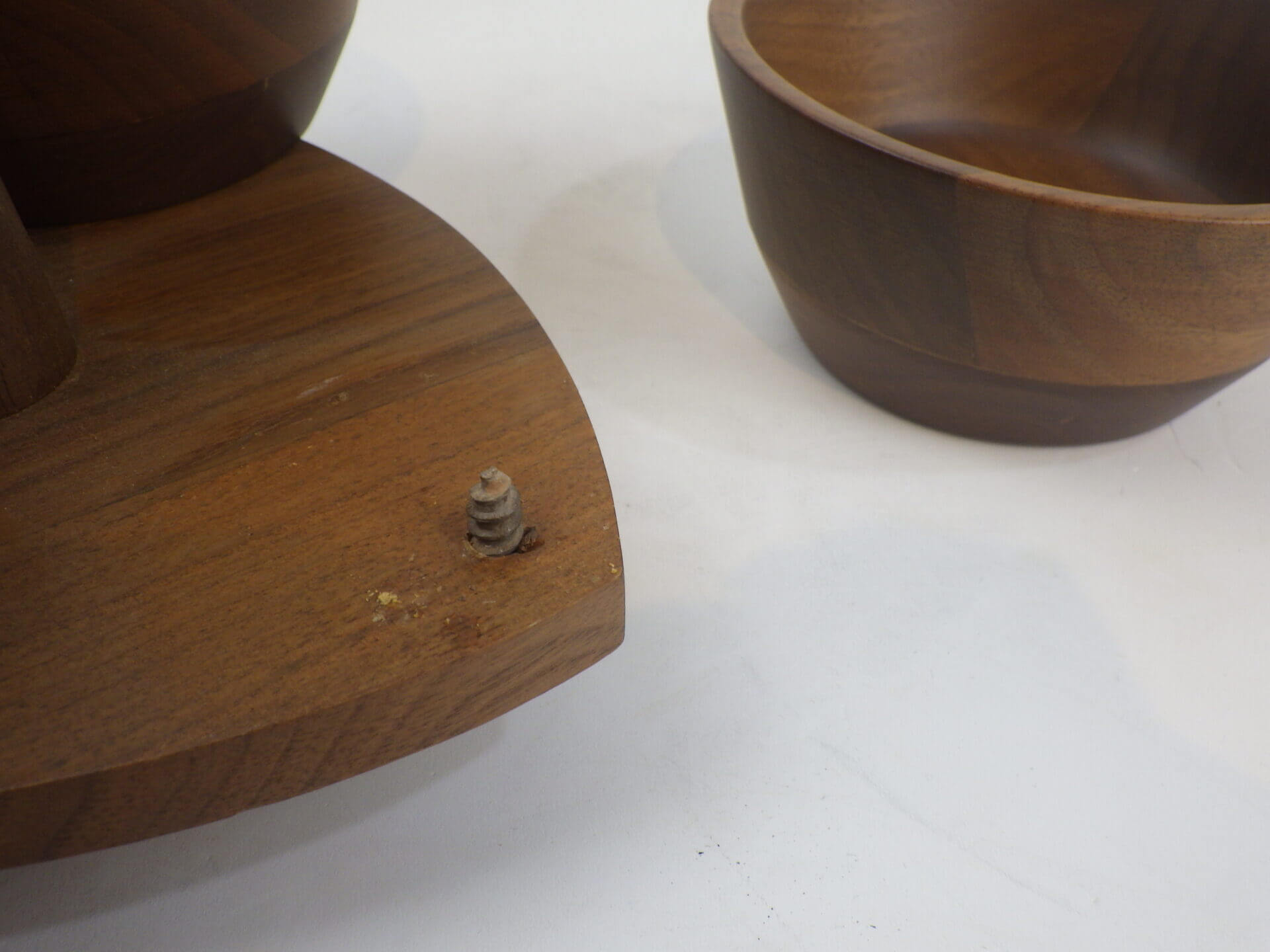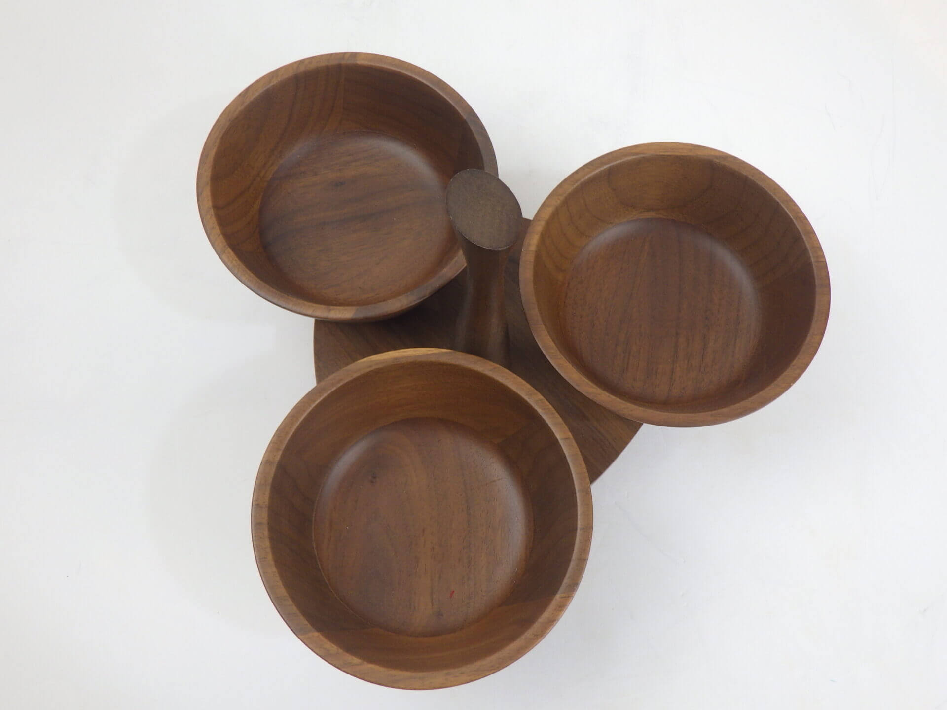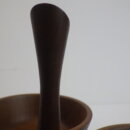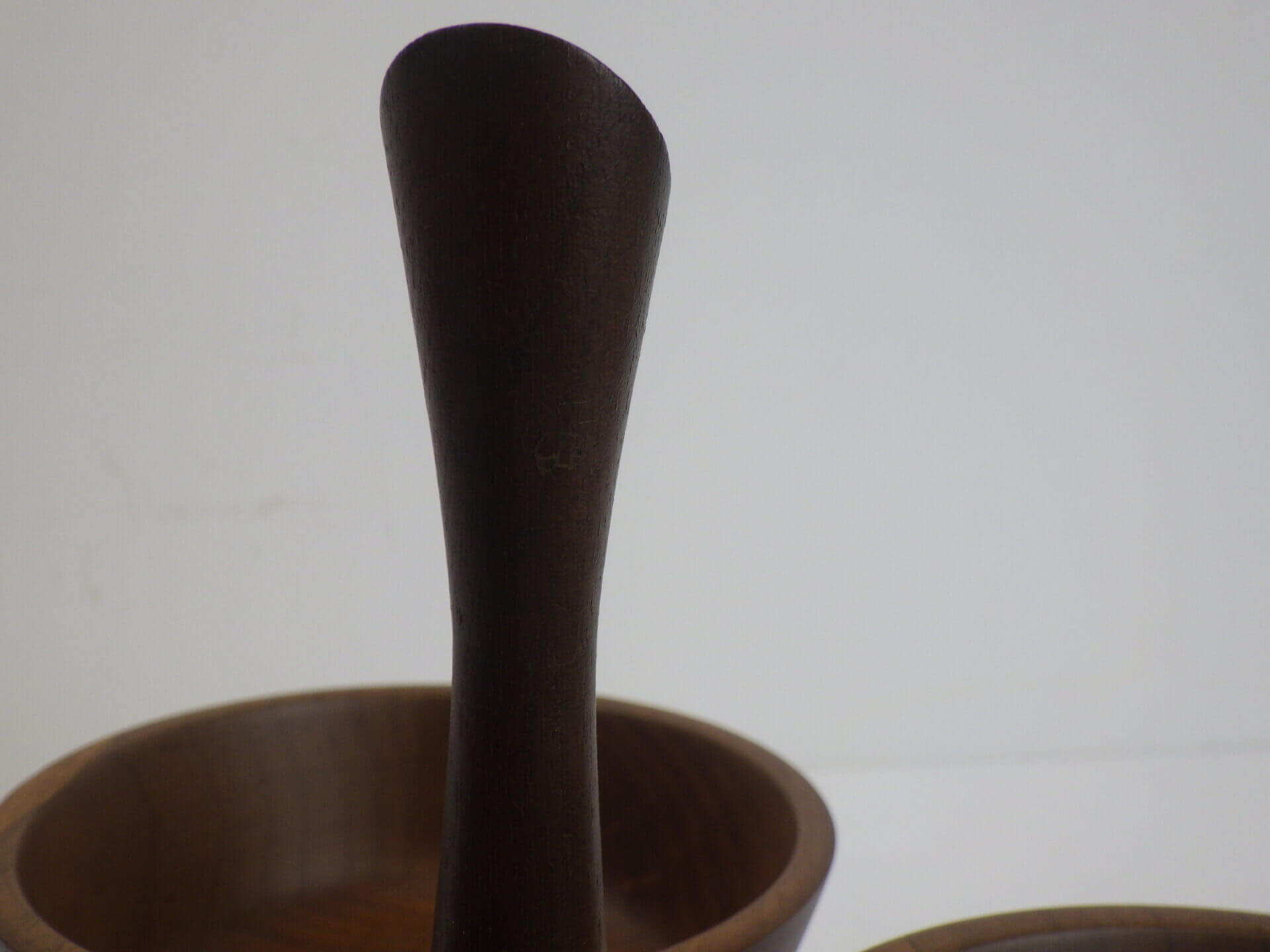 | アメリカで買い付けしました。 ウォールナットの雰囲気がとても良く、インテリアピースとして絵になるアイテムです。 キッチン周りや飲食店等ではオリーブやナッツ、またはドリンク用のシロップやミルク等を入れたりするのに良いサイズ感です。 ご自宅では鍵やアクセサリーなどの小物入れとして重宝しそうですね。 ボウル部分は取り外し可能なので、お手入れがしやすく、長く愛用いただけることでしょう。 |