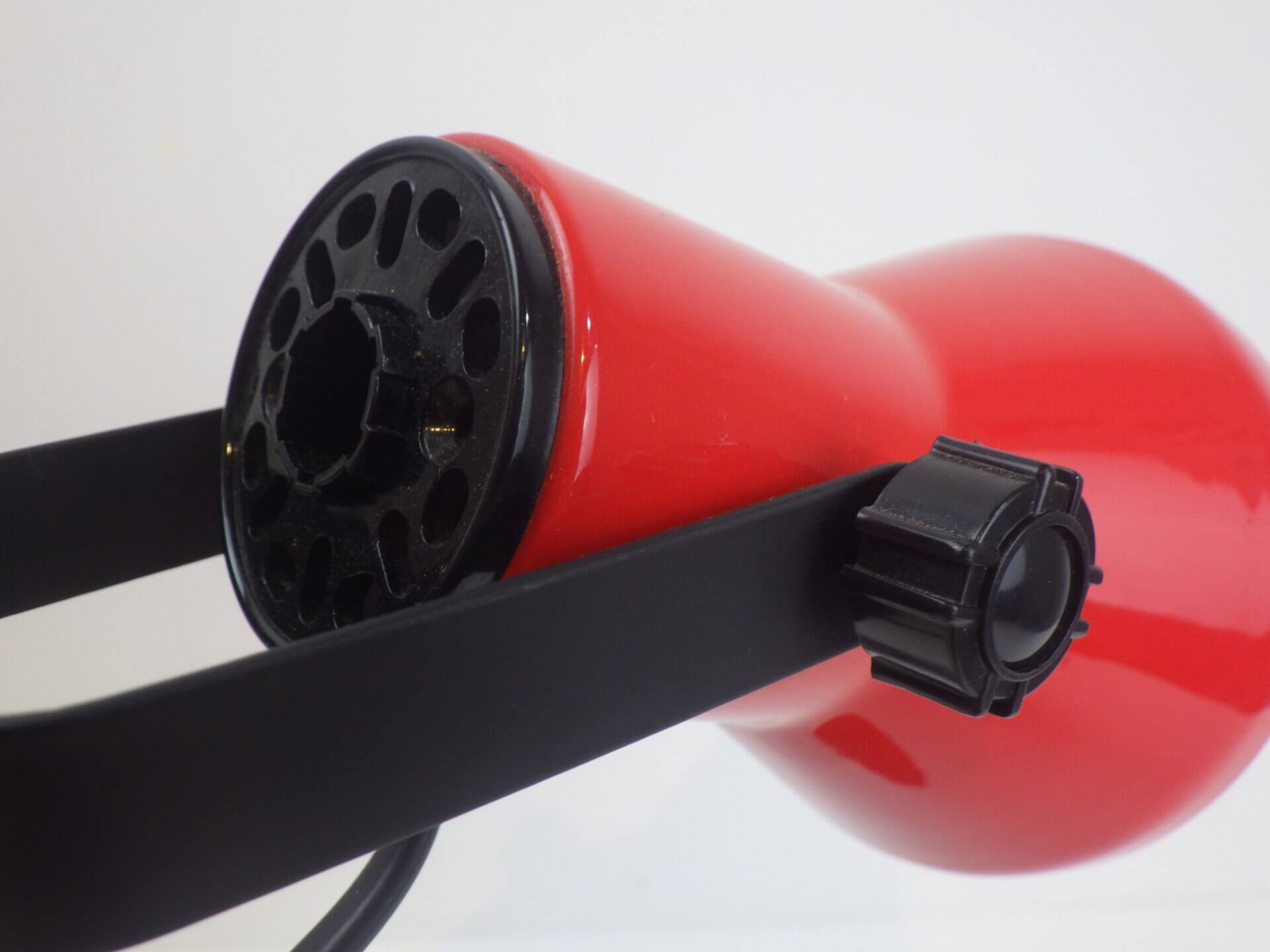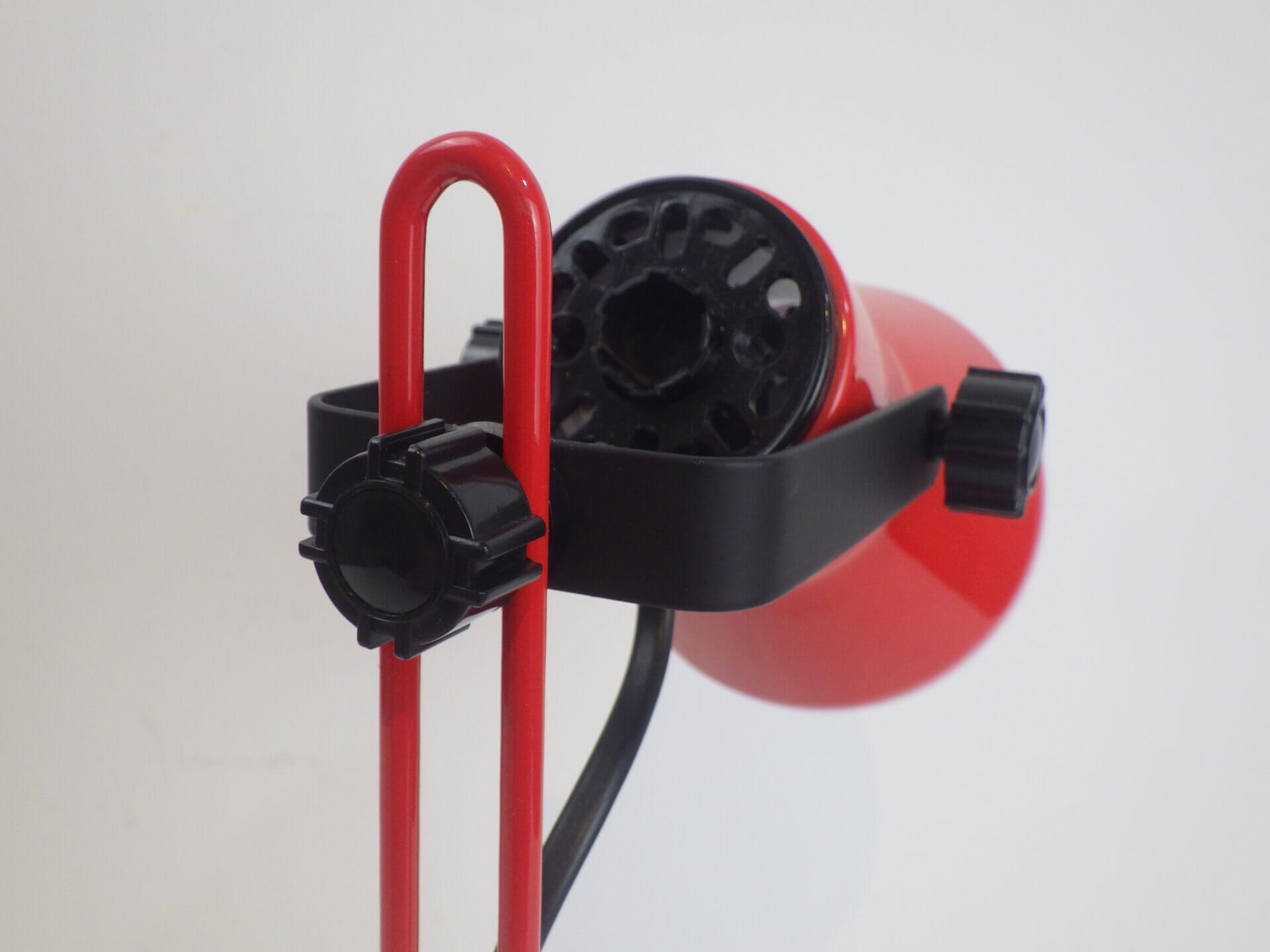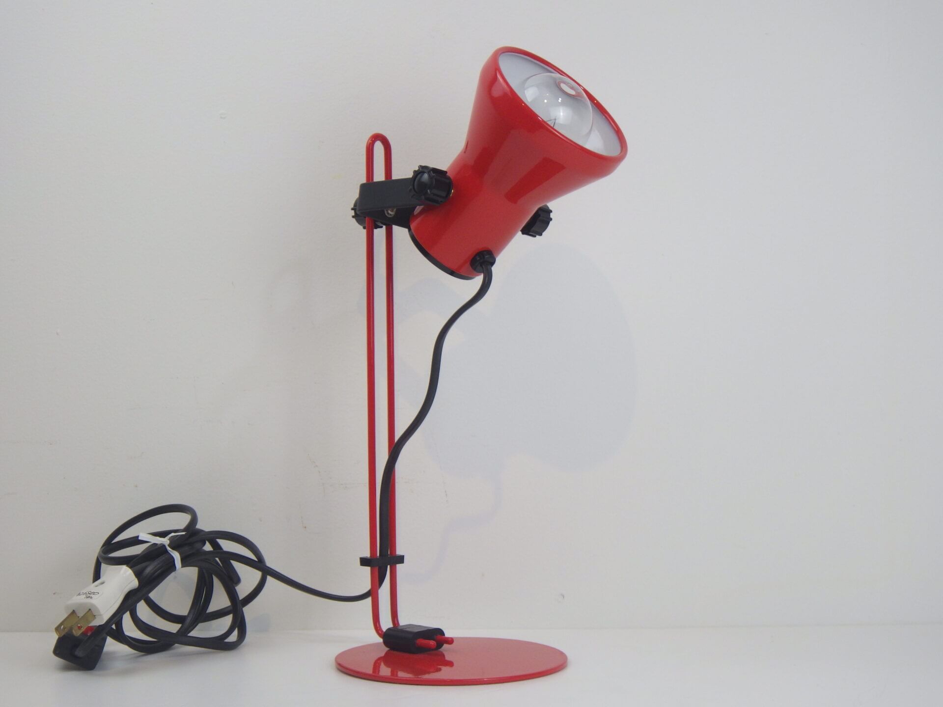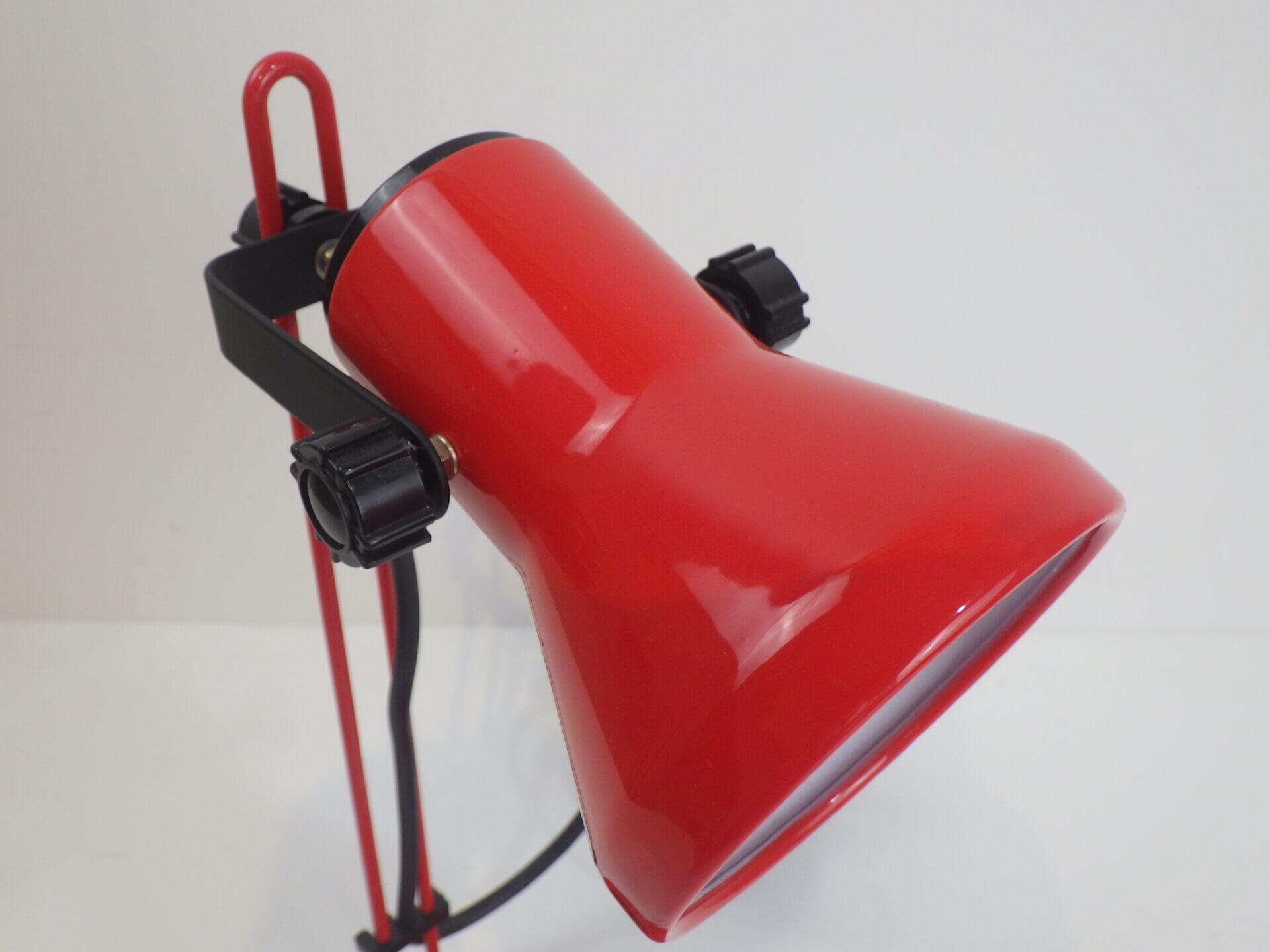 | ヨーロッパで買い付けました。 赤と黒のカラーリングがポップで可愛いデスクランプです。 デスク上だけでなく、棚に入れたり店舗什器として置いたり、様々な空間でインテリアのアクセントとしてお使いいただけそうです。 また、トップの高さと角度を自由に変えられるのもポイントが高いですね。 コンセント部分のスイッチでON/OFFが切り替えられます。 (電球の口金サイズ:E17 LED対応) |
