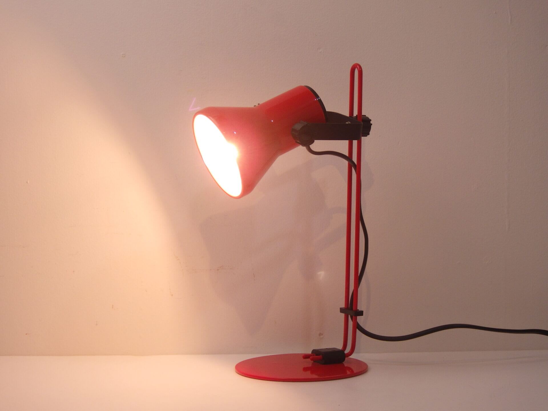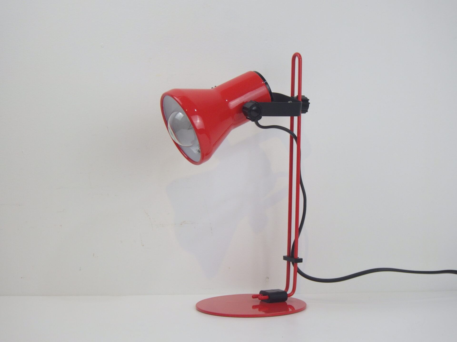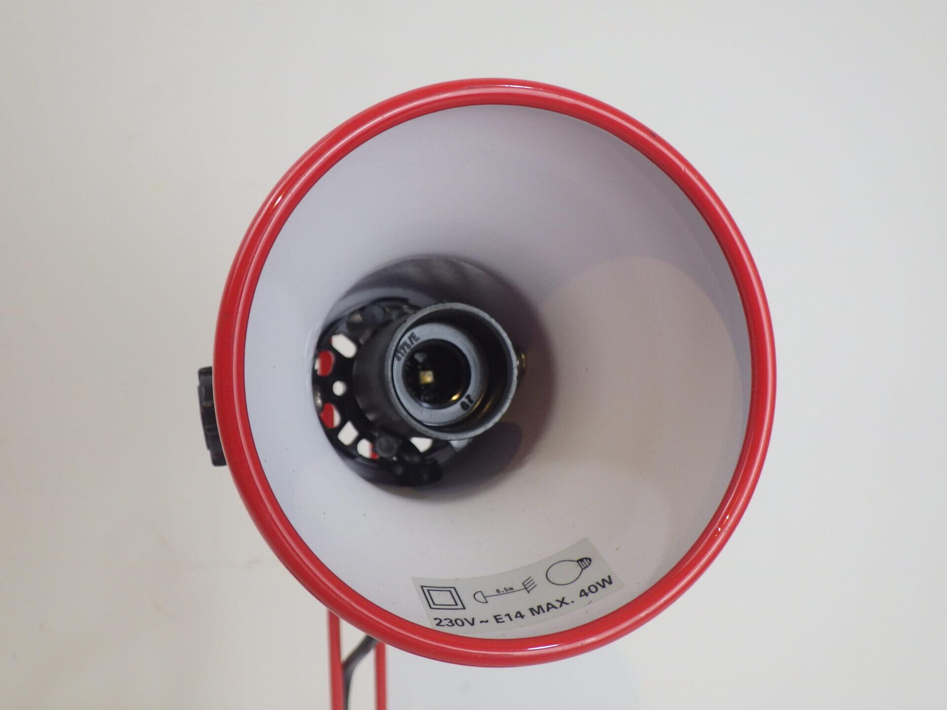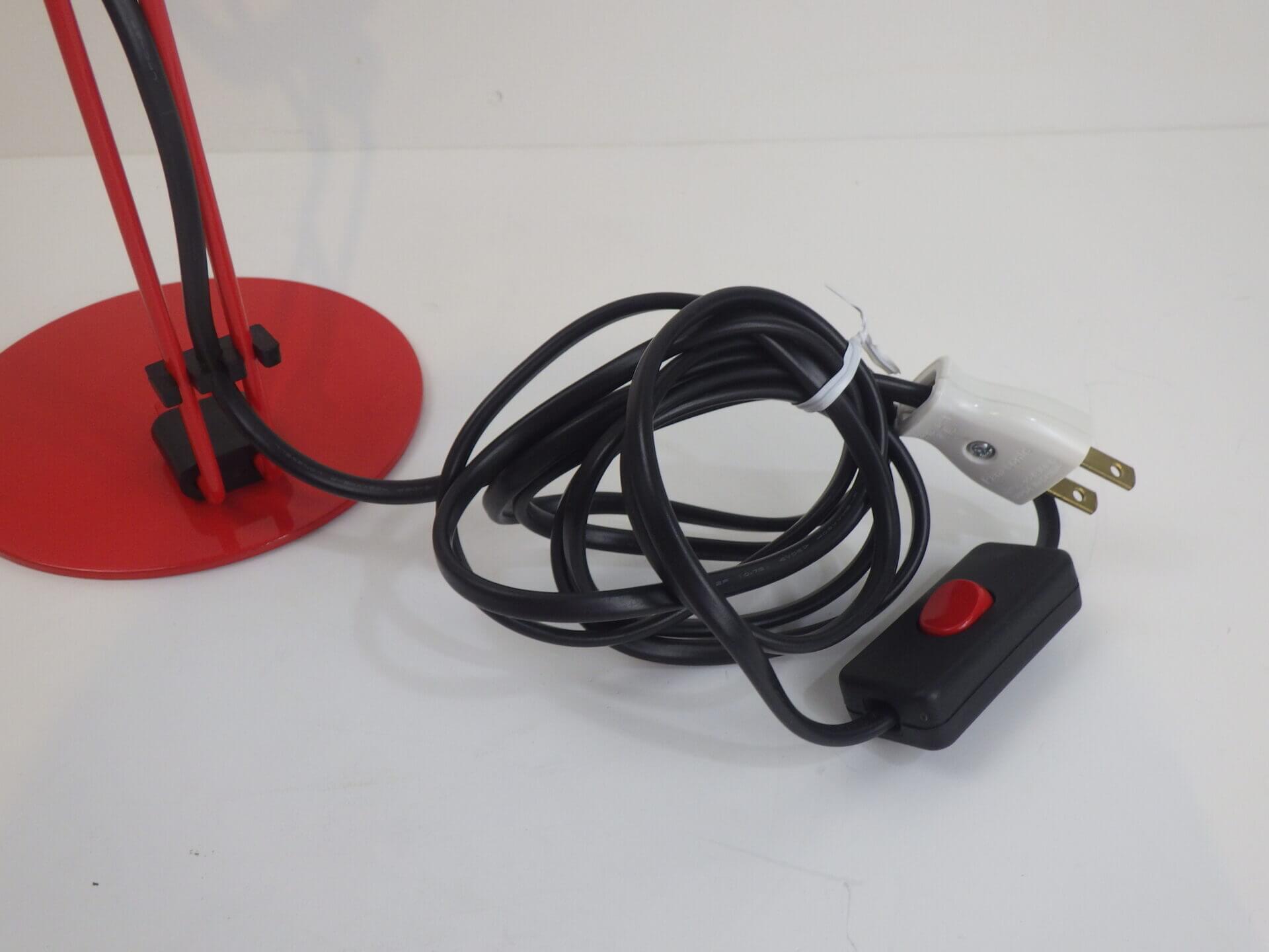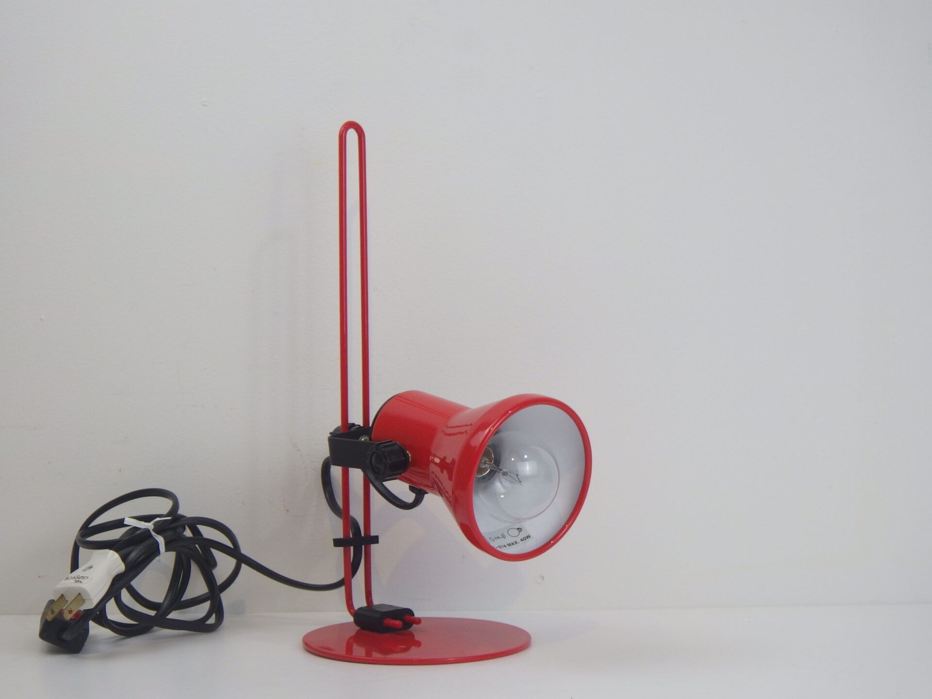 | ヨーロッパで買い付けました。 赤と黒のカラーリングがポップで可愛いデスクランプです。 デスク上だけでなく、棚に入れたり店舗什器として置いたり、様々な空間でインテリアのアクセントとしてお使いいただけそうです。 また、トップの高さと角度を自由に変えられるのもポイントが高いですね。 コンセント部分のスイッチでON/OFFが切り替えられます。 (電球の口金サイズ:E17 LED対応) |