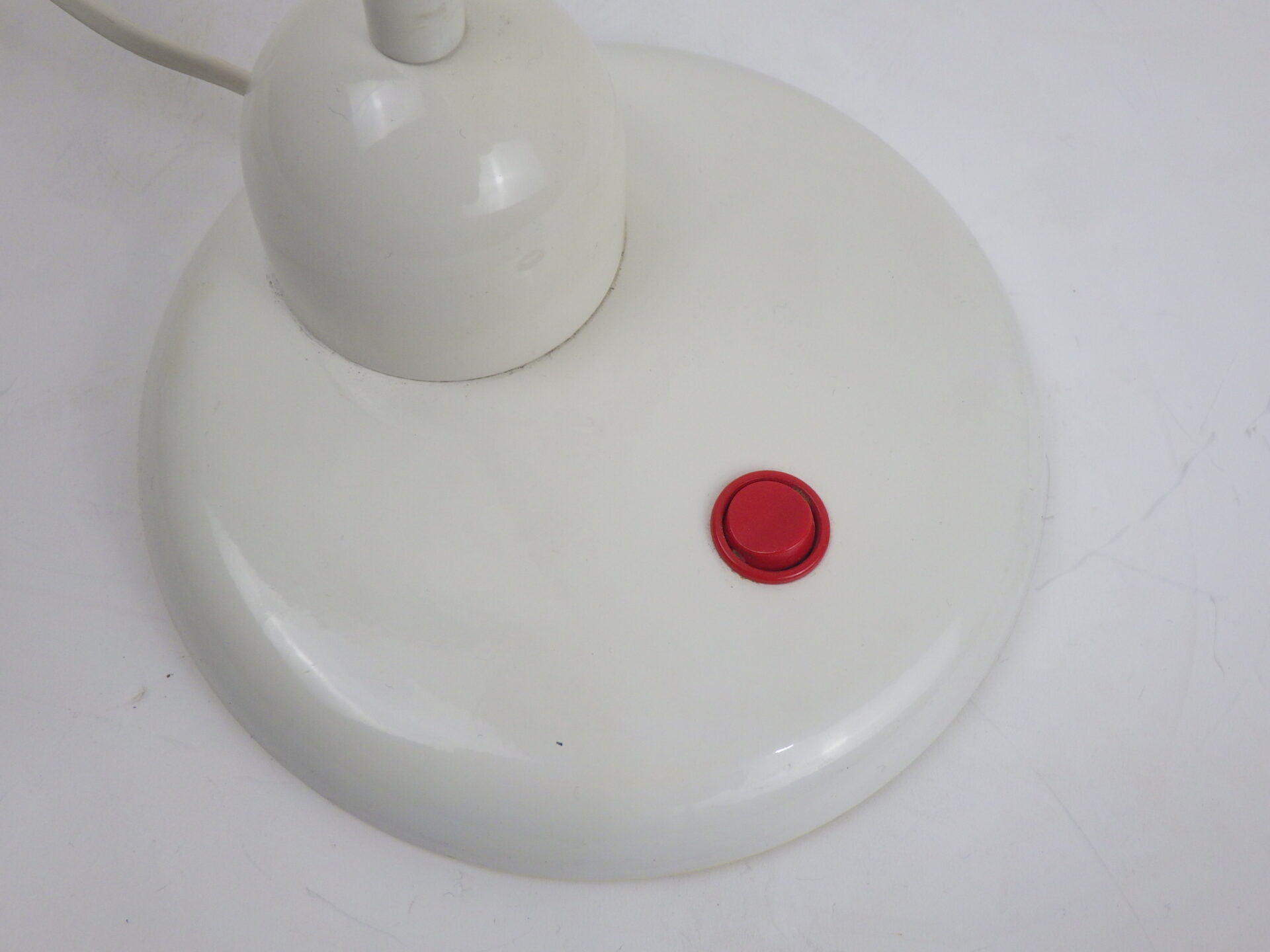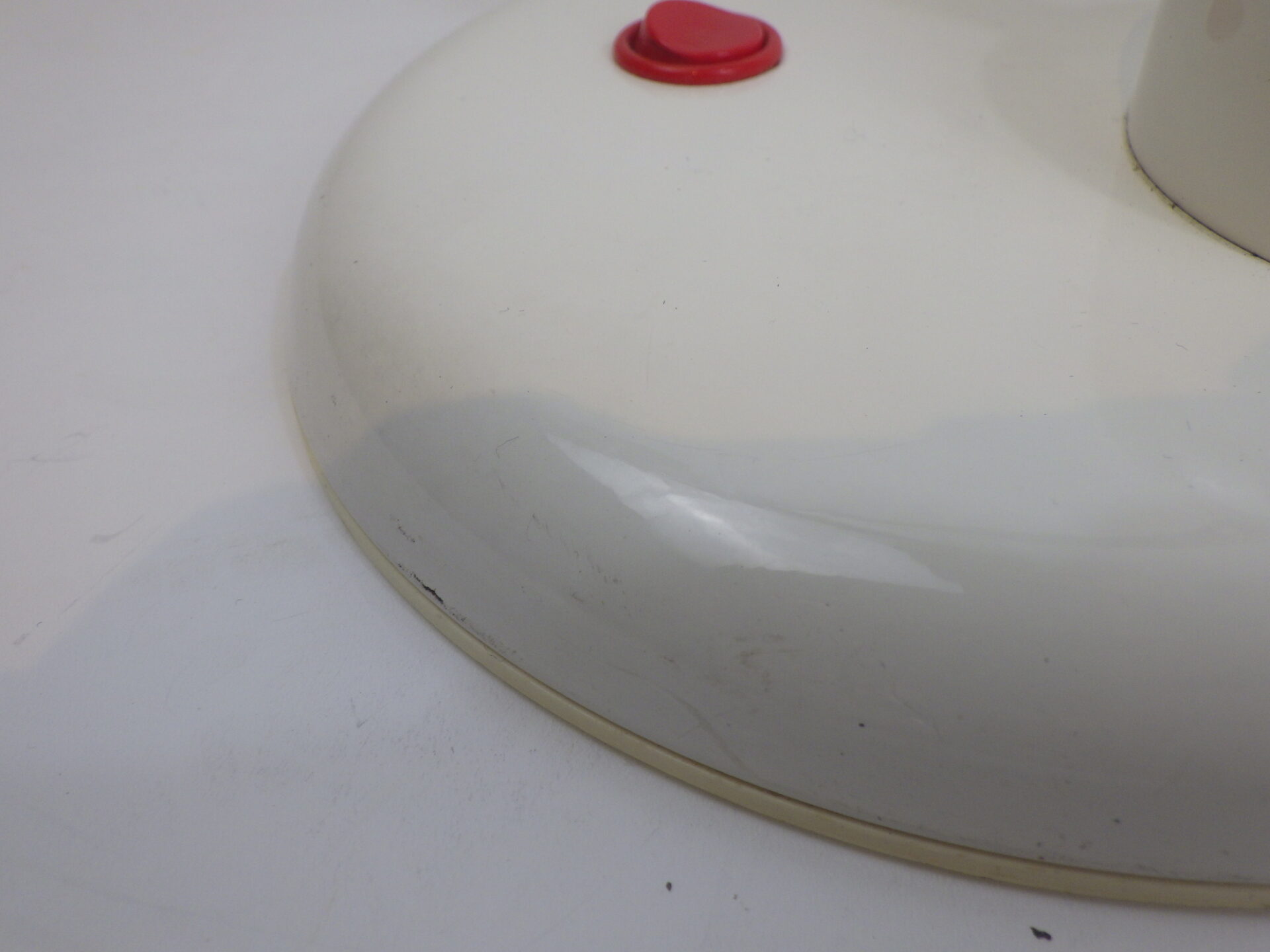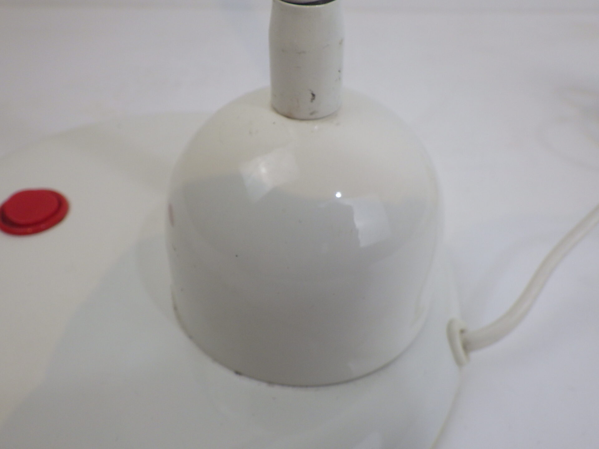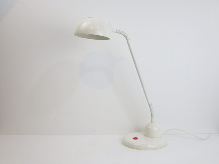 | ヨーロッパで買い付けました。 細く長いステムが印象的なデスクランプです。 一部グースネックになっており、角度を自由に変えることが出来ます。 ホワイト一色の中に赤いボタンがひとつ、良いアクセントになっています。 土台部分のスイッチでON/OFFが切り替えられます。 (電球の口金サイズ:E14 LED対応) |