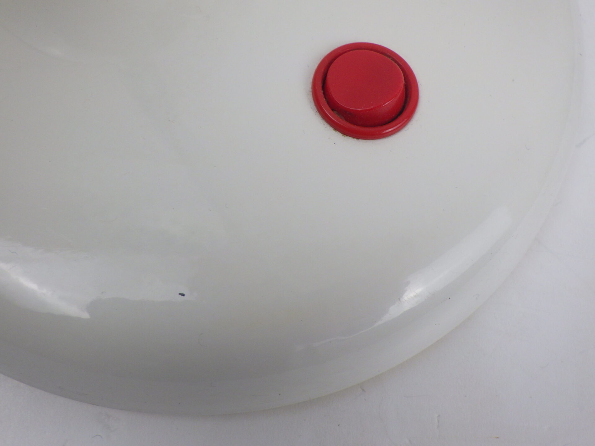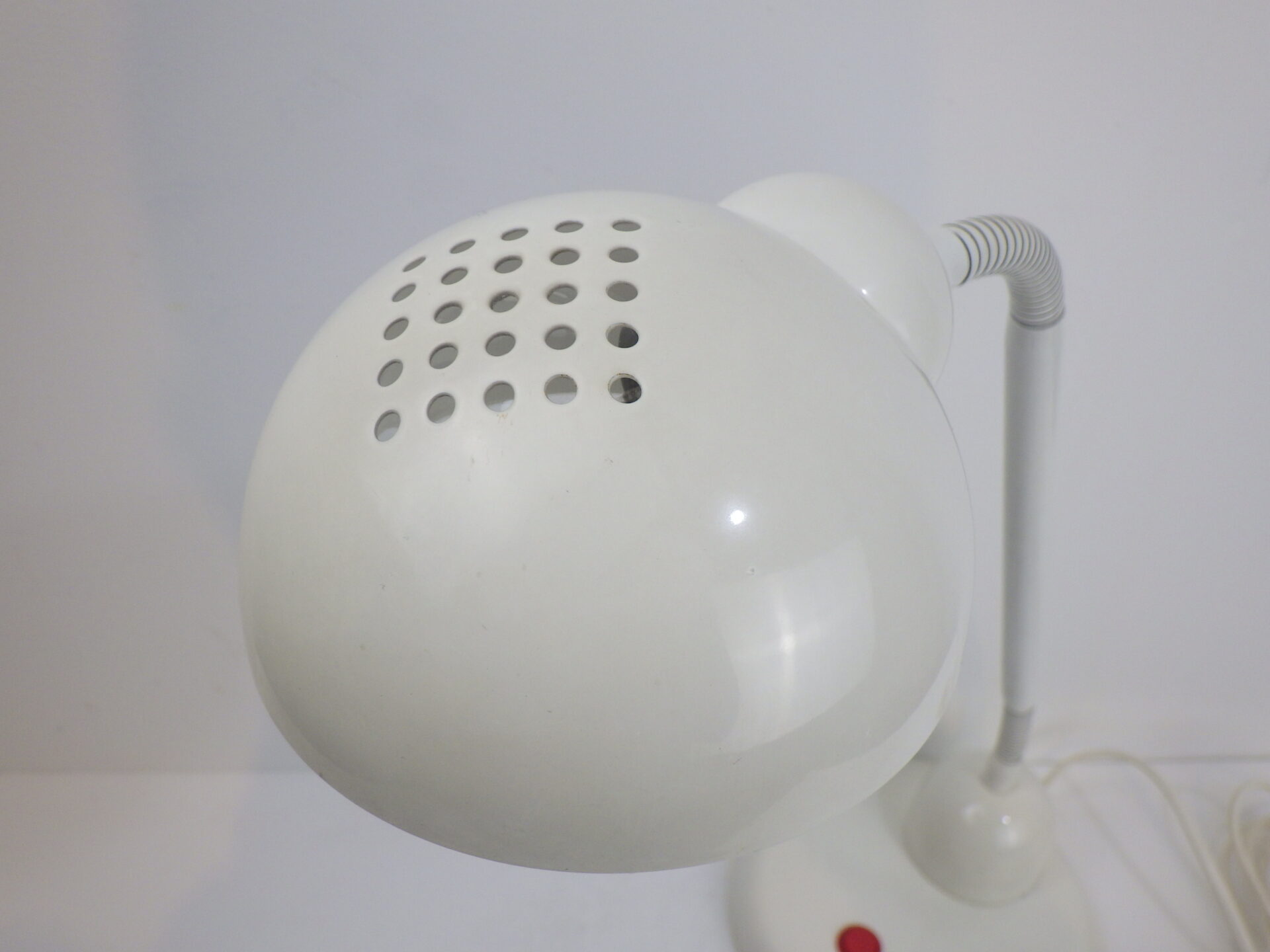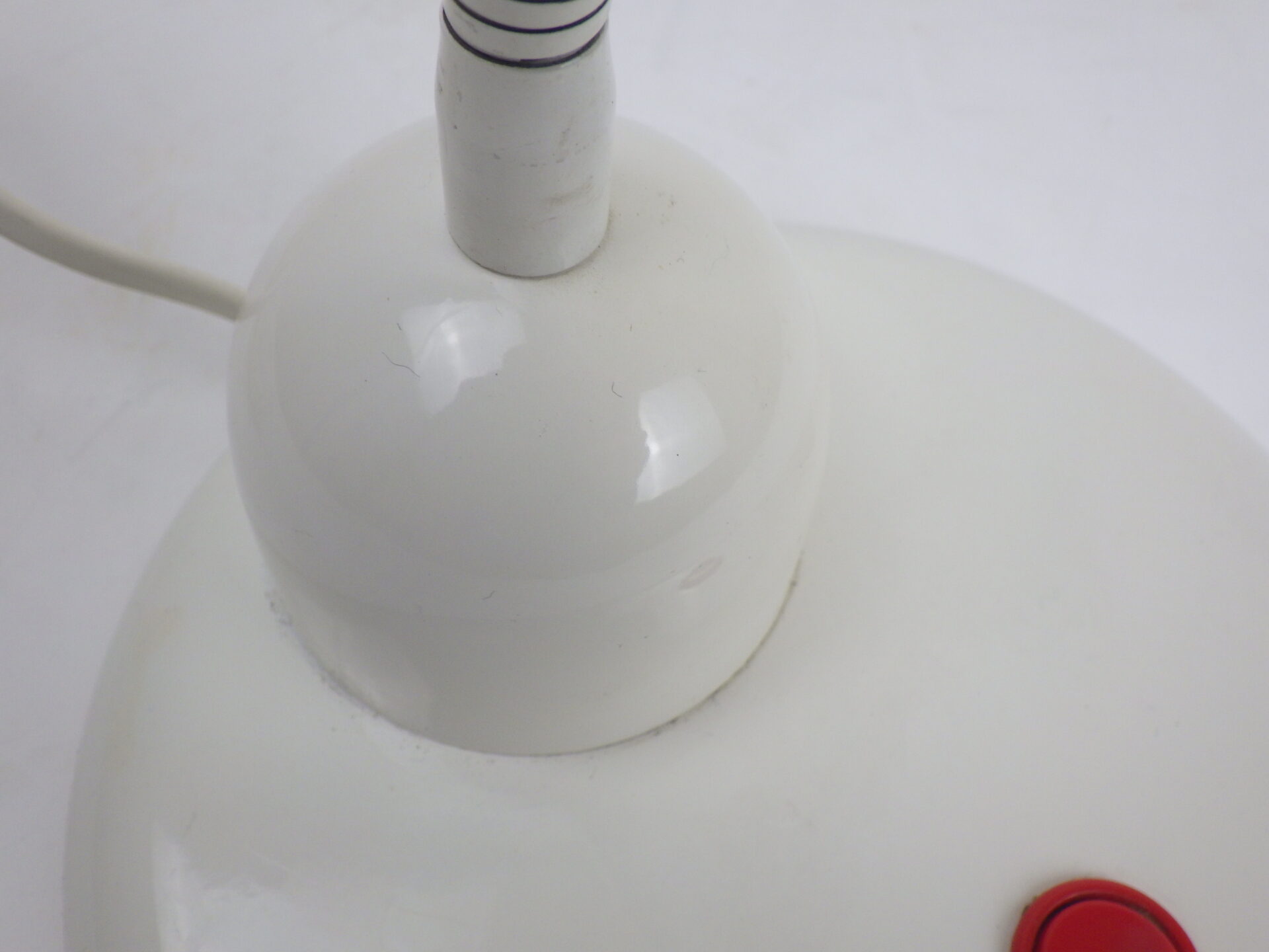 | ヨーロッパで買い付けました。 細く長いステムが印象的なデスクランプです。 一部グースネックになっており、角度を自由に変えることが出来ます。 ホワイト一色の中に赤いボタンがひとつ、良いアクセントになっています。 土台部分のスイッチでON/OFFが切り替えられます。 (電球の口金サイズ:E14 LED対応) |
