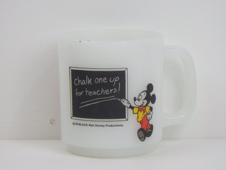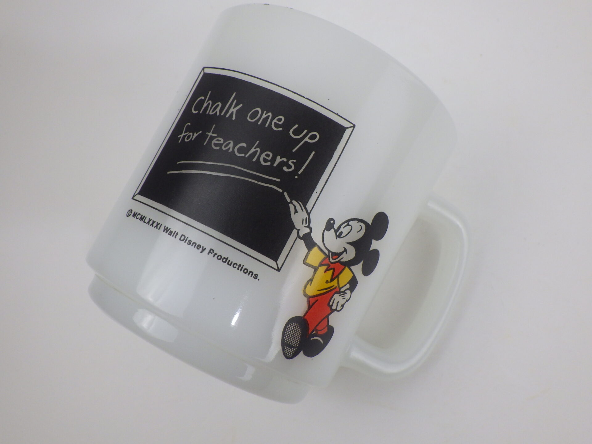 | アメリカで買い付けました。 ウォルトディズニープロダクションズ製作のグラスベイクのマグです。 学校でベルを鳴らしたり勉強を教えているミッキーが可愛いです。 ディズニーコレクターの方、是非。 |