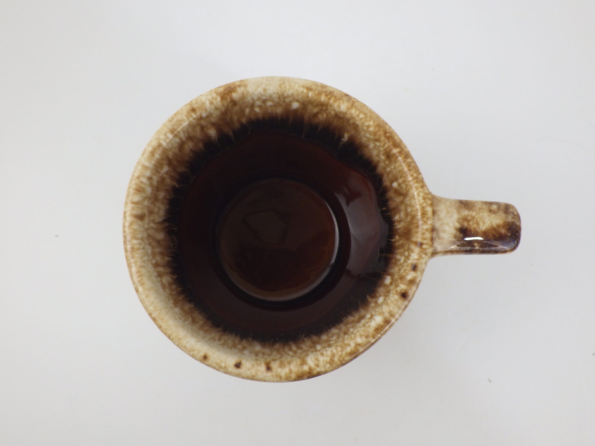 | アメリカで買い付けました。 家庭用として愛用されてきた「hull社製」のコーヒーマグです。 ぽってりとした口当たりと、美しい釉薬のデザインが魅力的なアイテムです。 容量たっぷりサイズなので、スープなどを入れても良さそうですね。 |