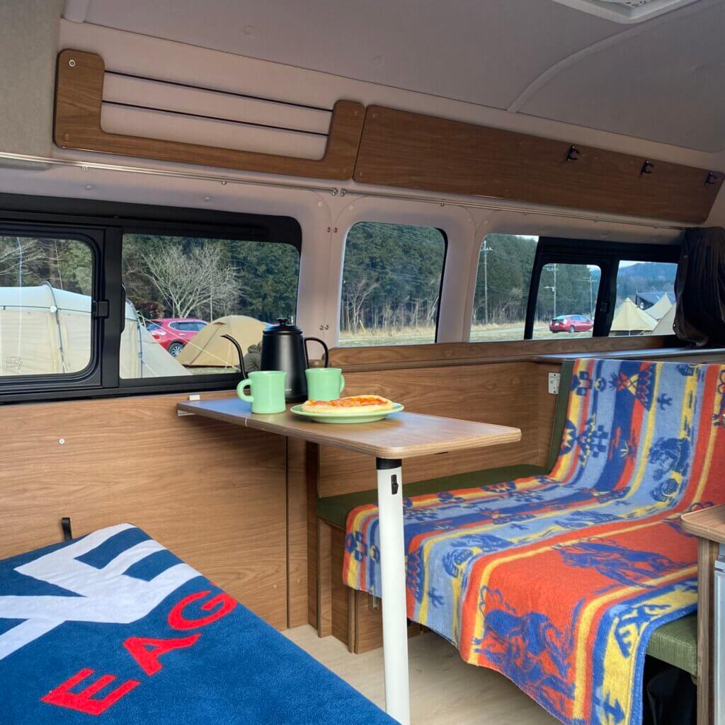 今回はテントも建てましたが、キャンピングカーをレンタルしたので、車中泊を楽しみました。