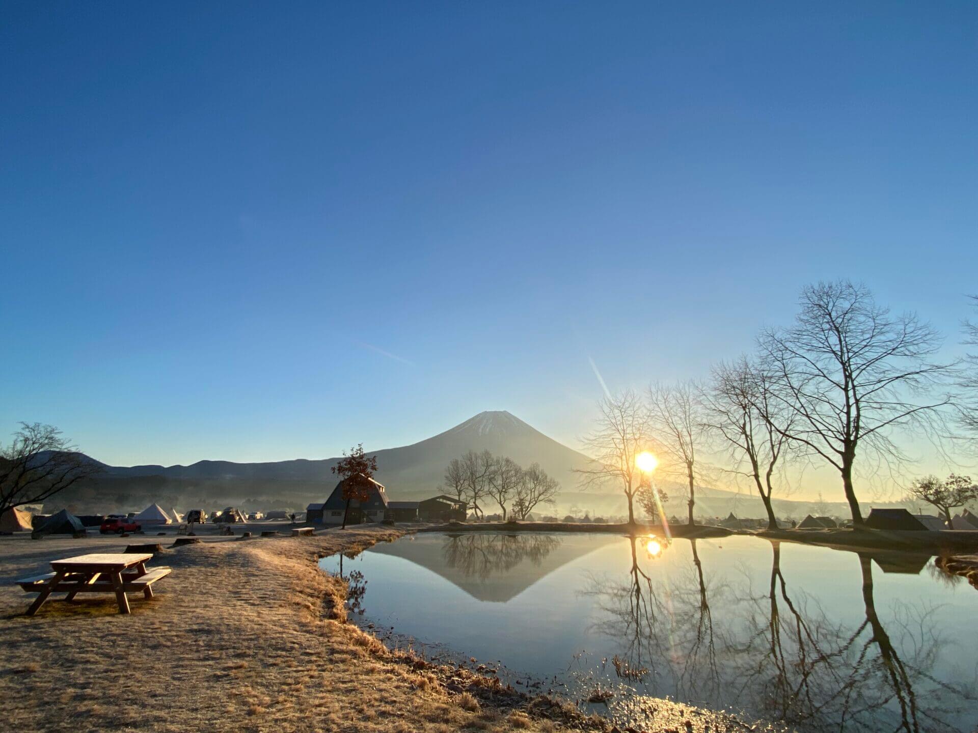 鏡(池)に映る富士山も見られるこのスポットはおすすめです。