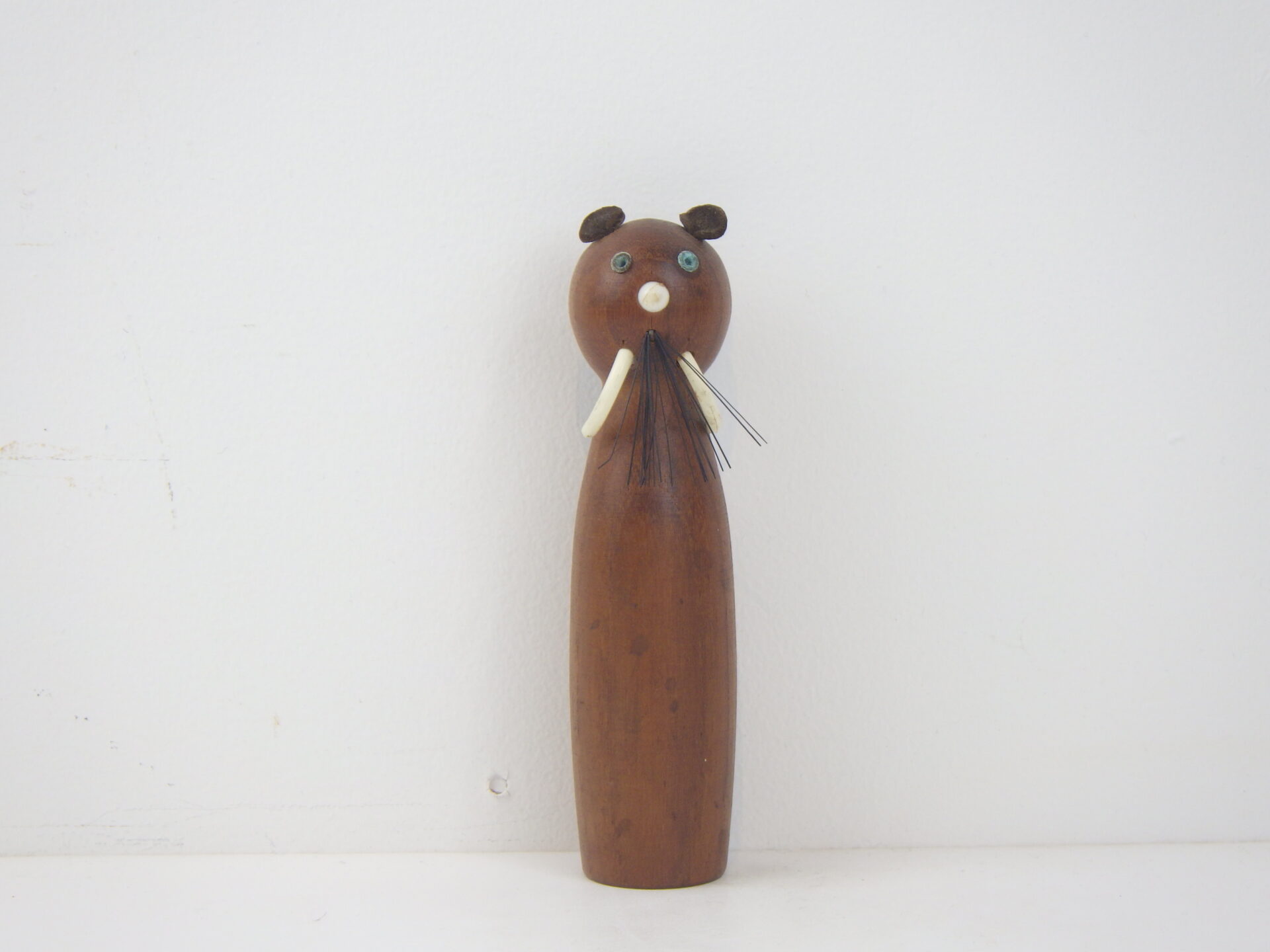 | ヨーロッパで買い付けました。 デンマークの木製フィギュアです。 髭と牙が特徴的なセイウチでしょうか? デンマークの伝統工芸品で、手作業でつくられています。 素材はチーク材、皮など天然素材が使われています。 近年では入手が困難になりつつある大変希少な一品です。 飾って楽しいアイテムです。 是非コレクションに加えてみて下さい。 |