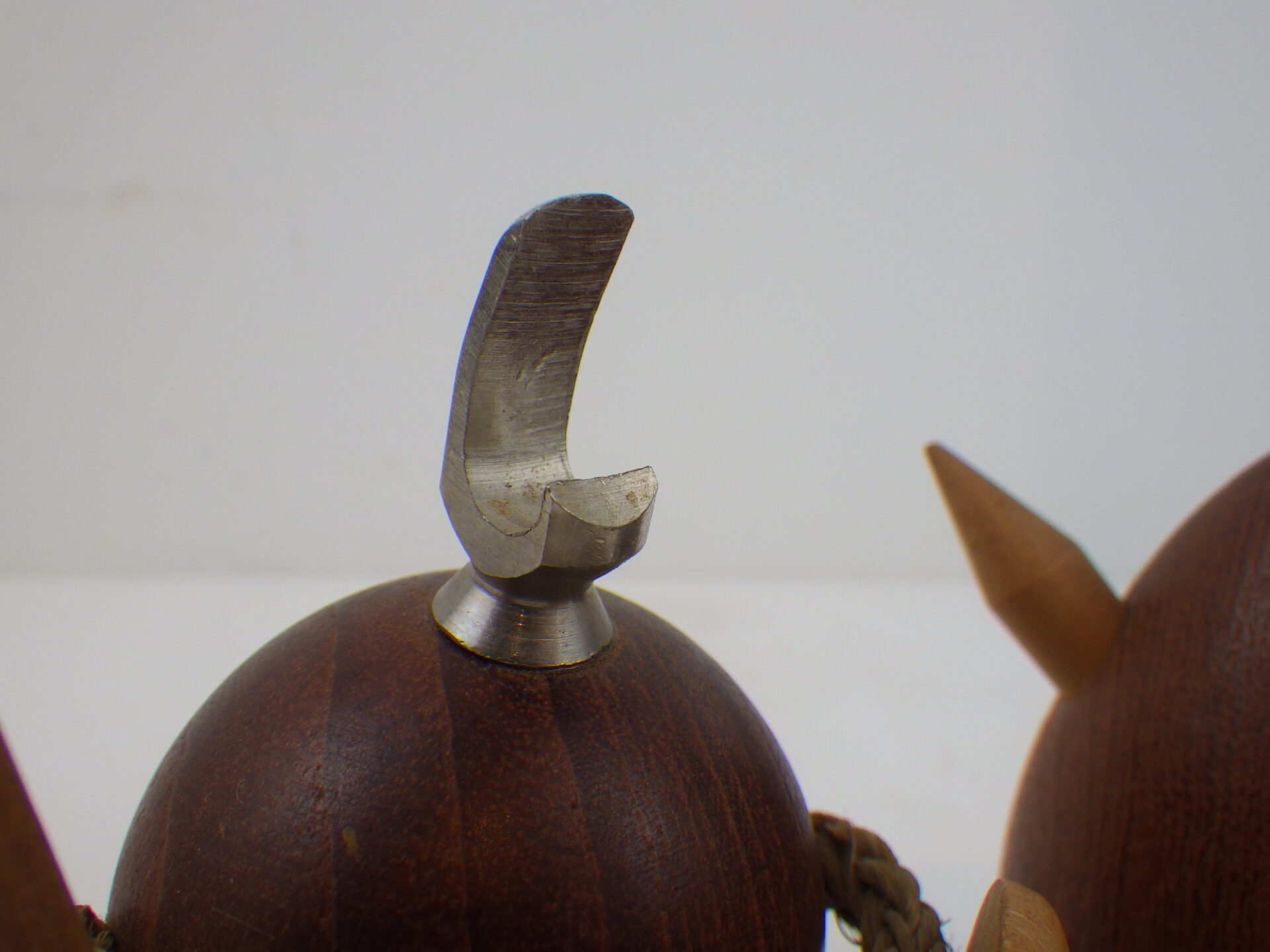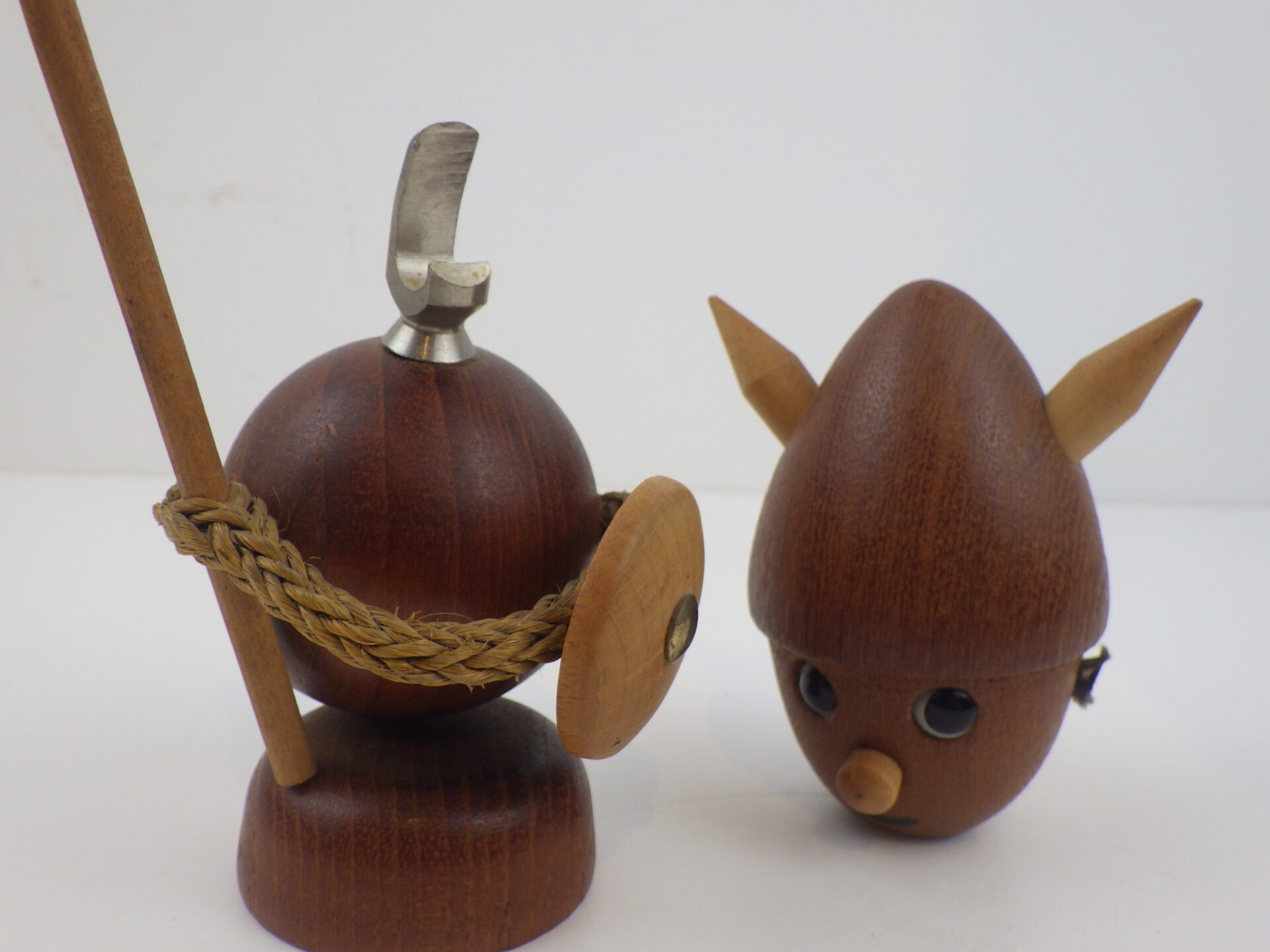 | ヨーロッパで買い付けました。 デンマーク製の木製オブジェです。 チーク材や麻ひもなどの天然素材を使って手作業で作られています。 こちらは頭を抜くと、栓抜きになります。 近年では入手が困難になりつつある大変希少な一品です。 飾っても楽しいアイテムです。 是非コレクションに加えてみて下さい。 |