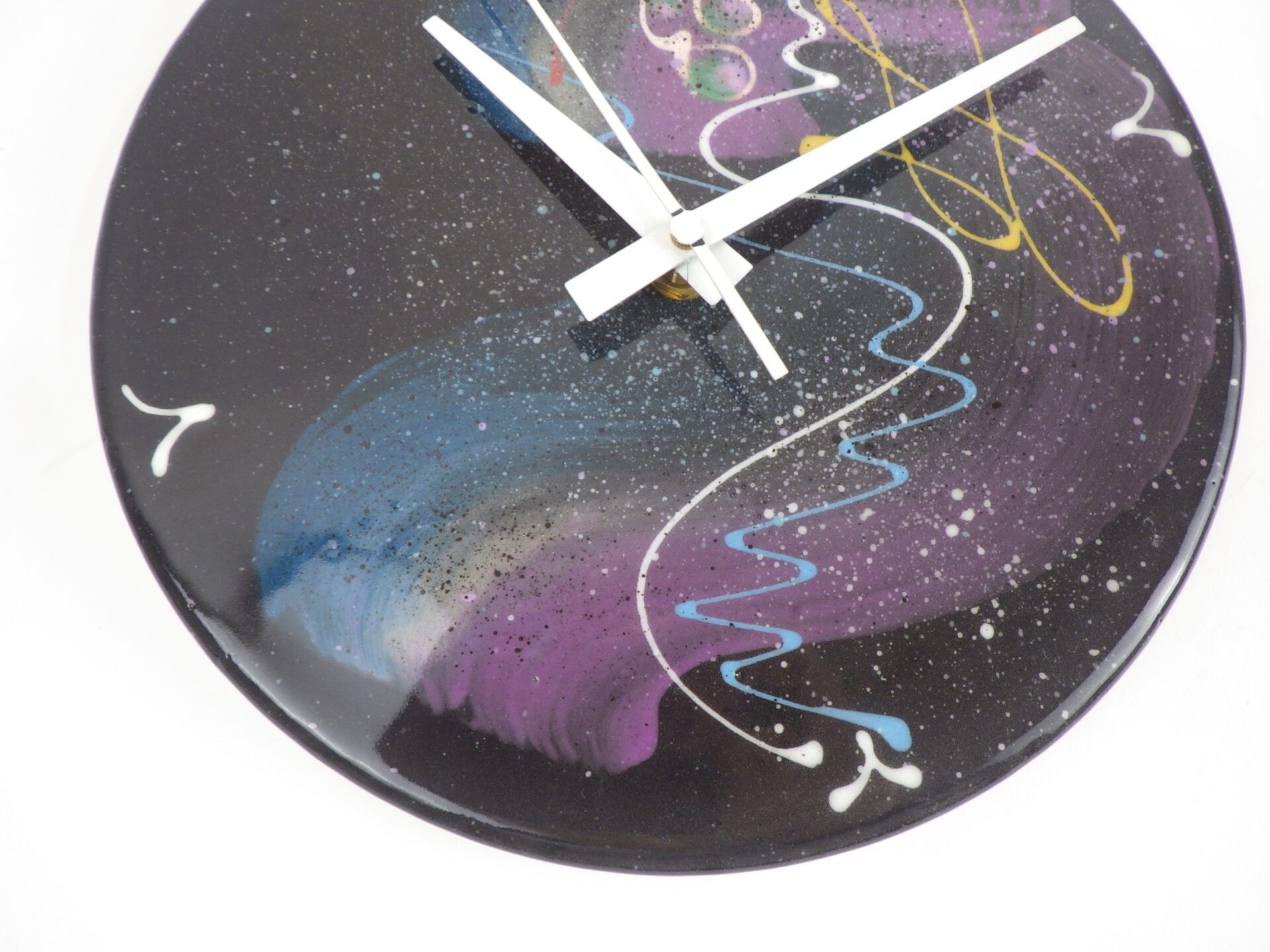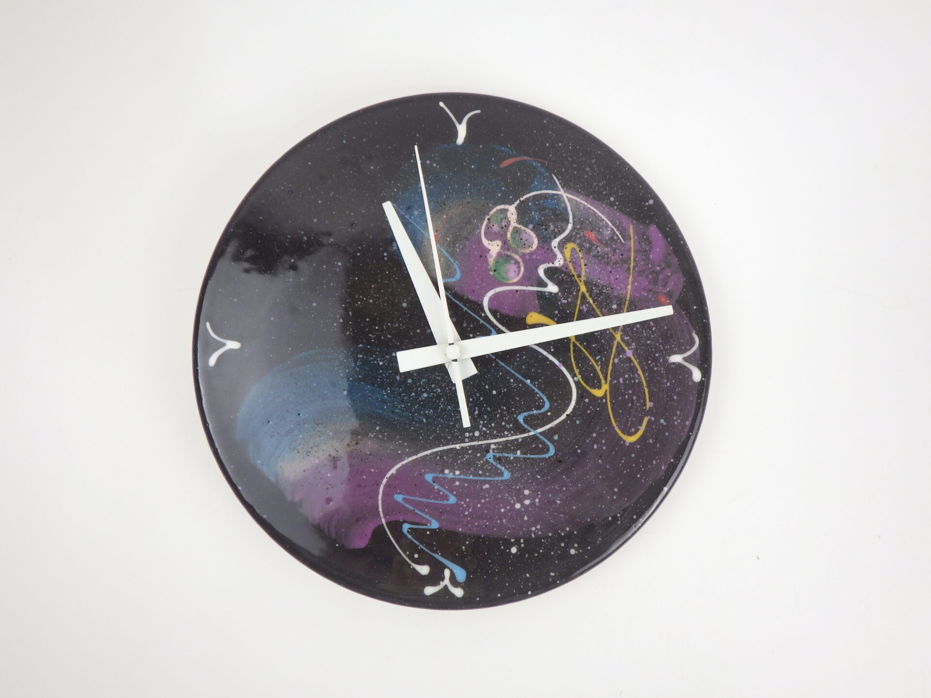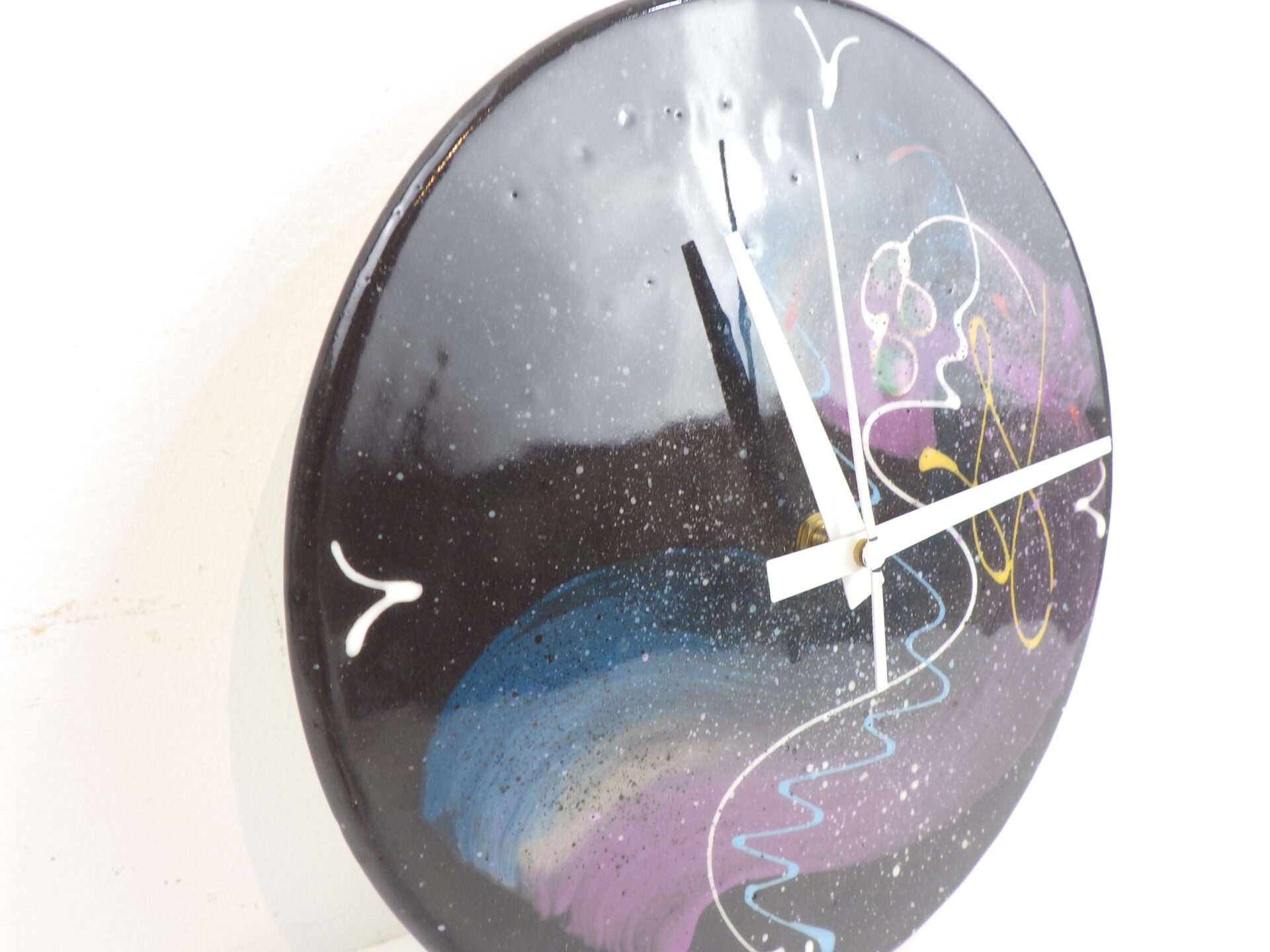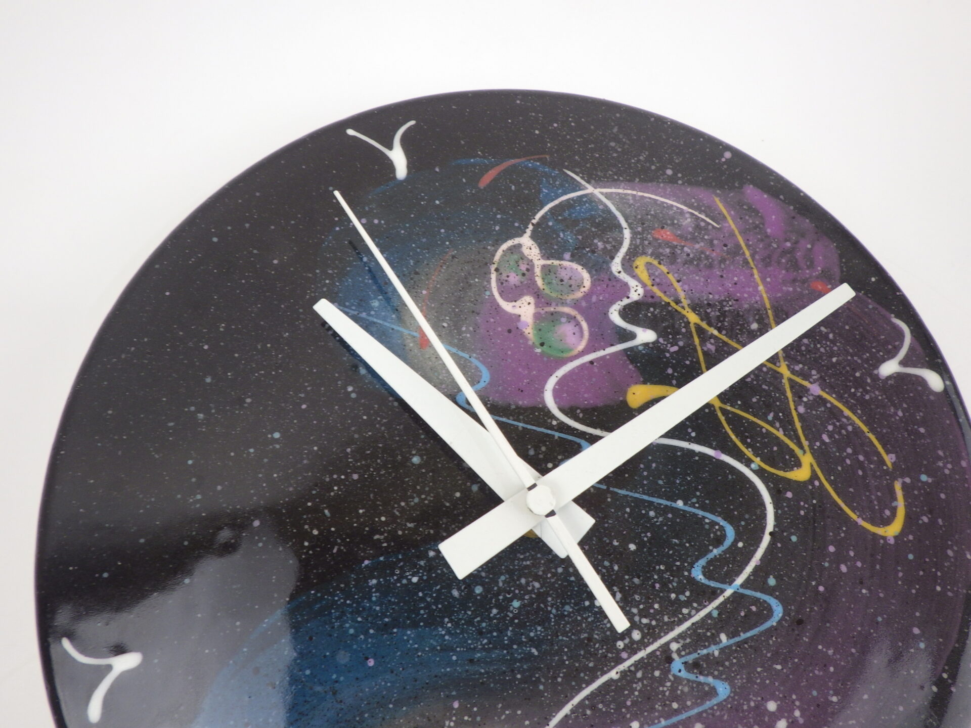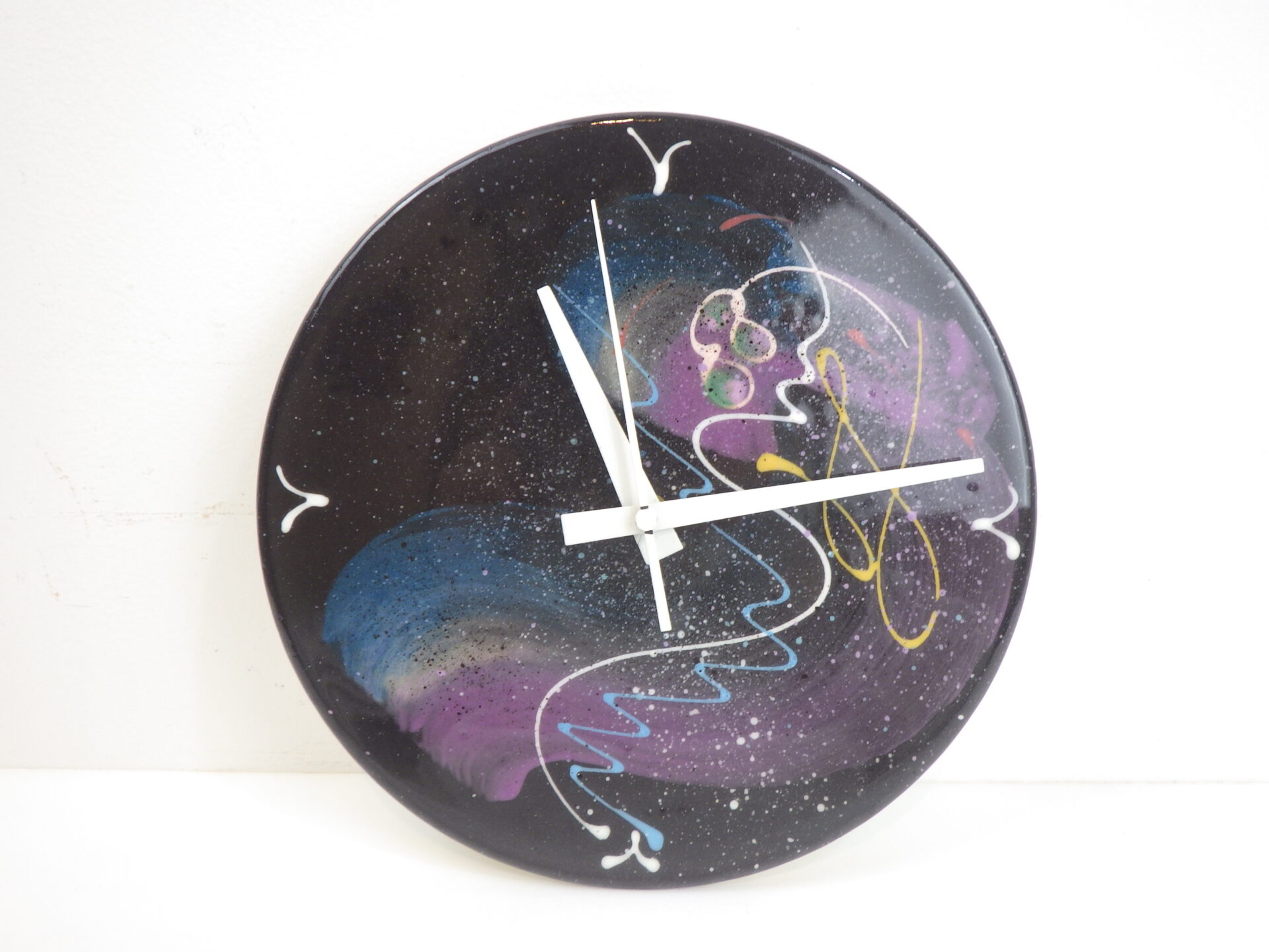 | アメリカで買い付けました。 陶器製のアートな壁掛け時計です。 時計の中に小さな宇宙が広がっているようなデザイン。 お部屋を彩るアートピースの一つとして加えてみてはいかがでしょうか? |
