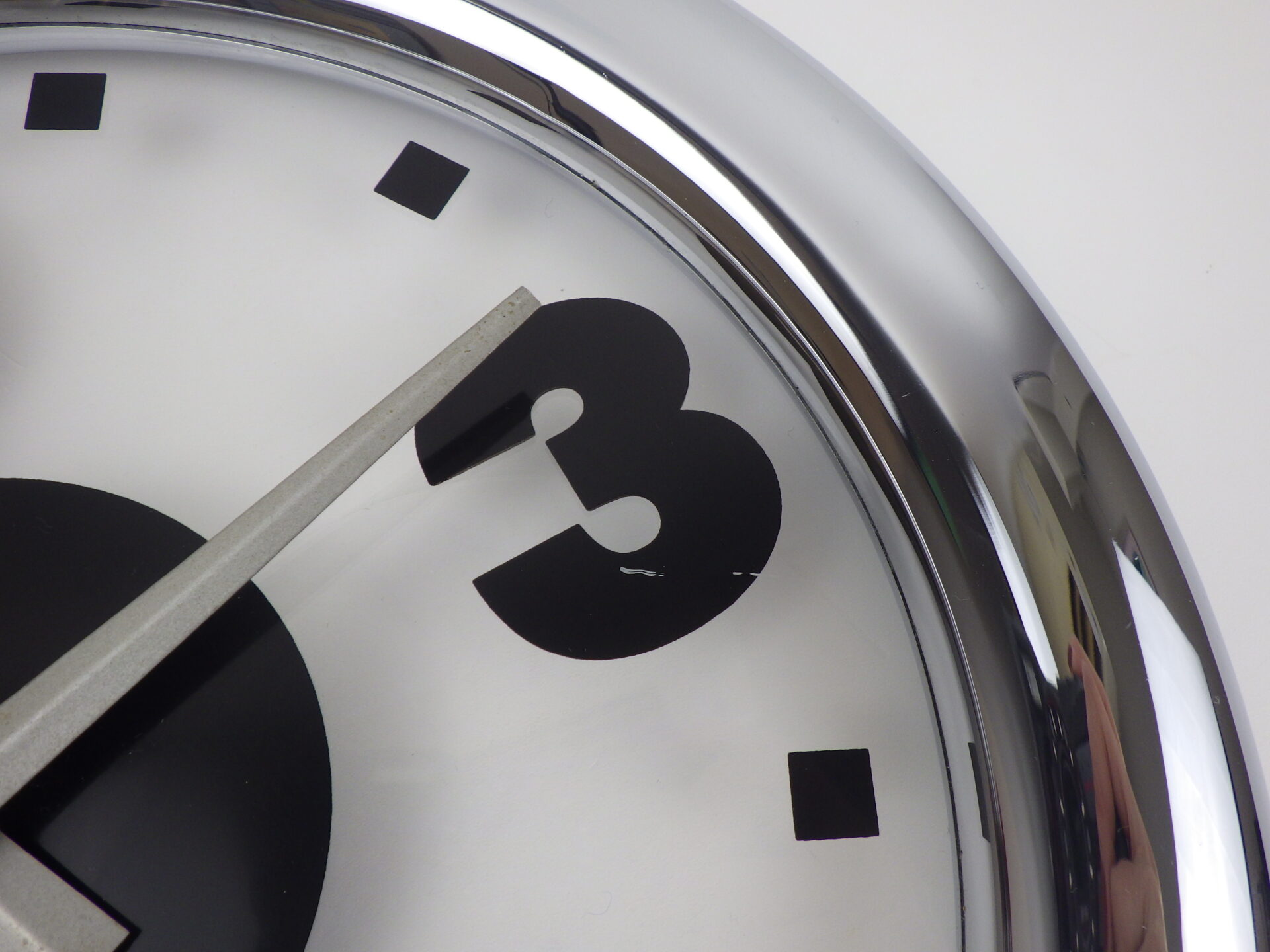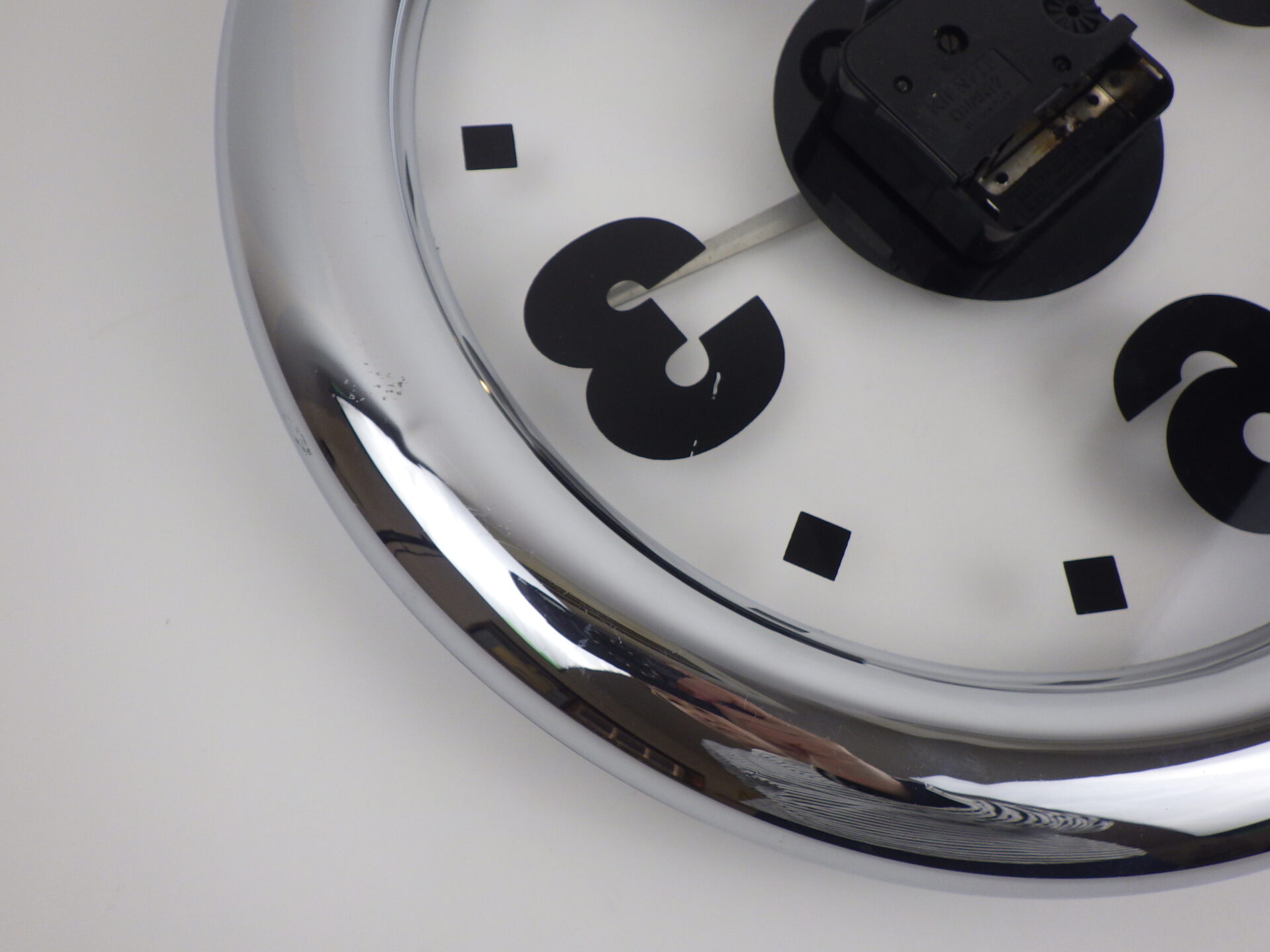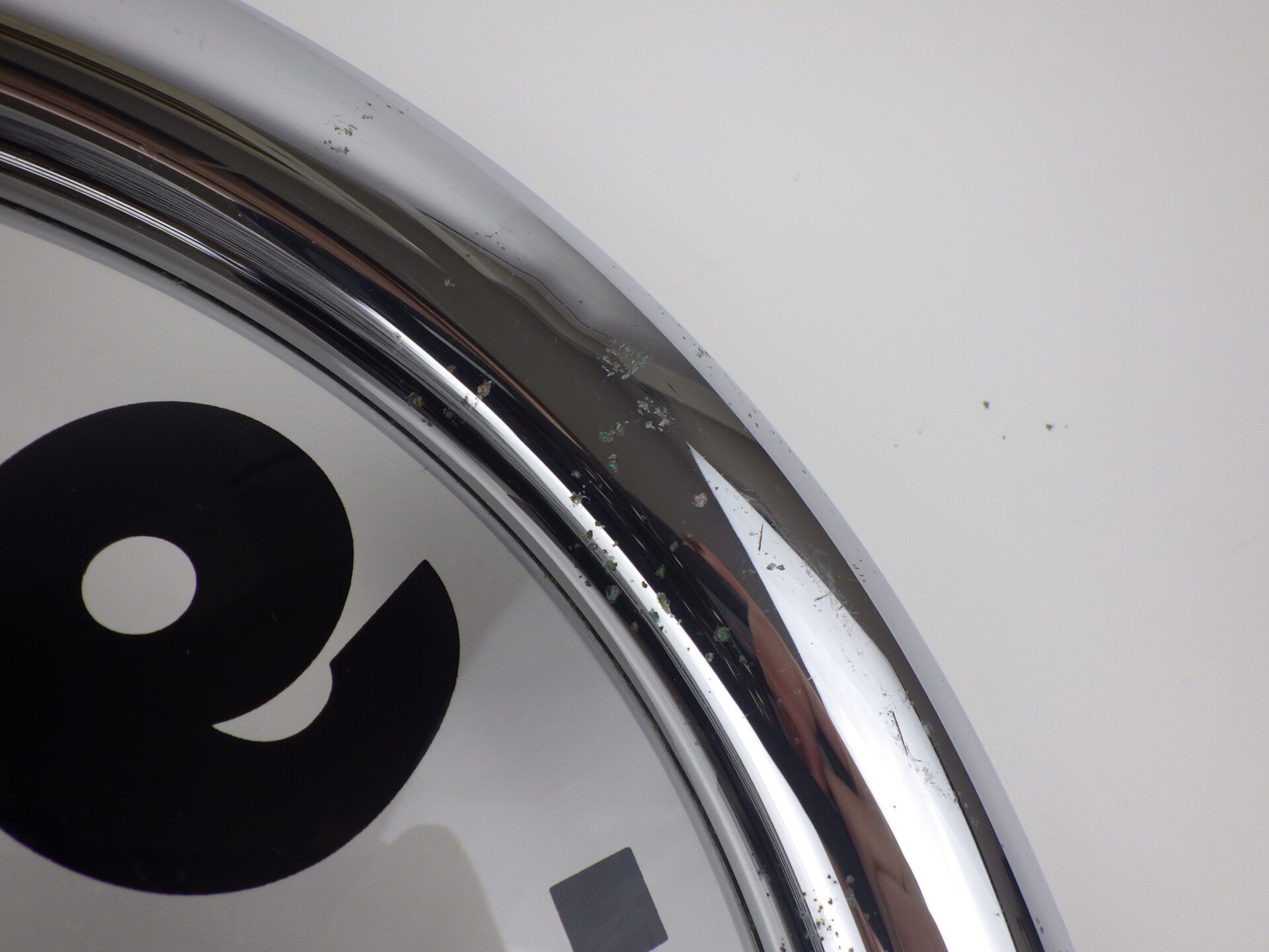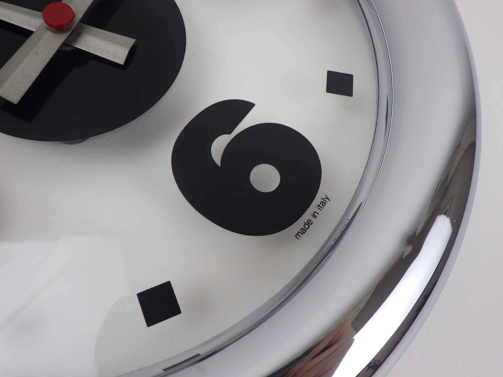 | ヨーロッパで買い付けました。 イタリアのguzzini(グッチー二)社製の壁掛け時計です。 1912年に創業したグッチーニは、イタリアの高級キッチンブランドとして現在も名をはせています。 スペースエイジ感も感じられるデザインと、インパクトのある文字盤のロゴデザインも魅力的ですね。 赤い秒針が欠けてしまっていますが、時計としても機能に問題はありません。 コレクタブルな一品です。 是非お部屋のアートピースとして飾ってみて下さい。 |
