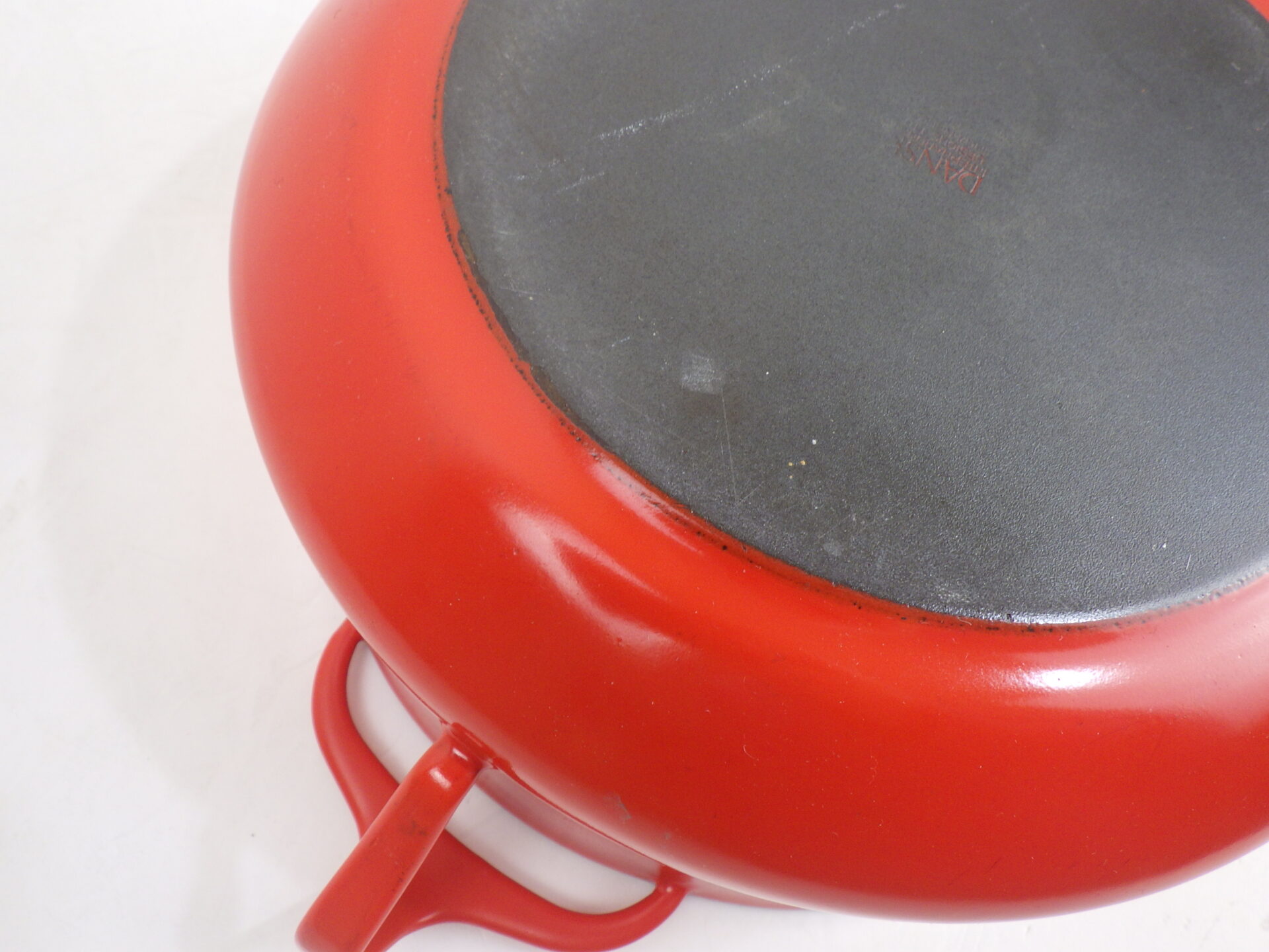 | イエン・H・クイストゴー(Jens H Quistgaard)がデザインを手掛けたDANSKの両手鍋です。 フランス製になります。 熱伝導率が良く、調理もしやすいDANSK。 キッチンに置いておくだけでアクセントになるデザインは、他にはない魅力ですね。 また、蓋は鍋敷きになるので、使い勝手も抜群です。 キャンプなどに持ち出すのにもおすすめしています。 |