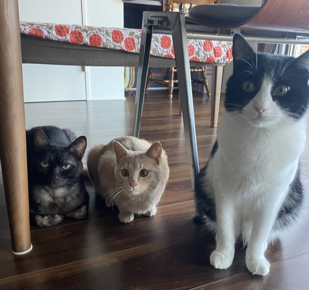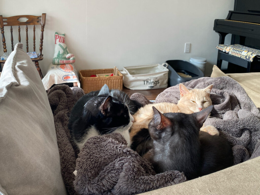 実は昨年末、三匹目の猫ちゃんをお迎えしました~。(手前の茶トラっぽい女の子です)