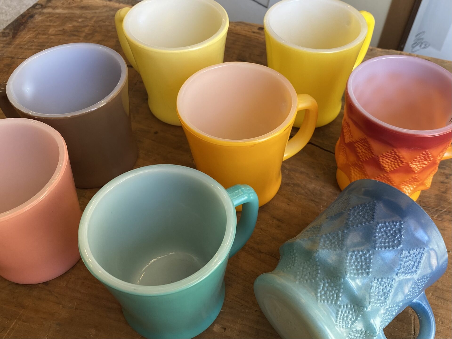 店頭に、ファイヤーキングのカラーマグやスヌーピー、ミッキーなどのキャラマグなど追加しました。