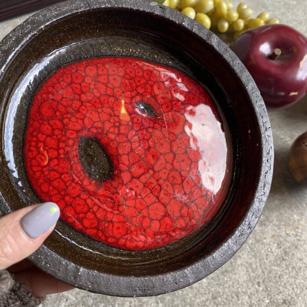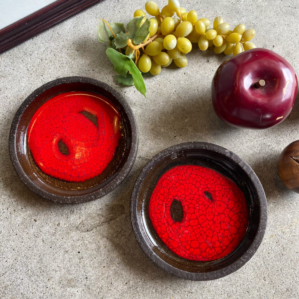 とろんとした赤い釉薬いびつな円を形成していて魅惑的・・・