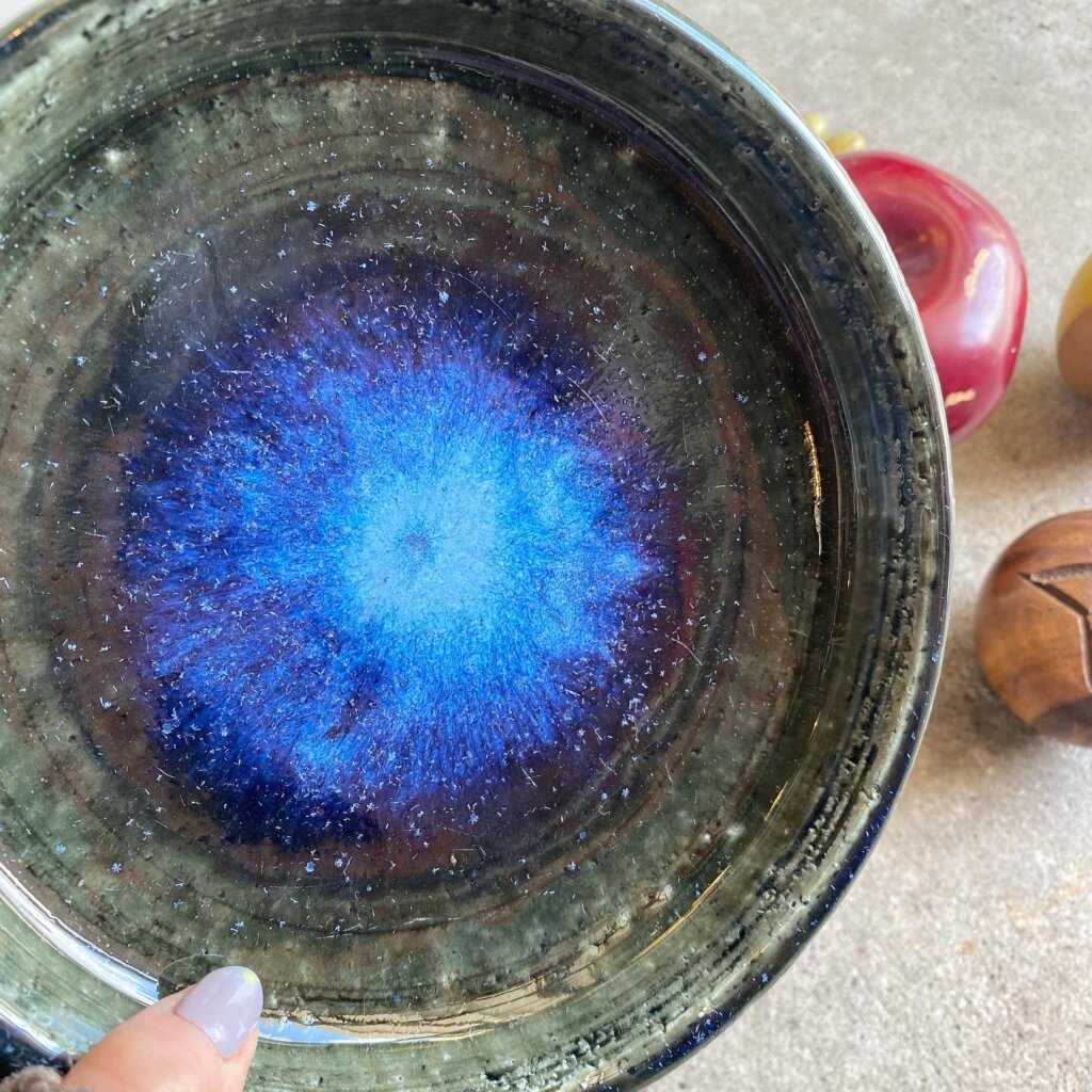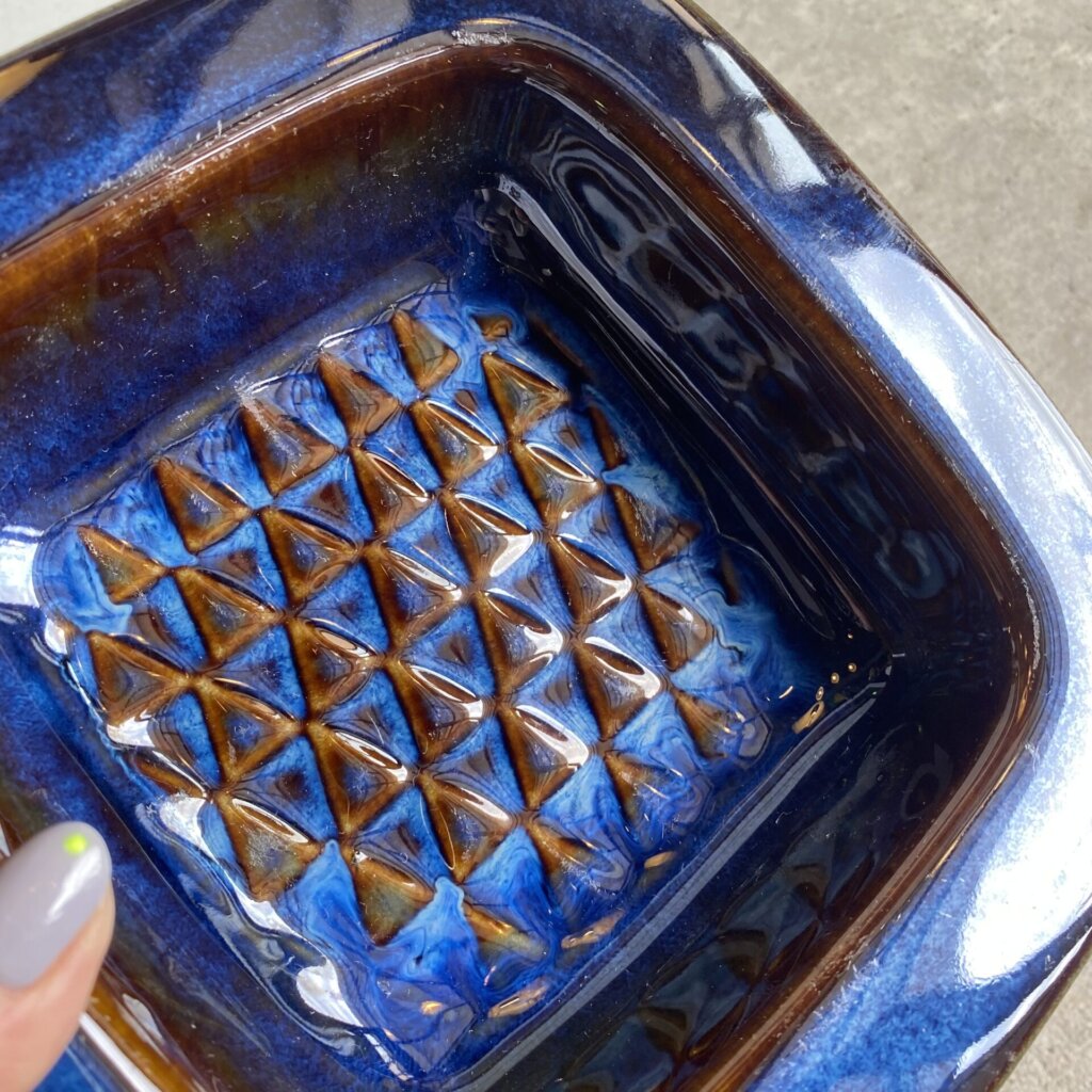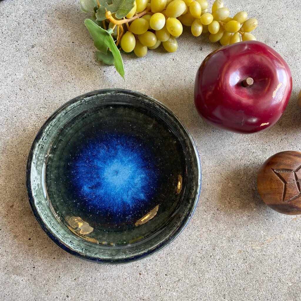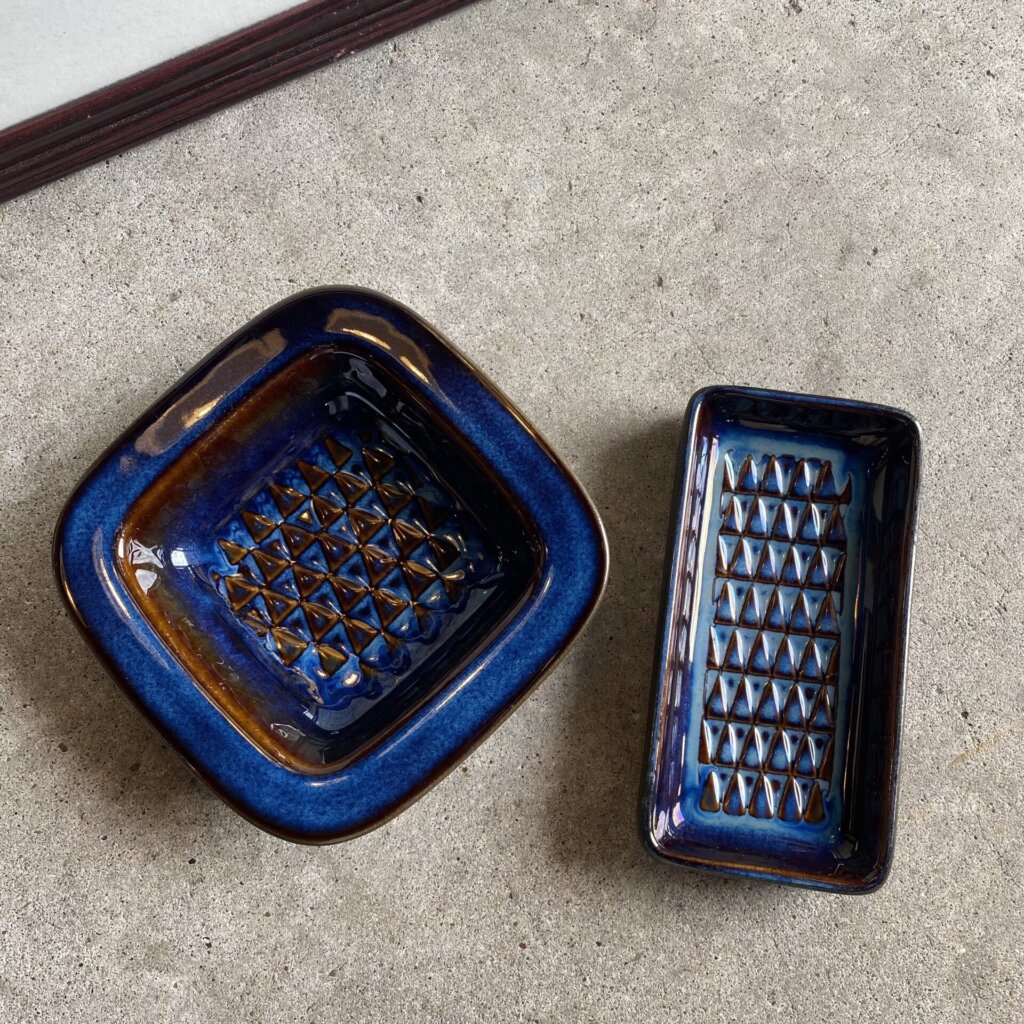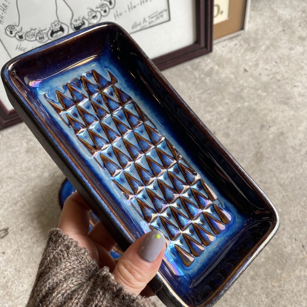 先程の深いブルーとブラウンの組み合わせのプレートとは、また印象の異なるアイテムですね。