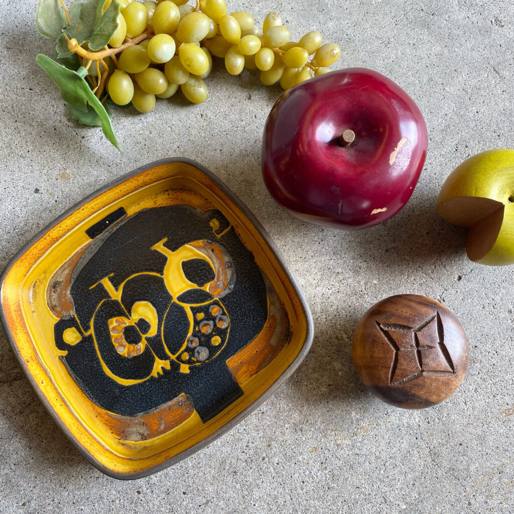 中心に二点、素地のままの丸があって、リンゴの断面に見えなくもない・・・?