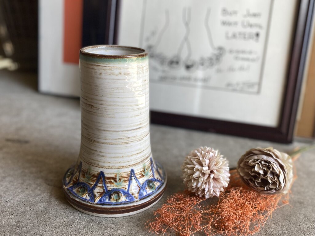 特に代表的なブルーとブラウンが交じり合ったこちらのシリーズは、フラワーベースやキャンドルホルダー、テーブルランプなど多岐にわたり展開されたデザインです。