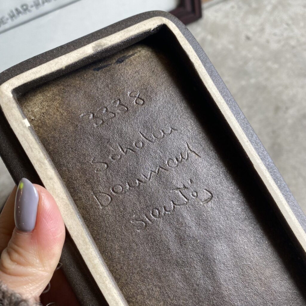 情報が少なすぎて正体がはっきりしない子なのですが、表面の使用感(小傷)と形状から使い道を想像すると、鍋敷きかなー?と言う子です。