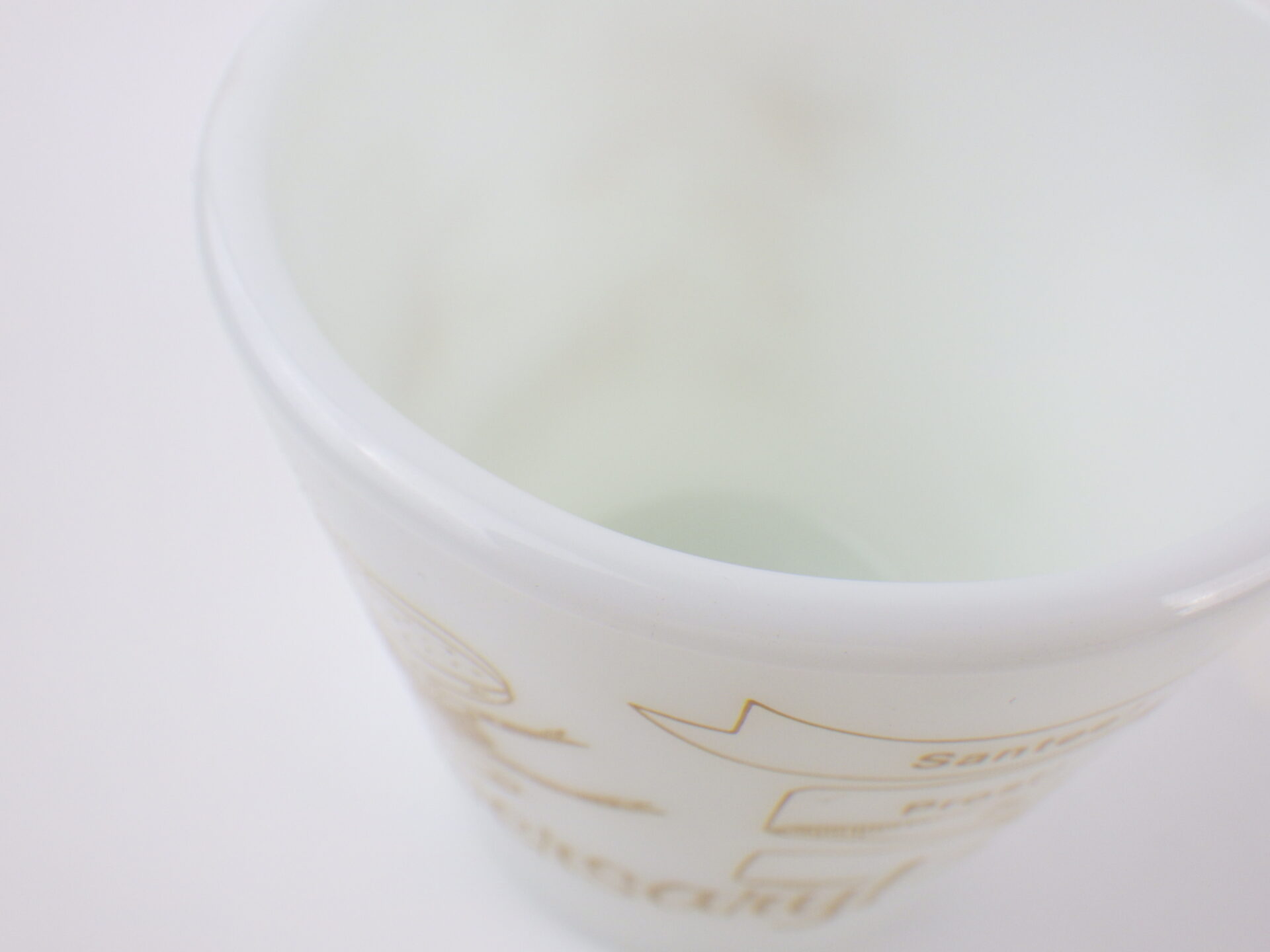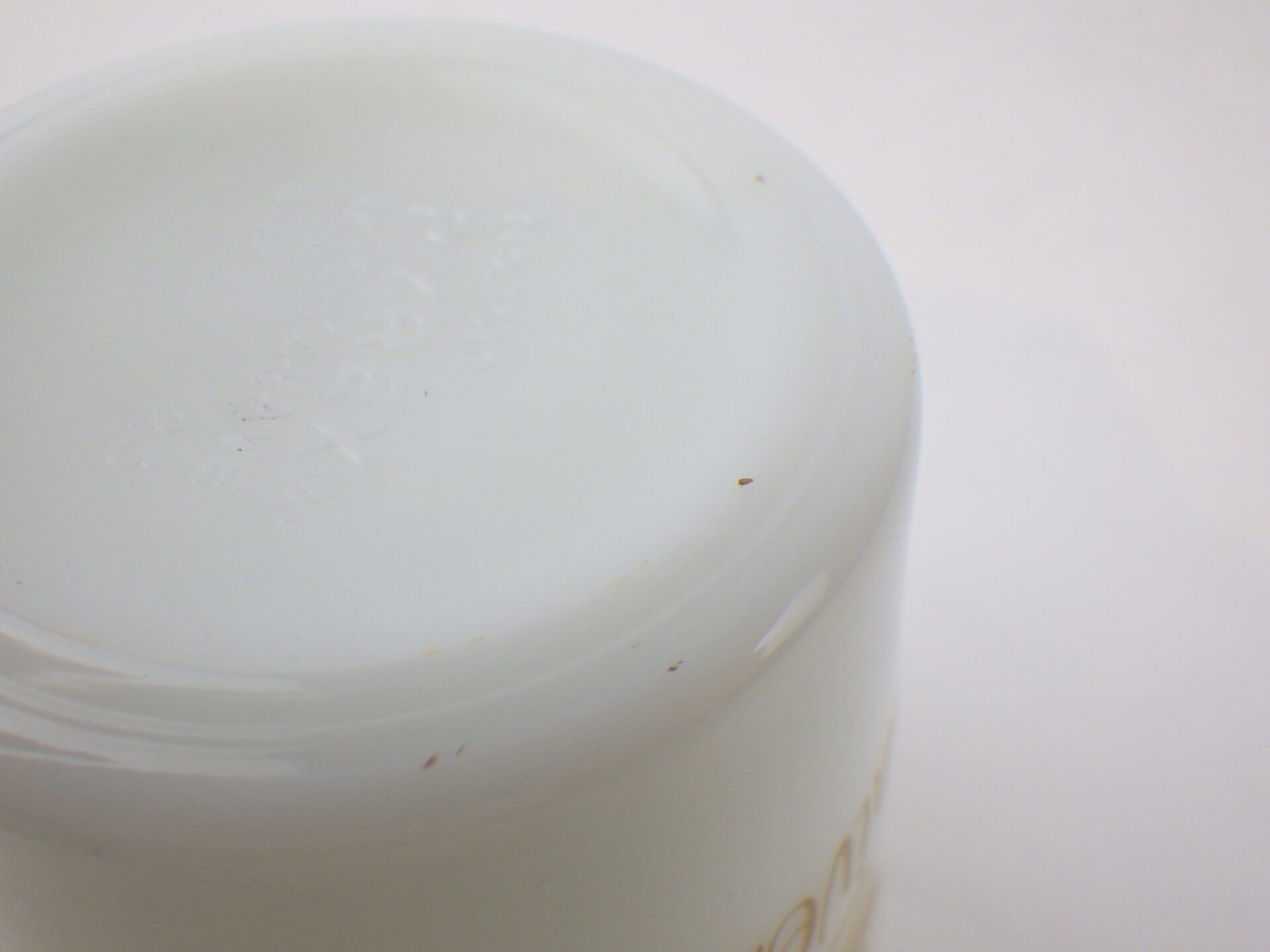 | condition | リム、ボトム接地部に僅かな着色、スレがあります。 ミルクガラス特有の製造時よりのガラスのヨレ、気泡痕などありますが、ご使用に影響はありません。 その他、ワレやカケなどなく、艶もあり綺麗な状態です。 |