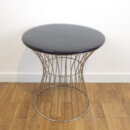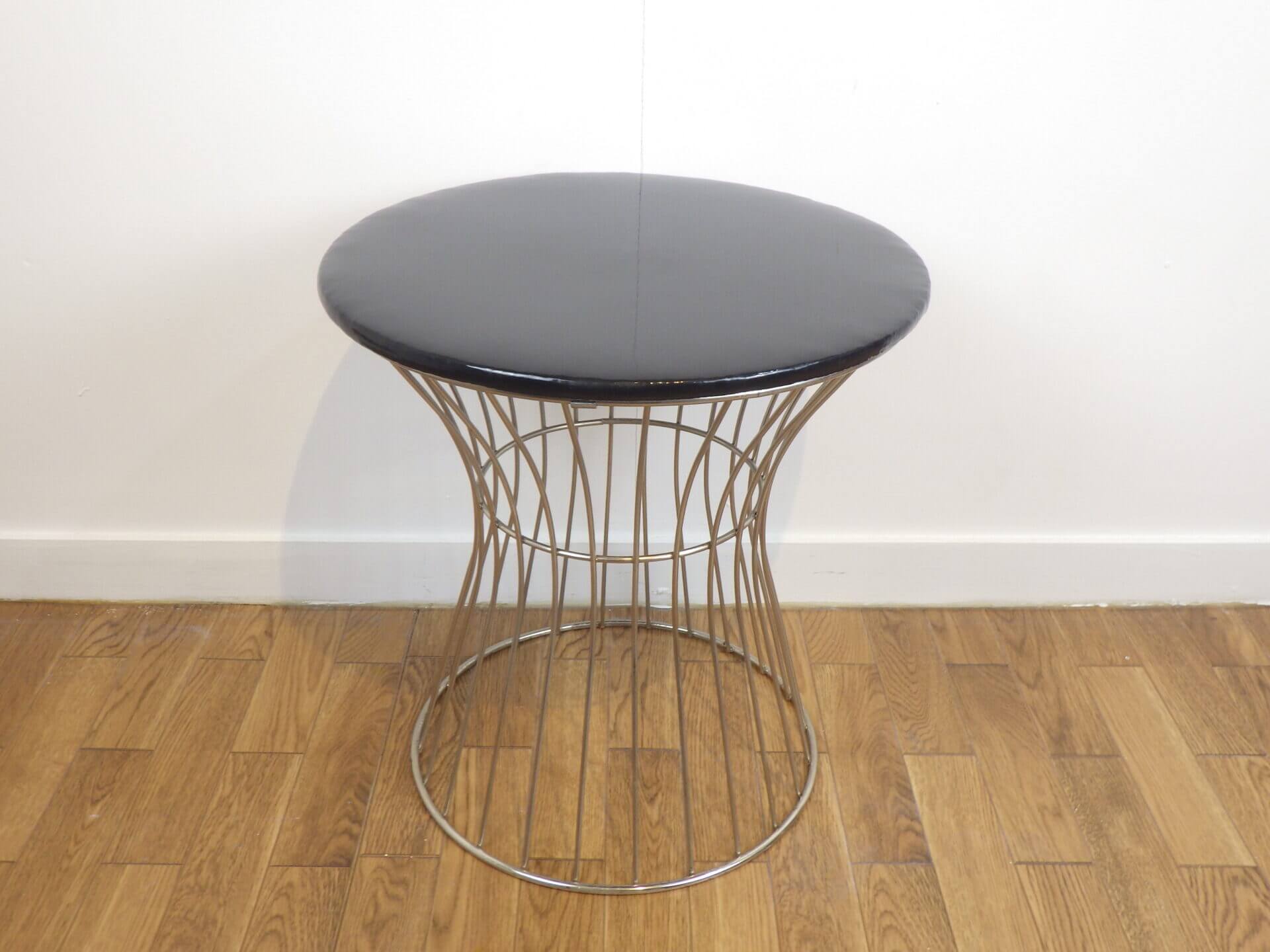 | アメリカで買い付けました。 Warren Platner Styleのワイヤースツールです。 座面はブラックのビニール素材です。 サイドテーブルやプランタースタンドとしてもご使用いただけるサイズです。 抜け感もあって、お部屋の良いアクセントになってくれそうですね。 |