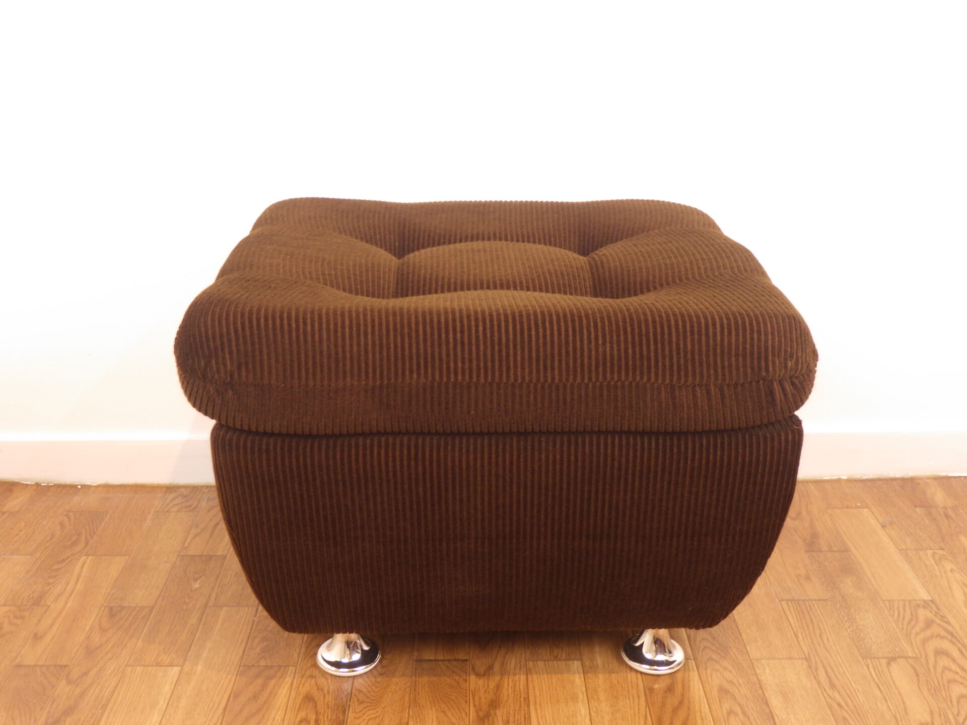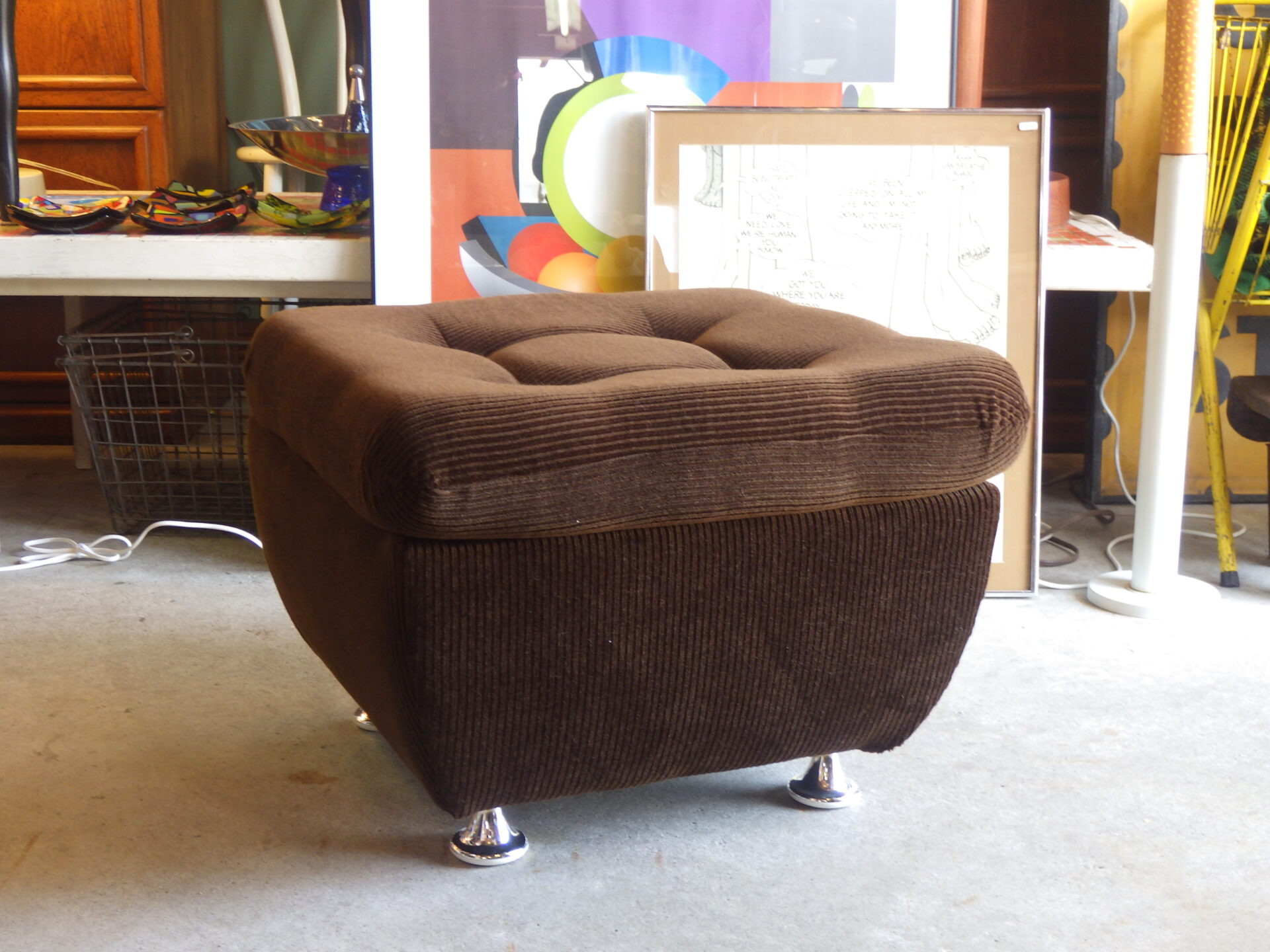 | ヨーロッパで買い付けました。 ビンテージのスツール(オットマン)です。 チョコレートブラウンのファブリックは、コンディションも良く、腰かけるとふわふわな座り心地です。 (ダークな深みのあるブラウンで、最後の写真が実際のお色味に一番近いです) ちょこんとついたシルバーの脚が可愛らしいですね。 |