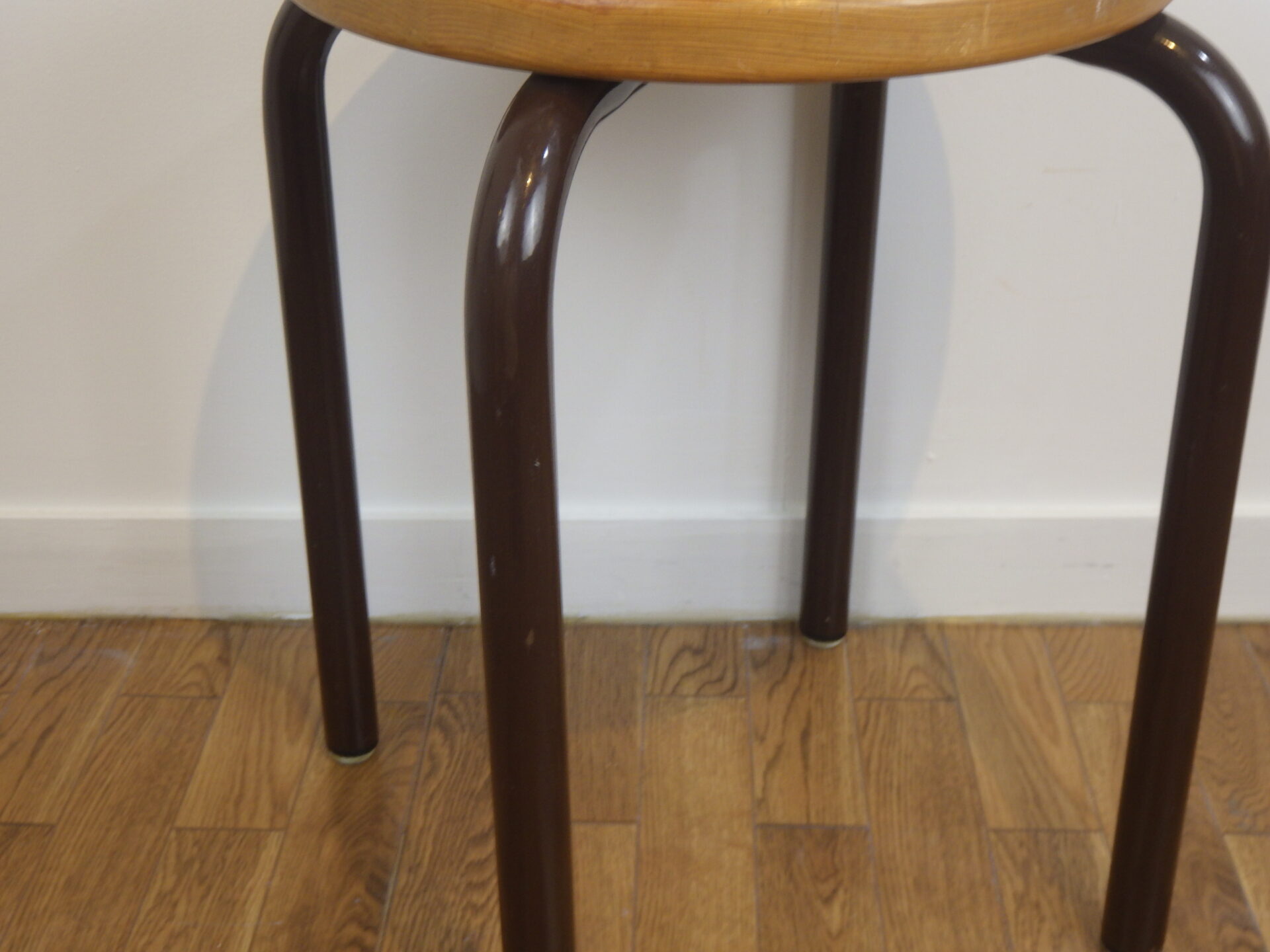 | ヨーロッパで買い付けました。 ビンテージのスツールです。 座面は木製、脚はメタルの異素材の組み合わせが良い雰囲気です。 スタッキング出来るようにデザインされています。 何か上に置いてディスプレイ台として使うのも良さそうですね。 |